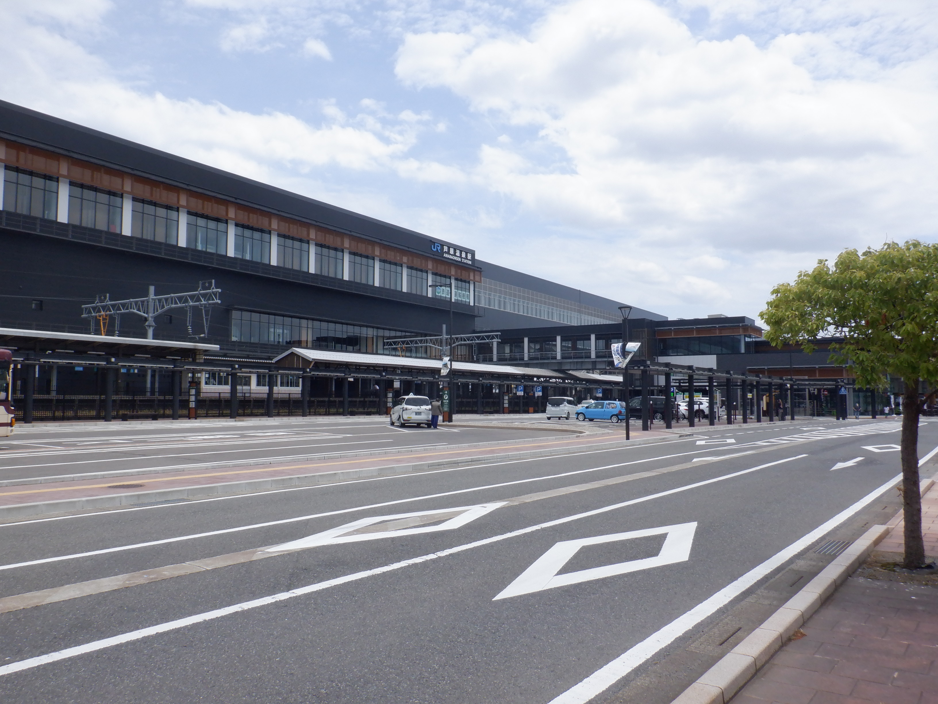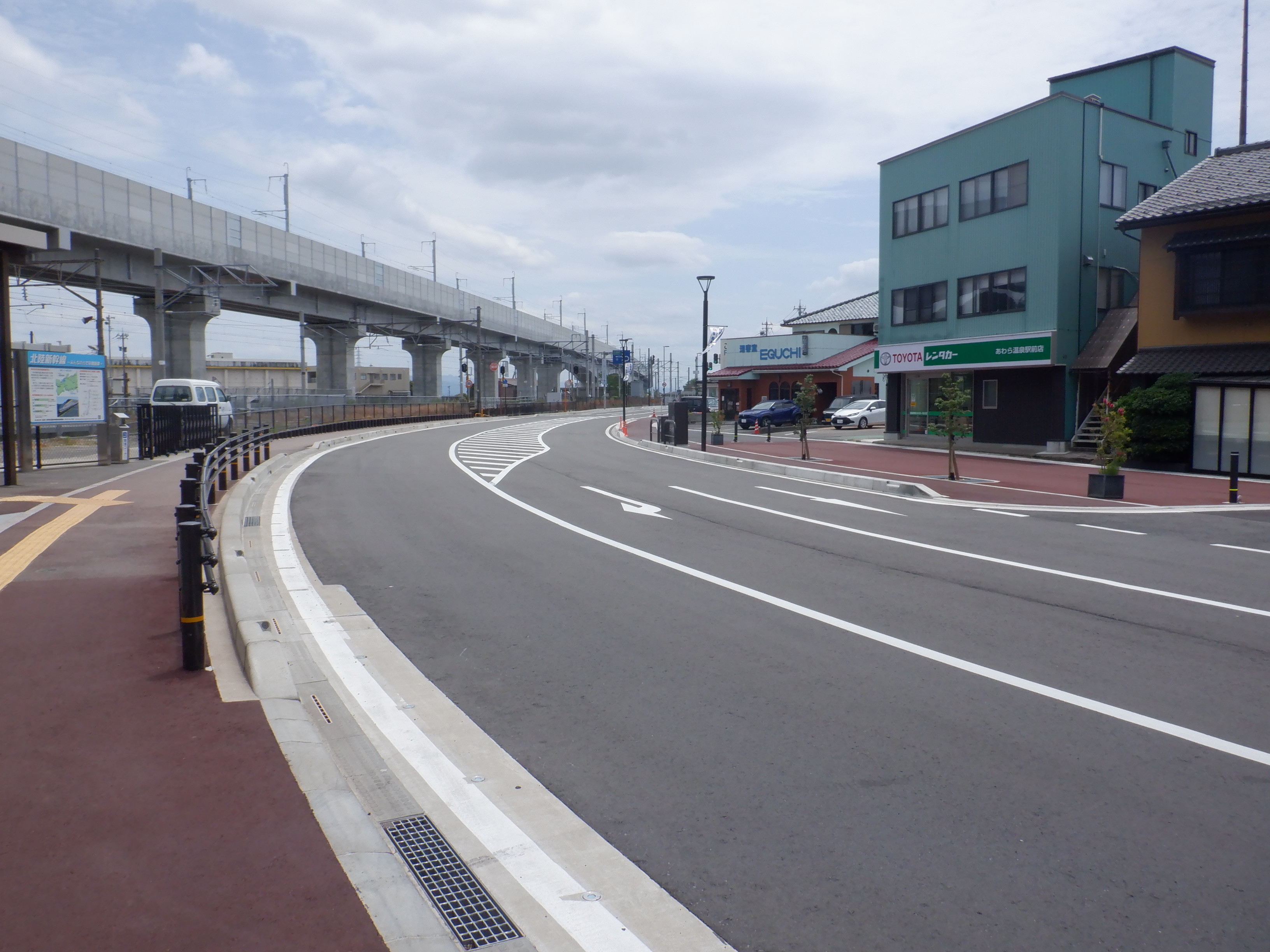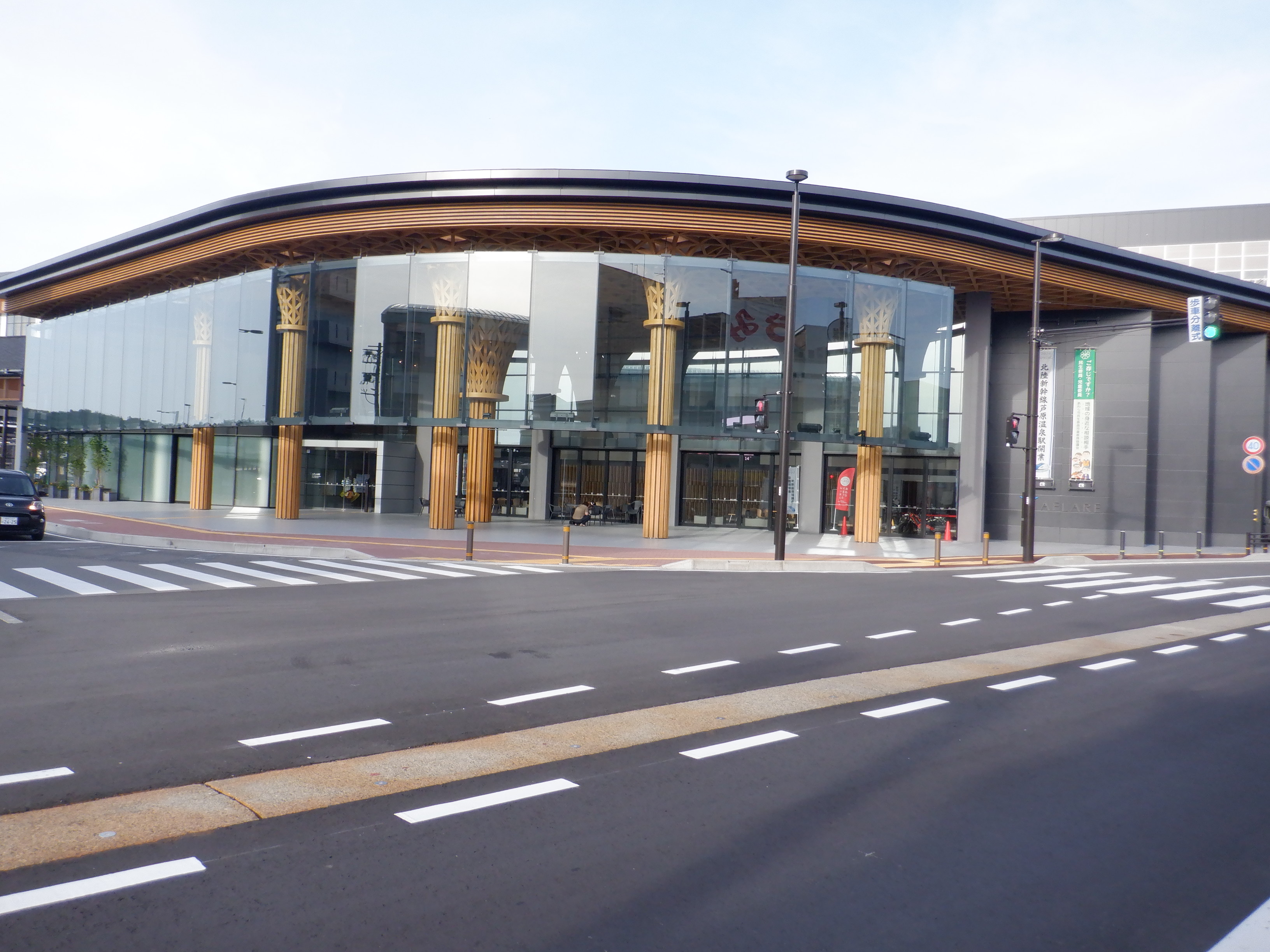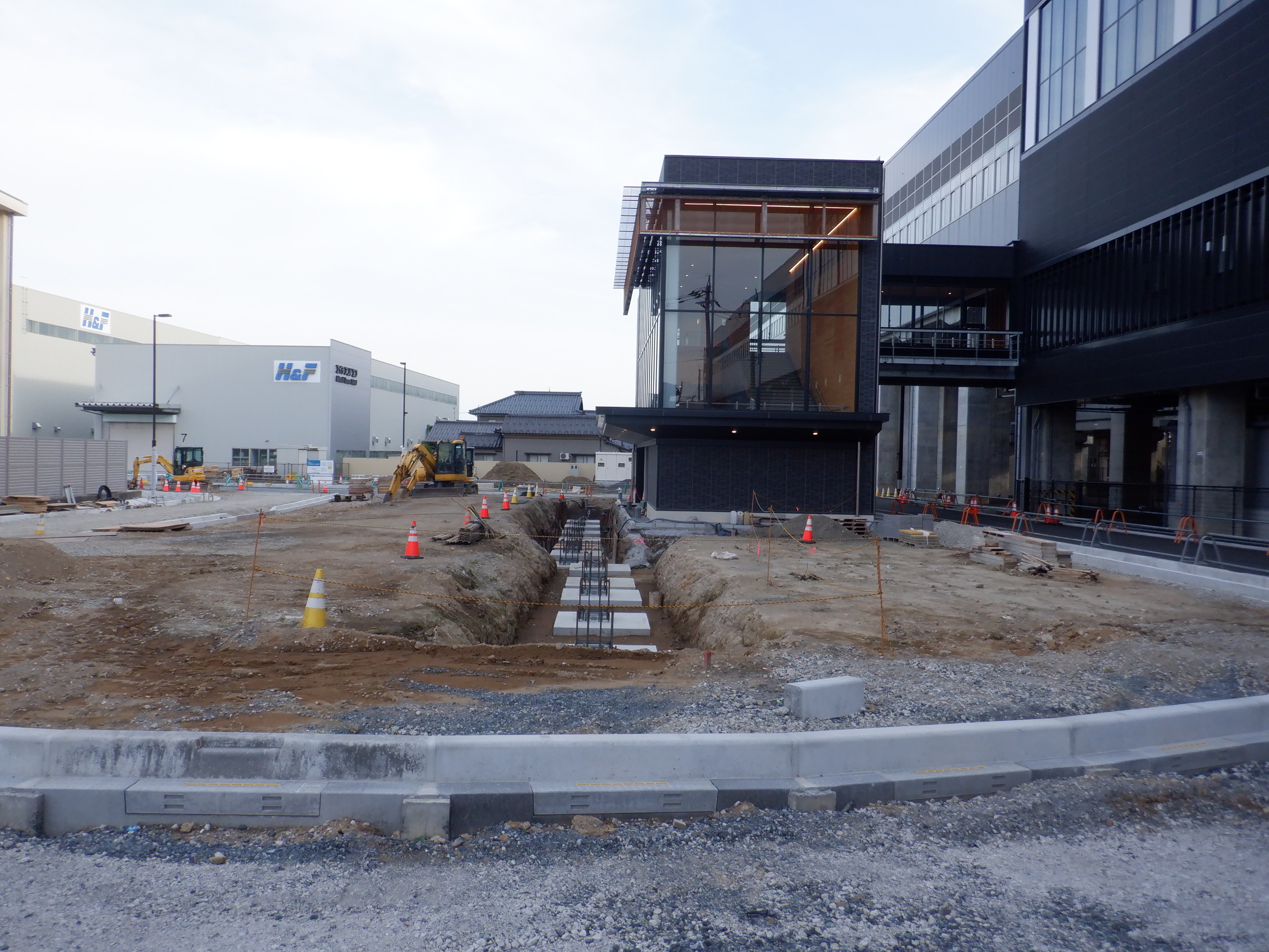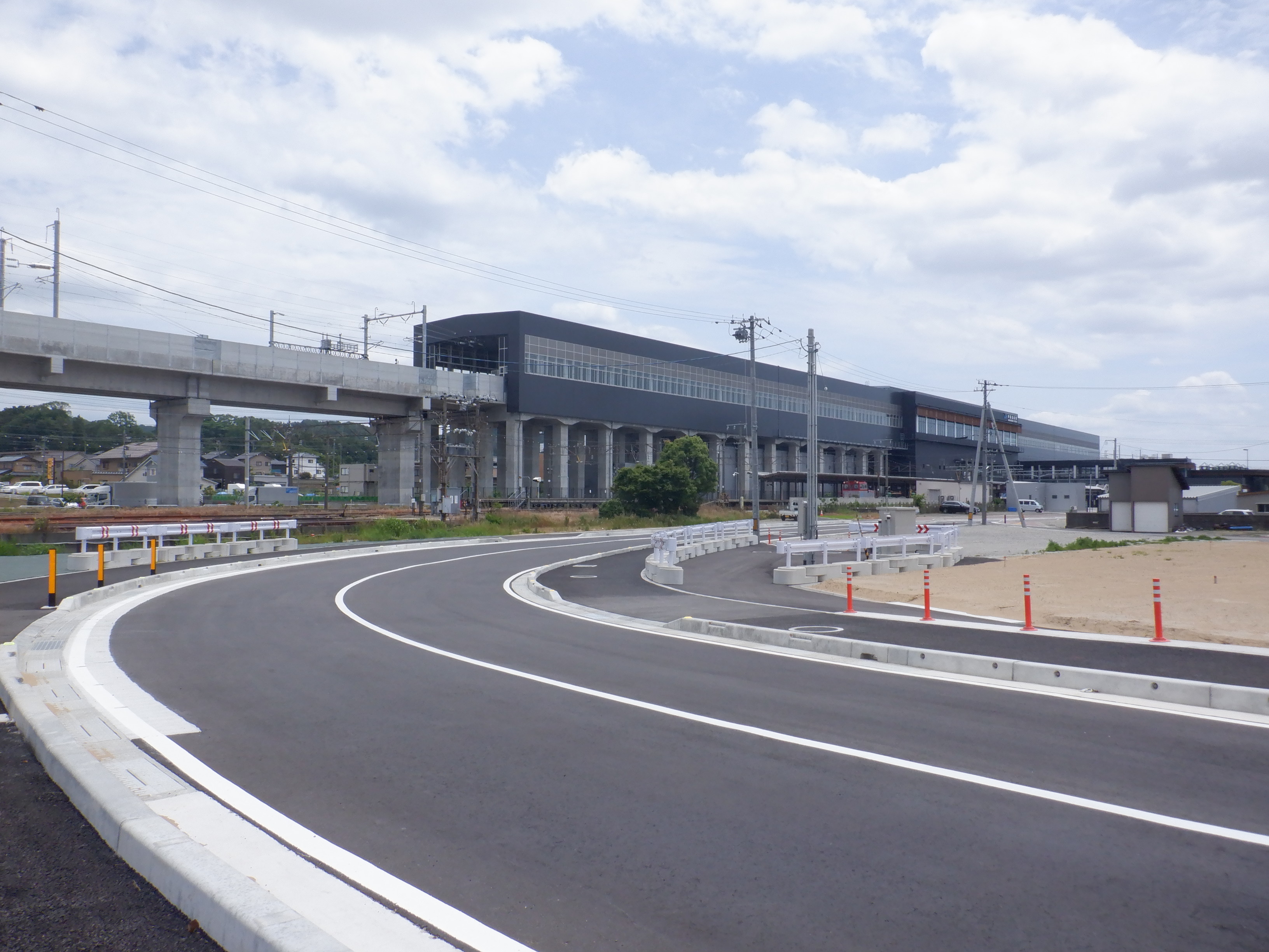 新しい道路から西口へ。駅前の新しいホテルの駐車場もできていました。