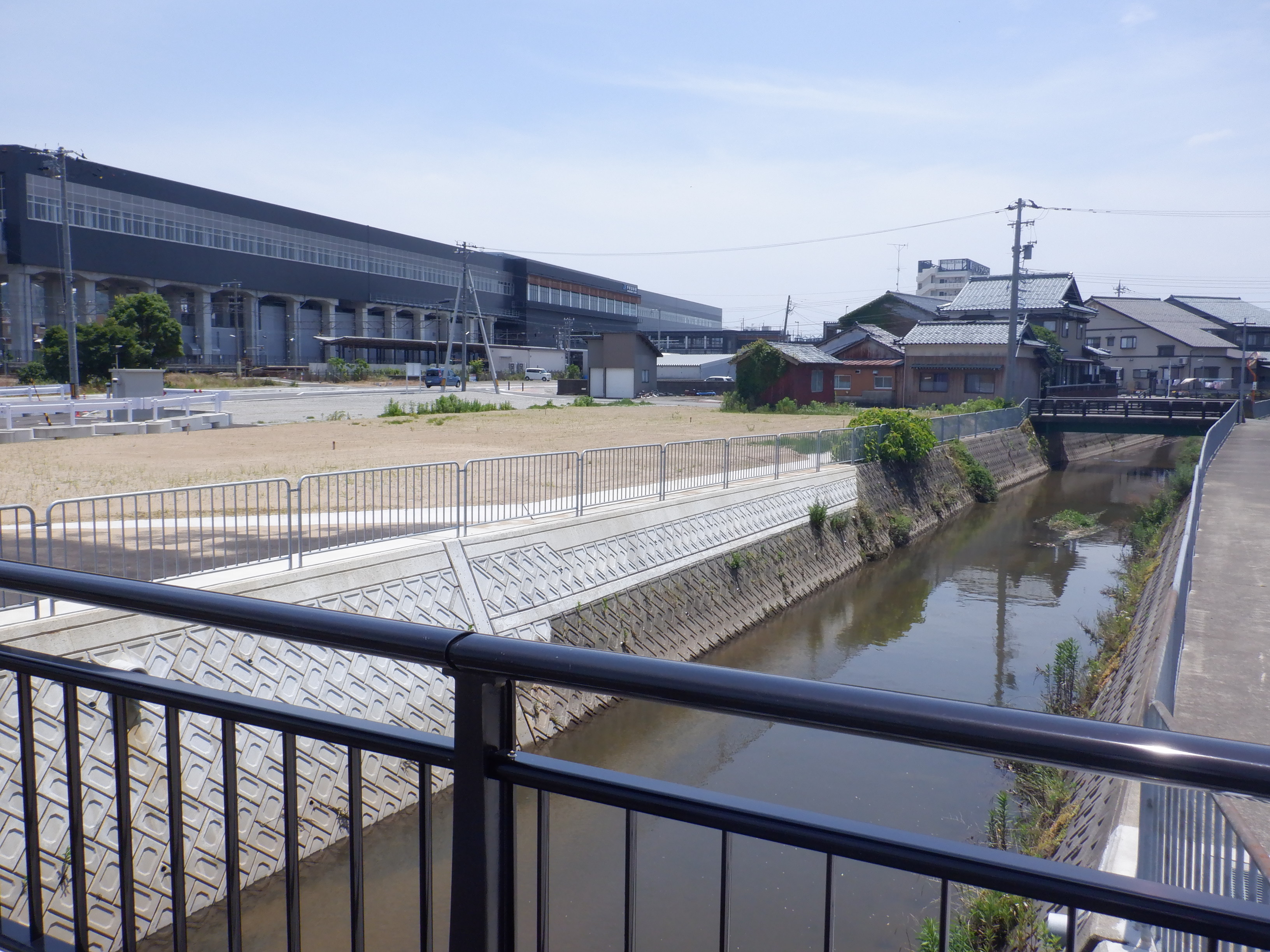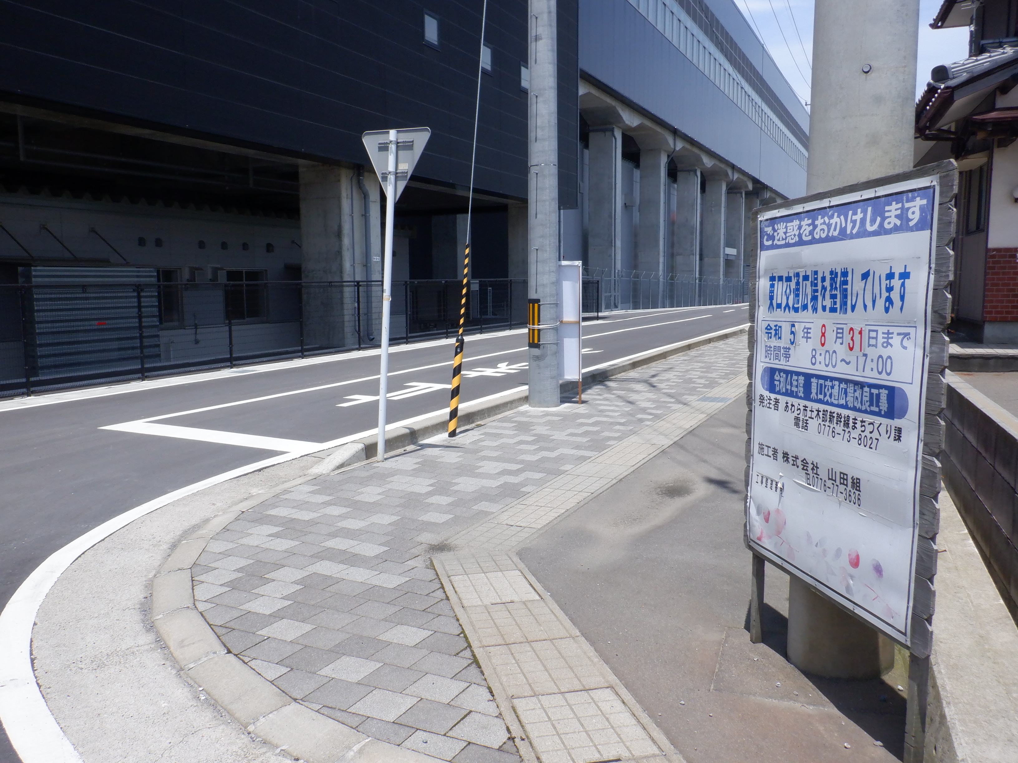 東口の交通広場建設中のところから見た細呂木駅側。今回はこの先は進みません。
