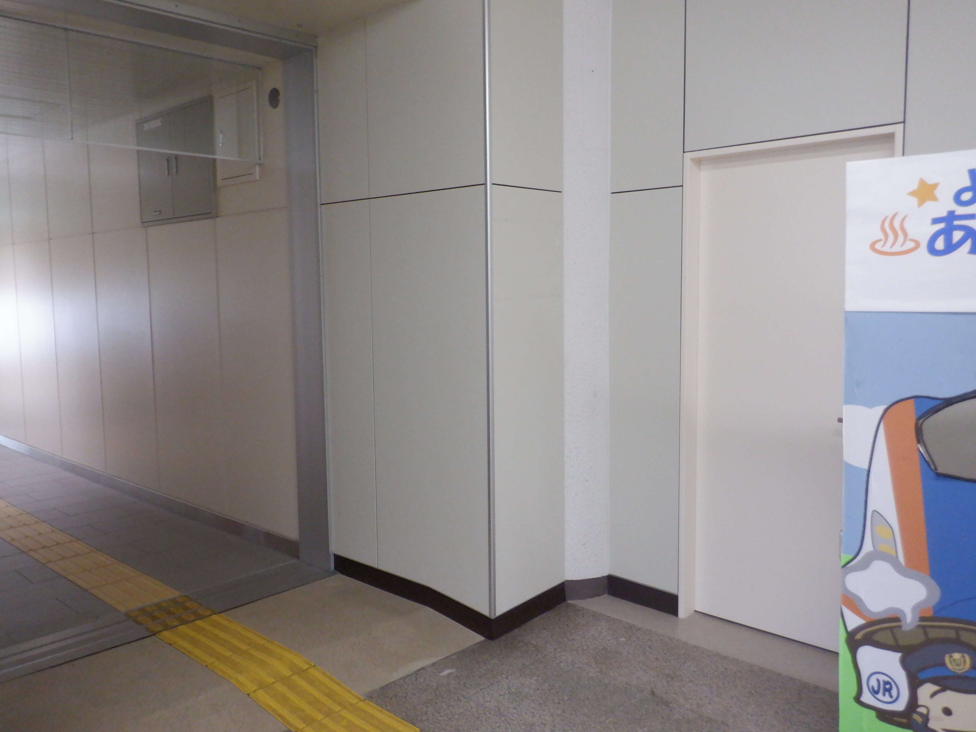 エレベーター前から見たアフレアに隠れた第一種駅名標。