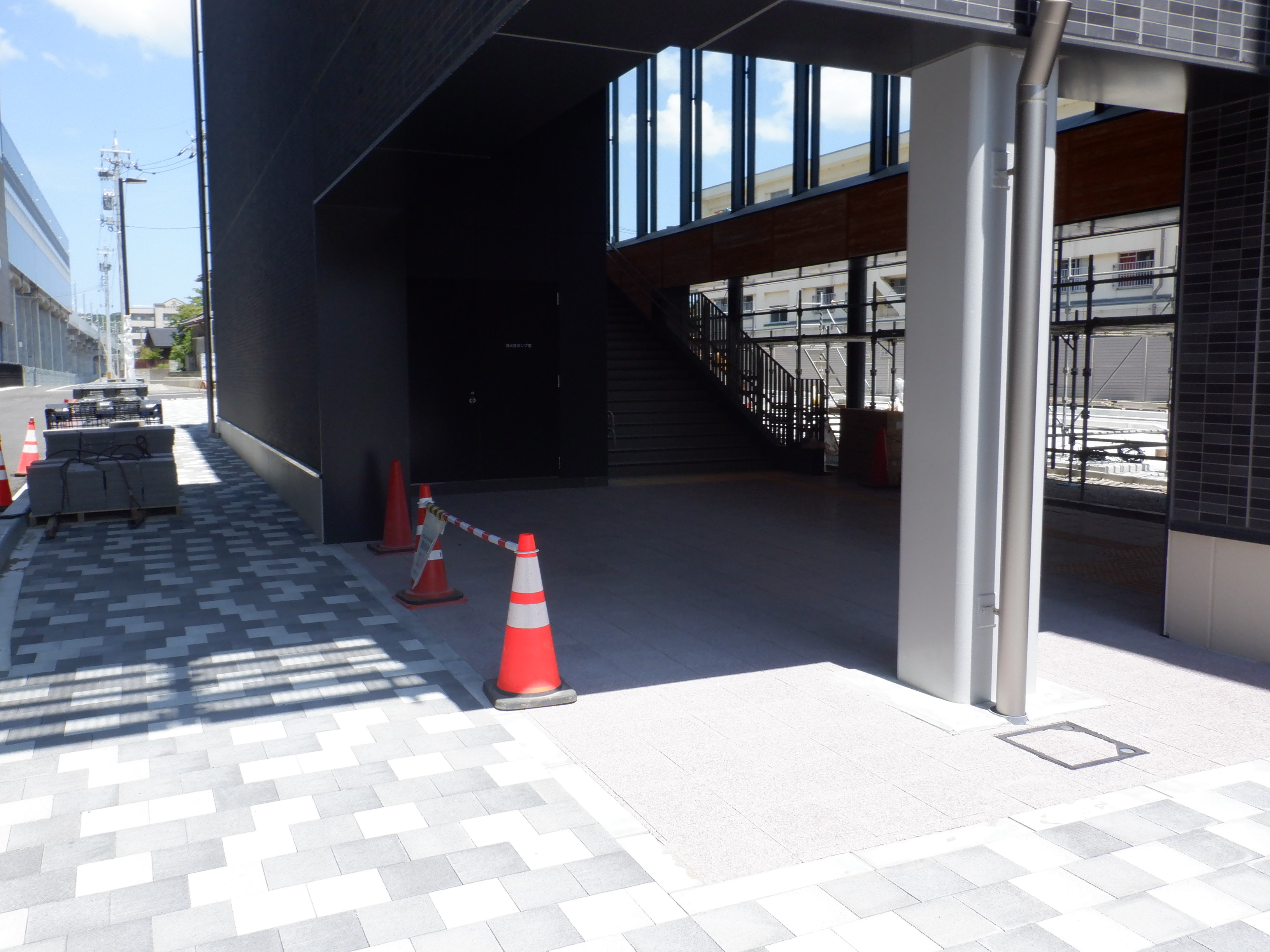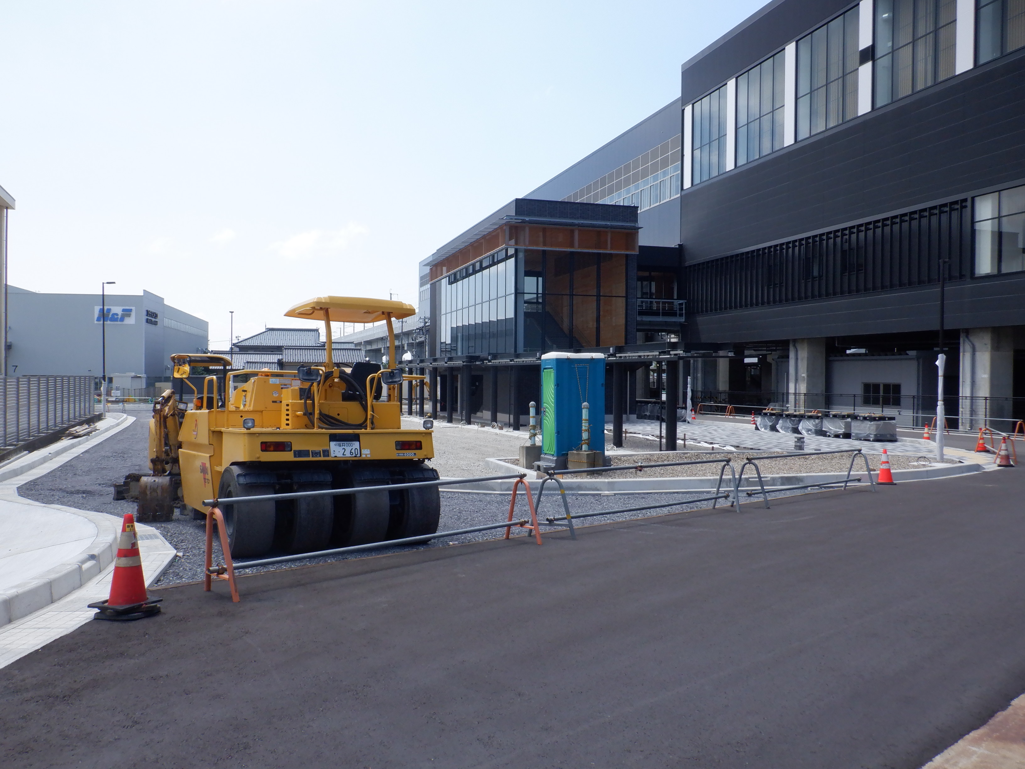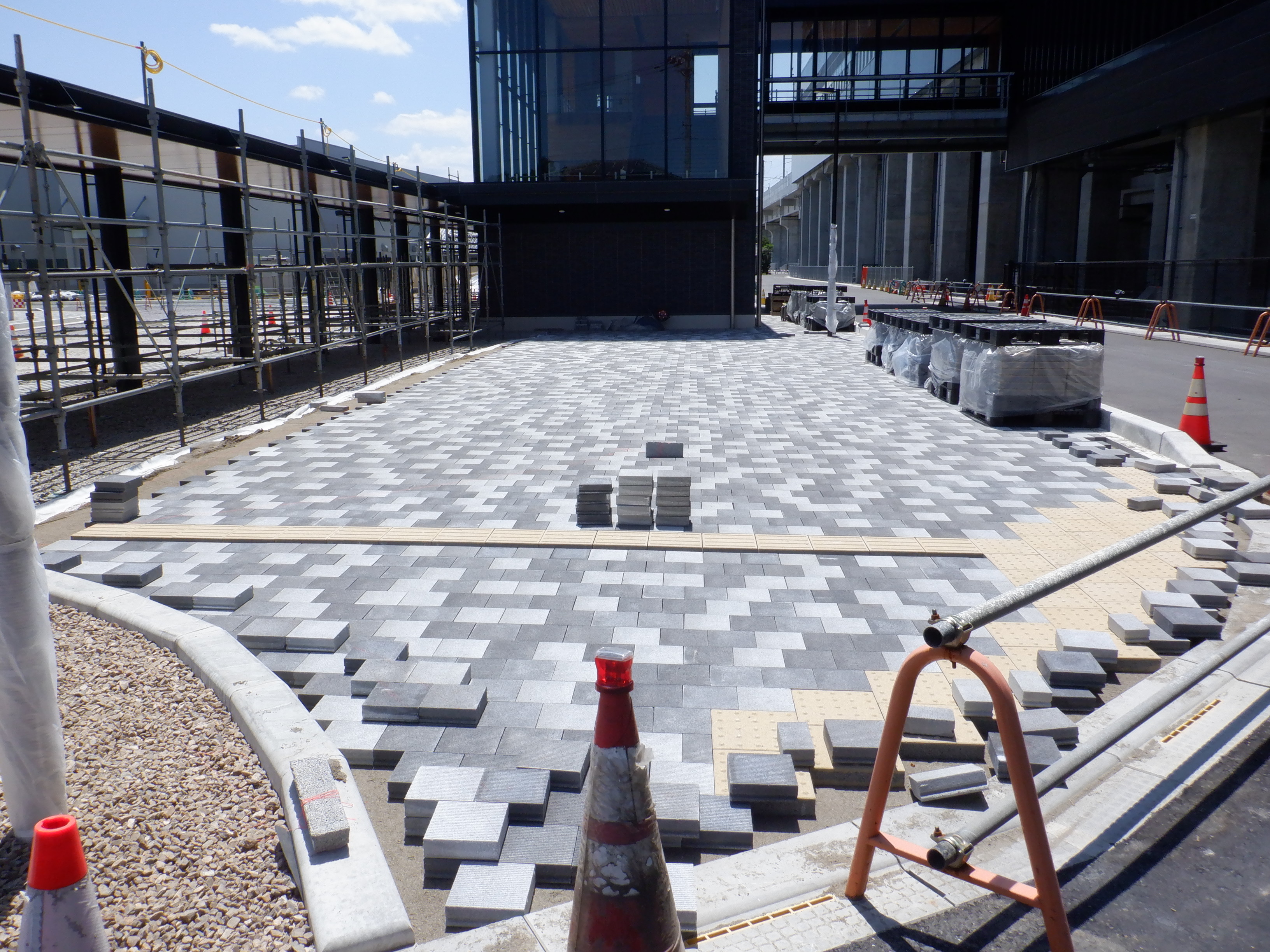 東口交通広場の歩道タイル貼りなどが進んでいます。