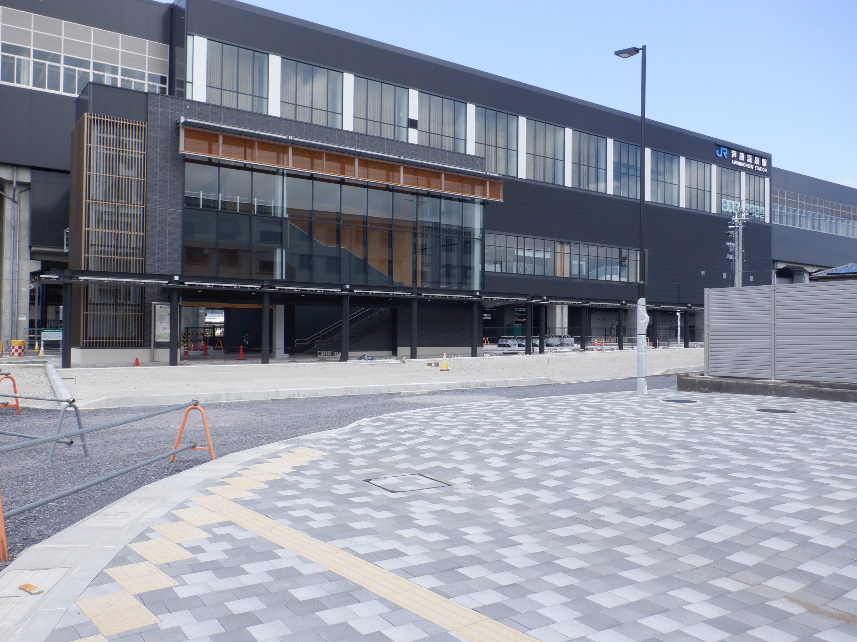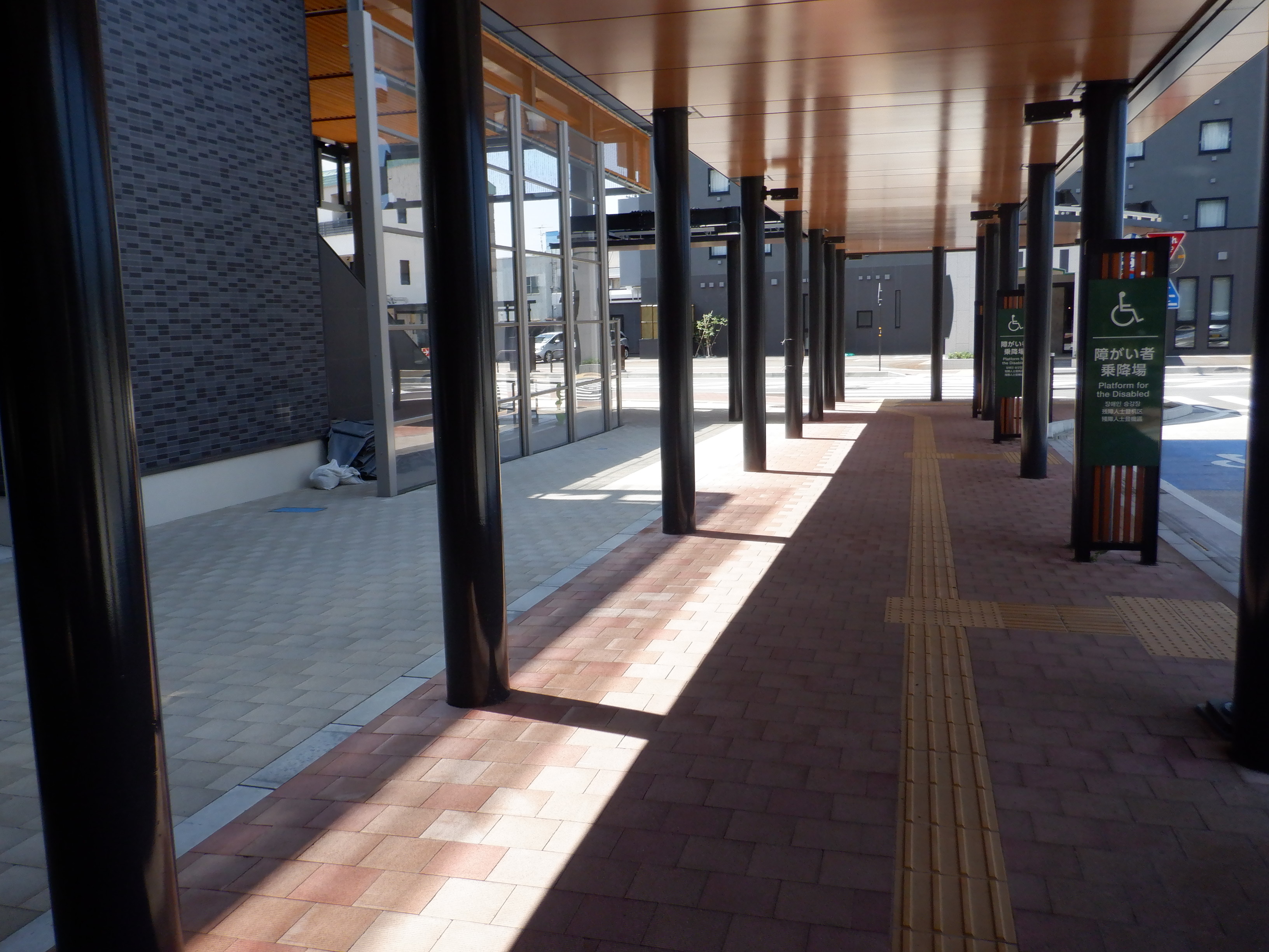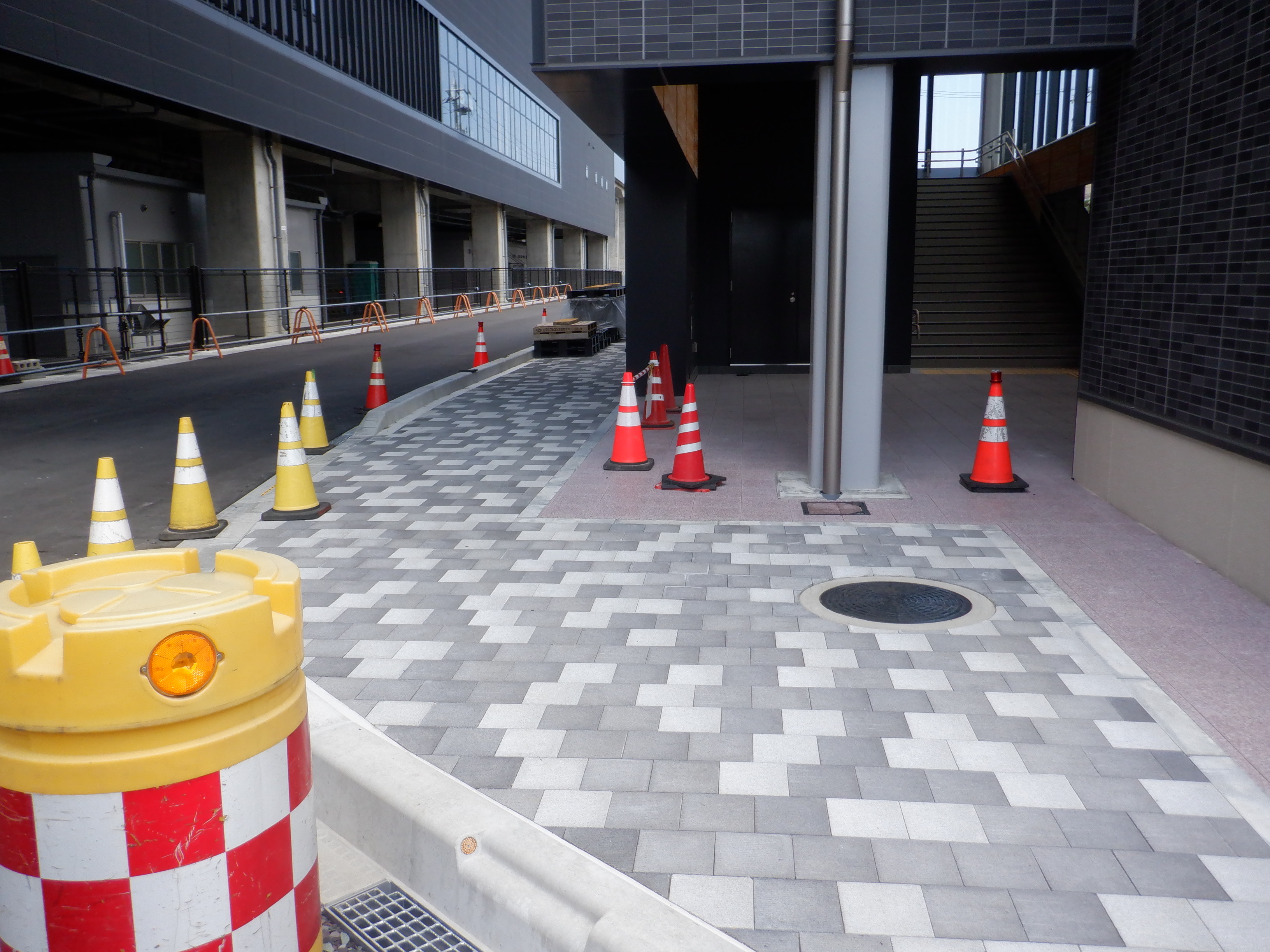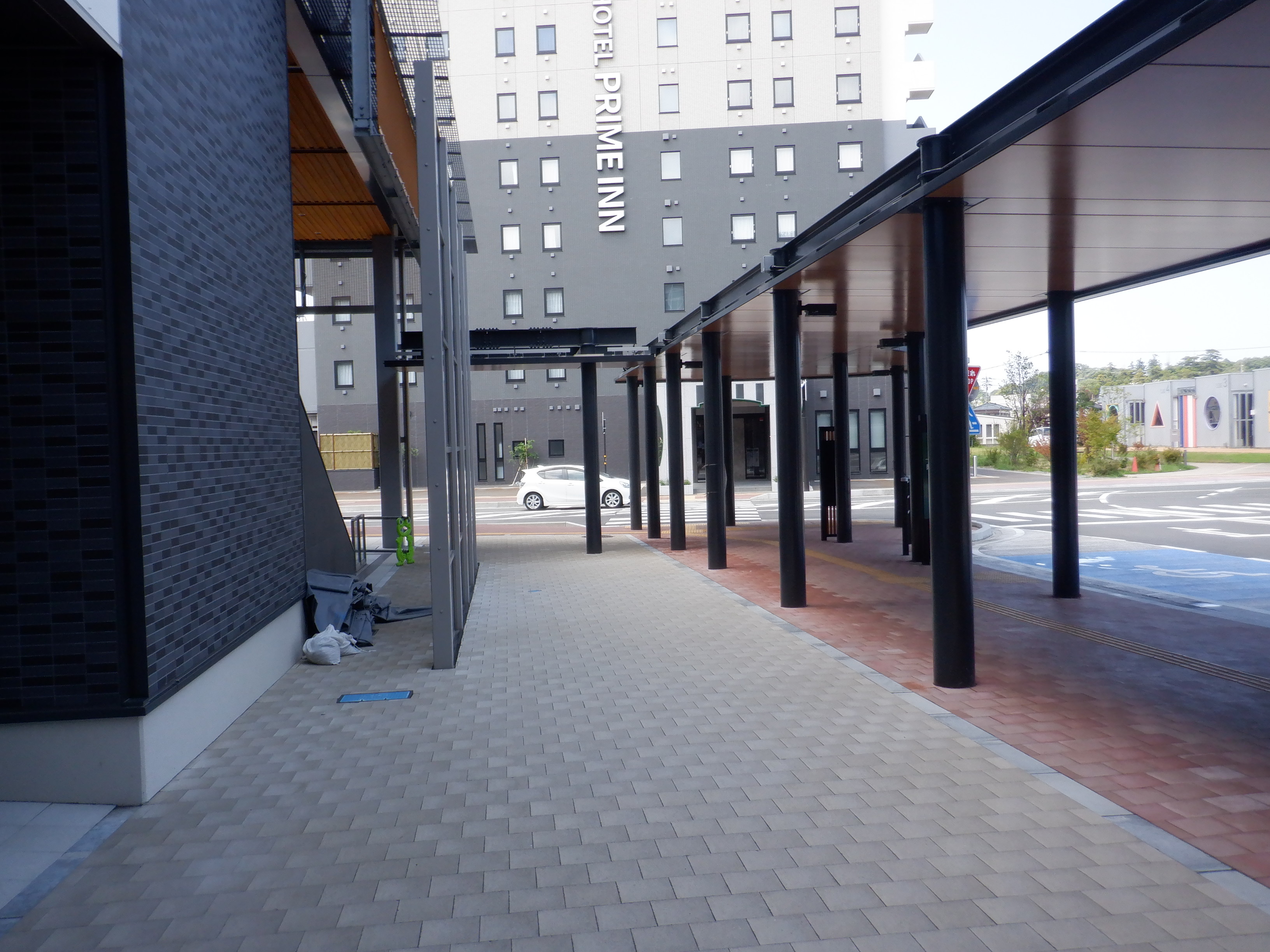 東口交通広場の歩道タイル貼りなどが進んでいます。