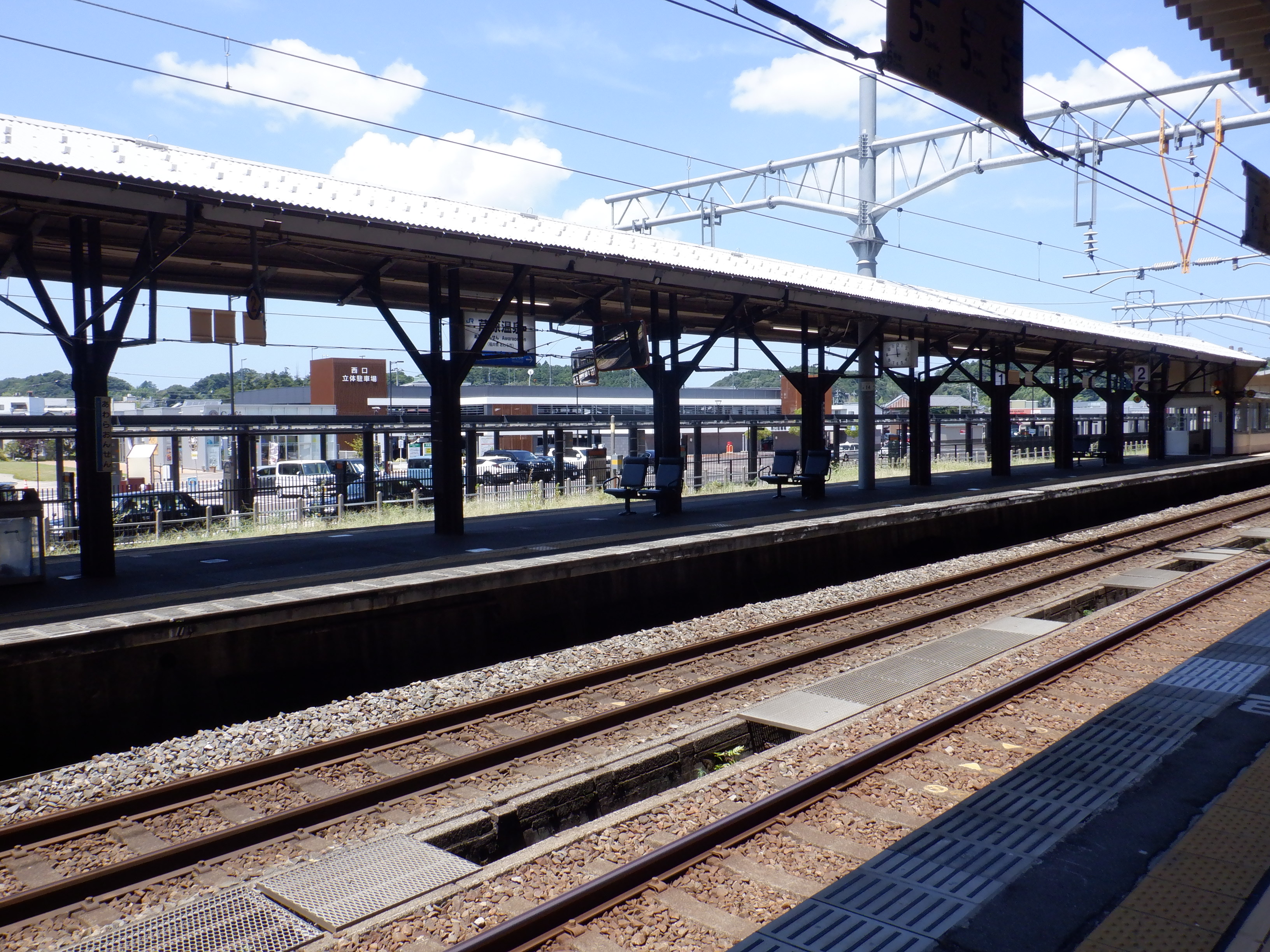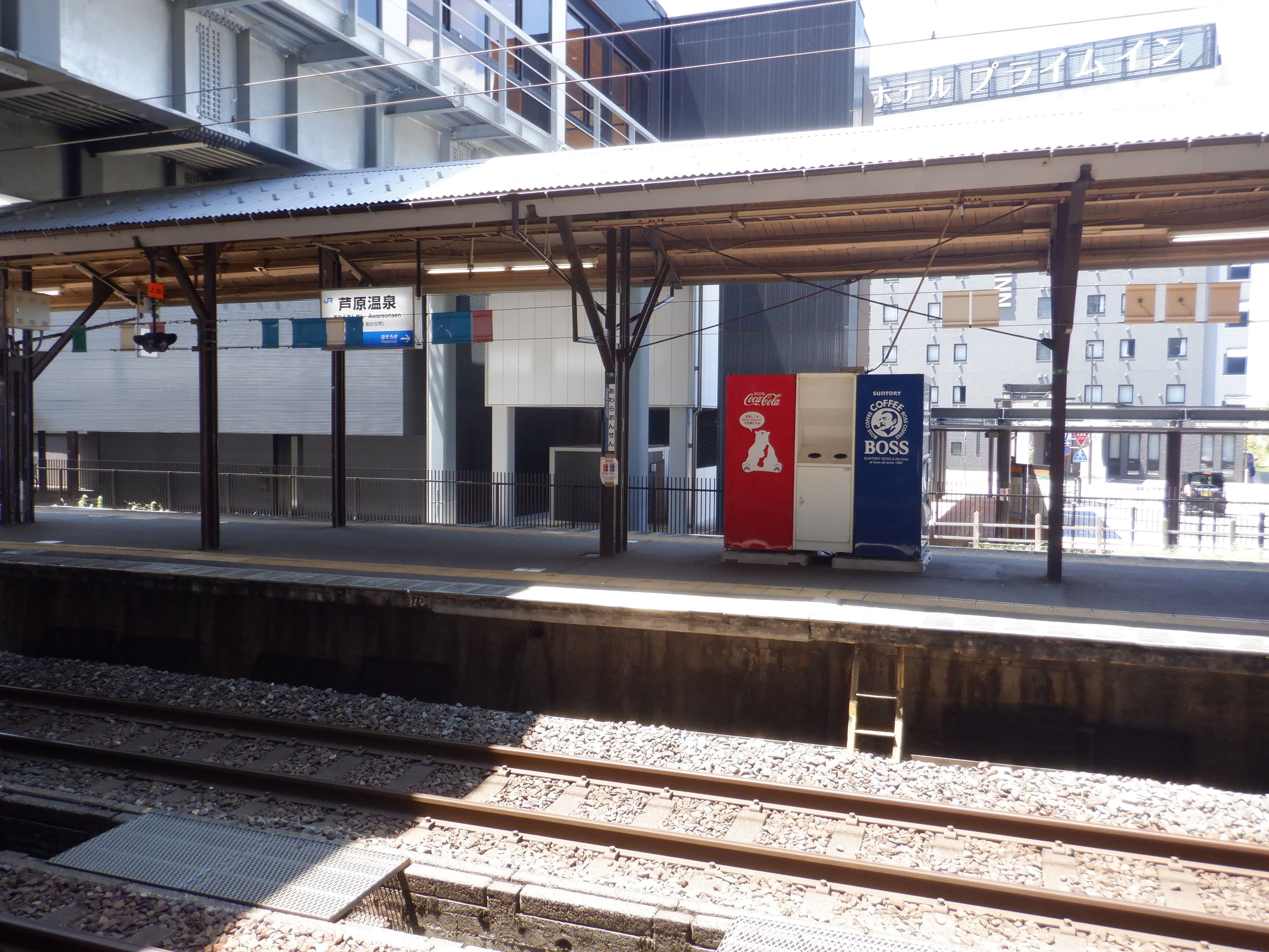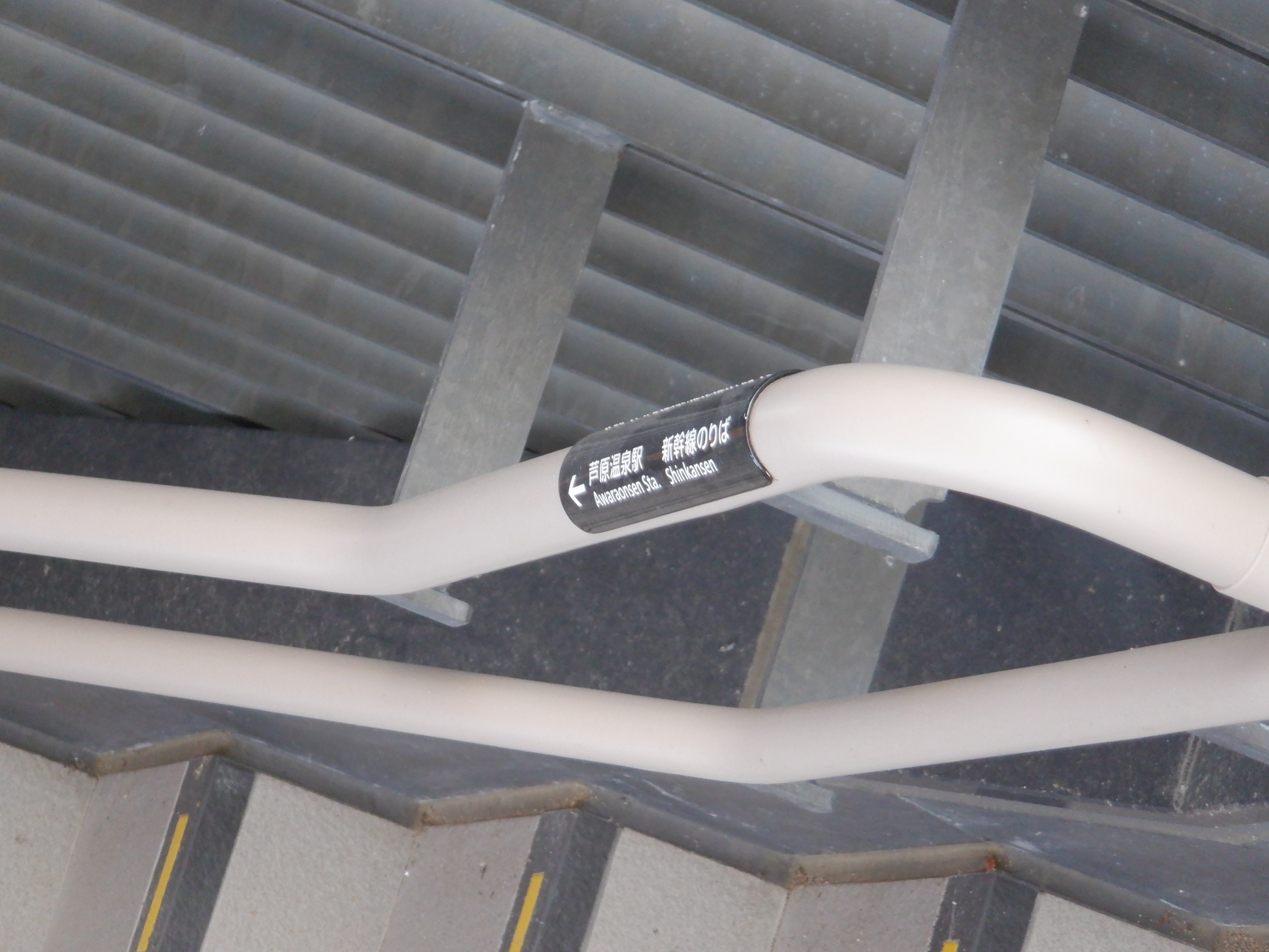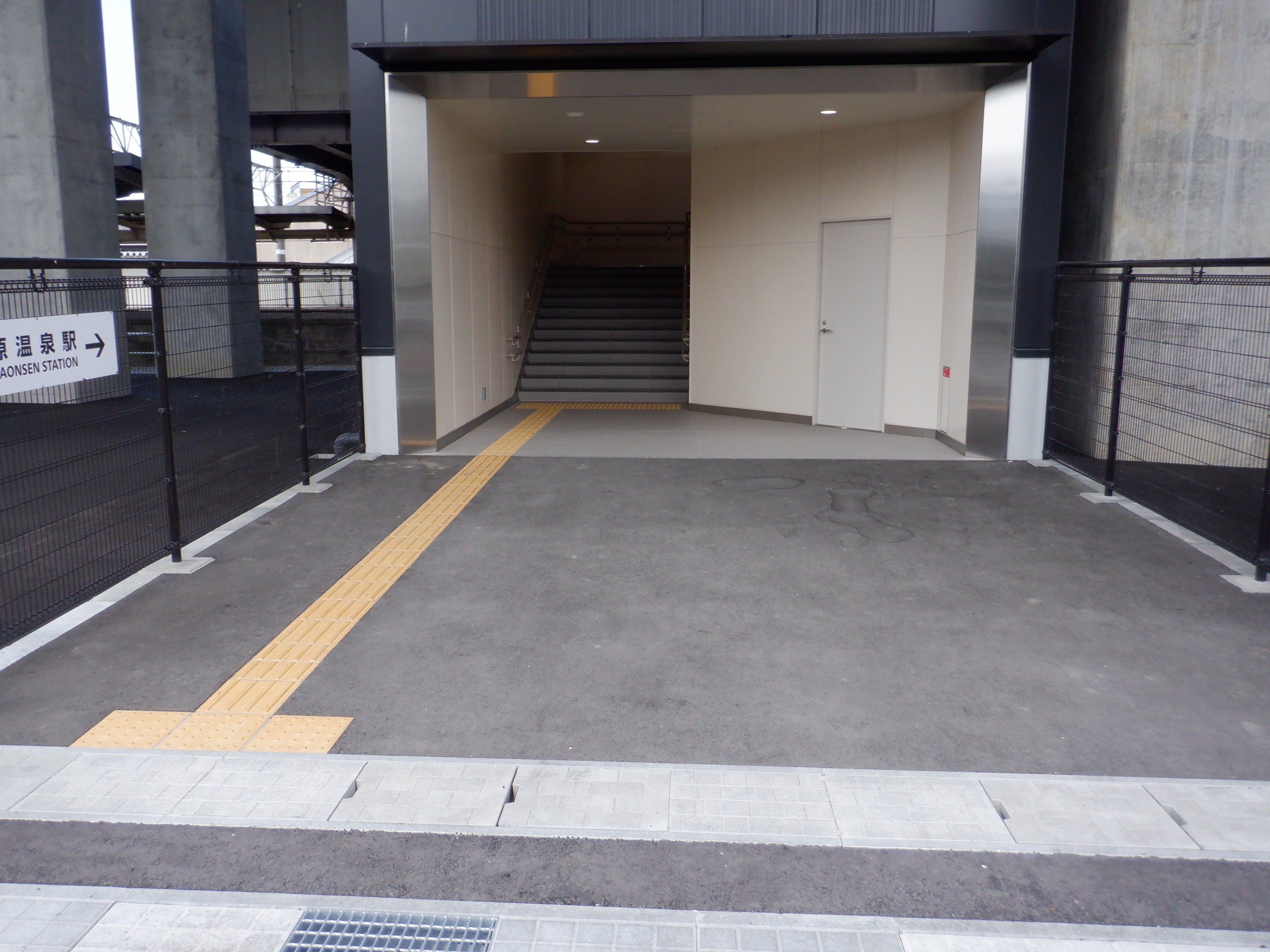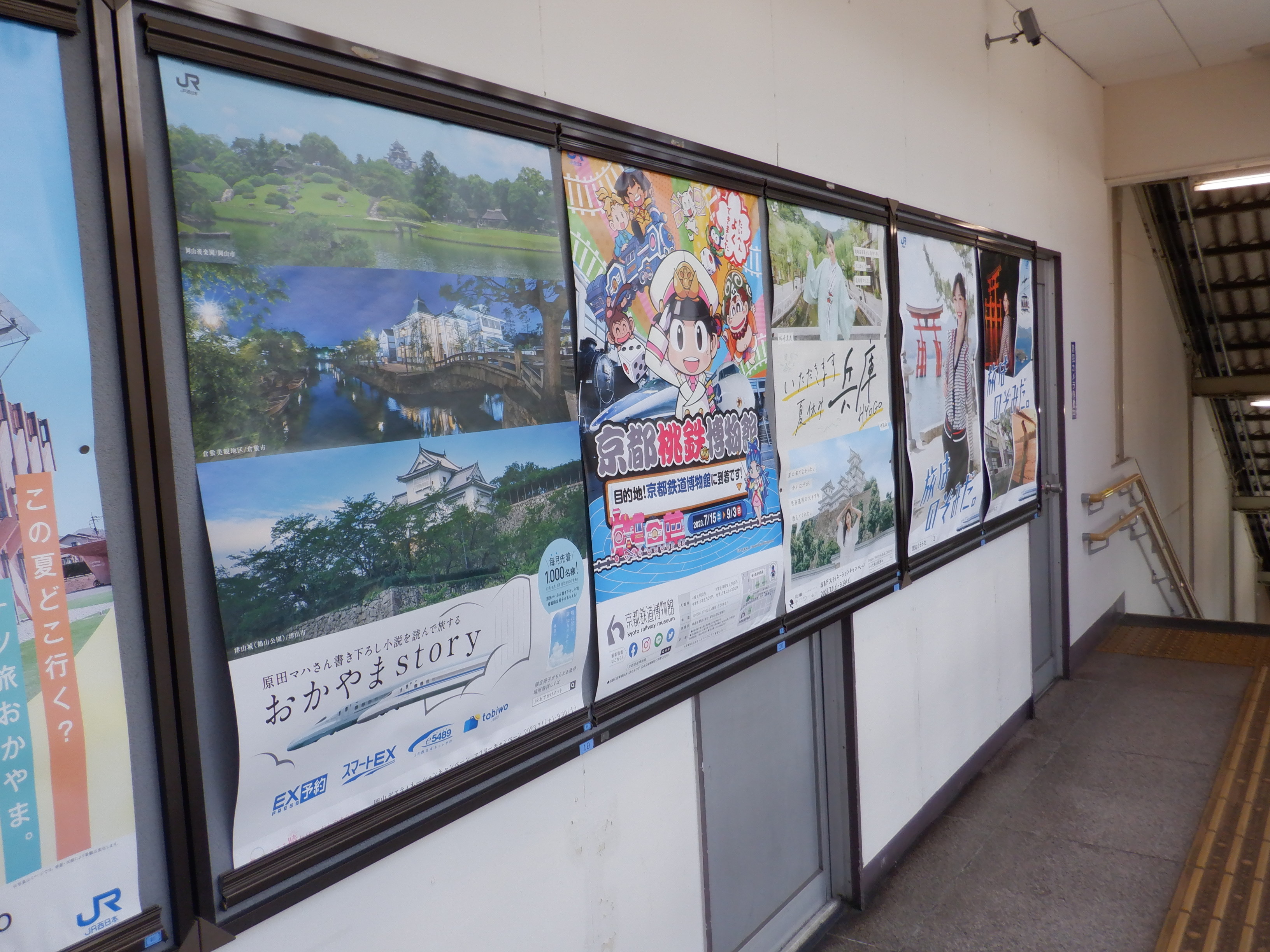 エレベーター前から見た駅舎の旧第一種駅名標など。