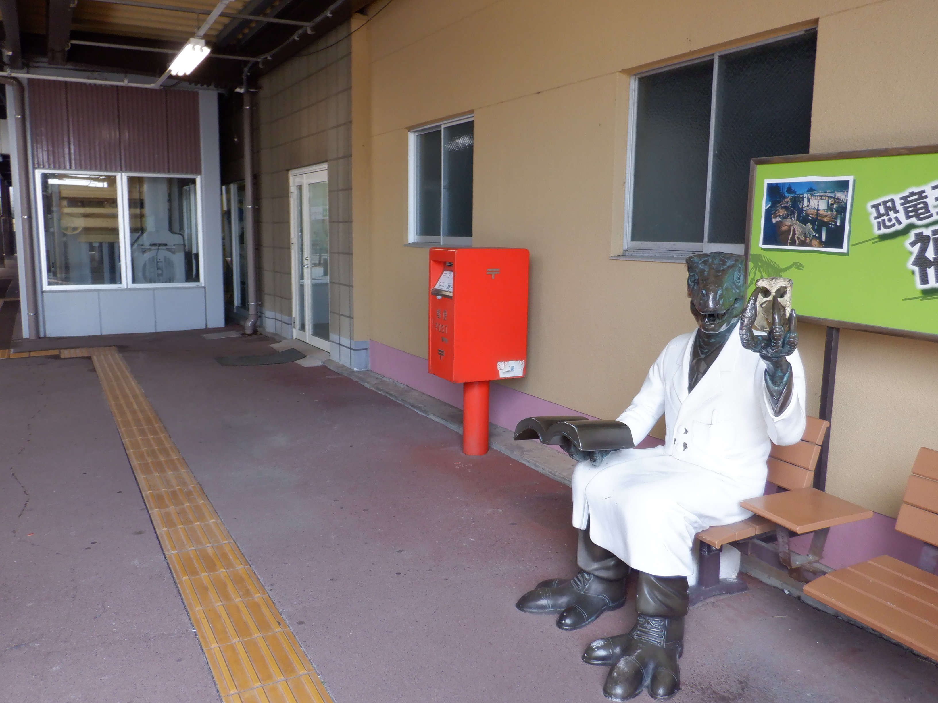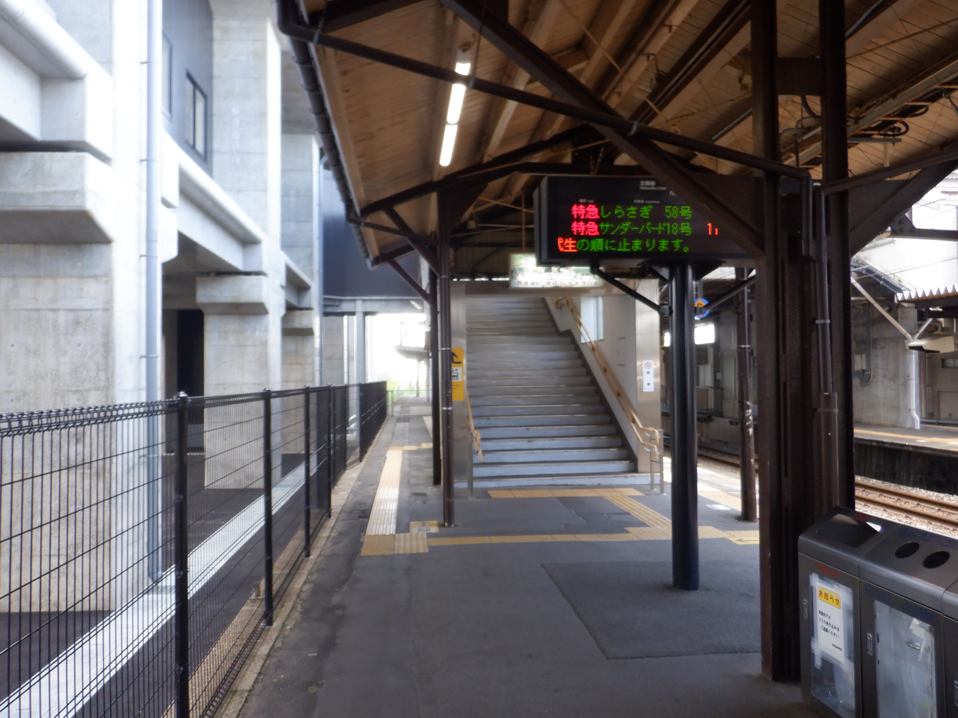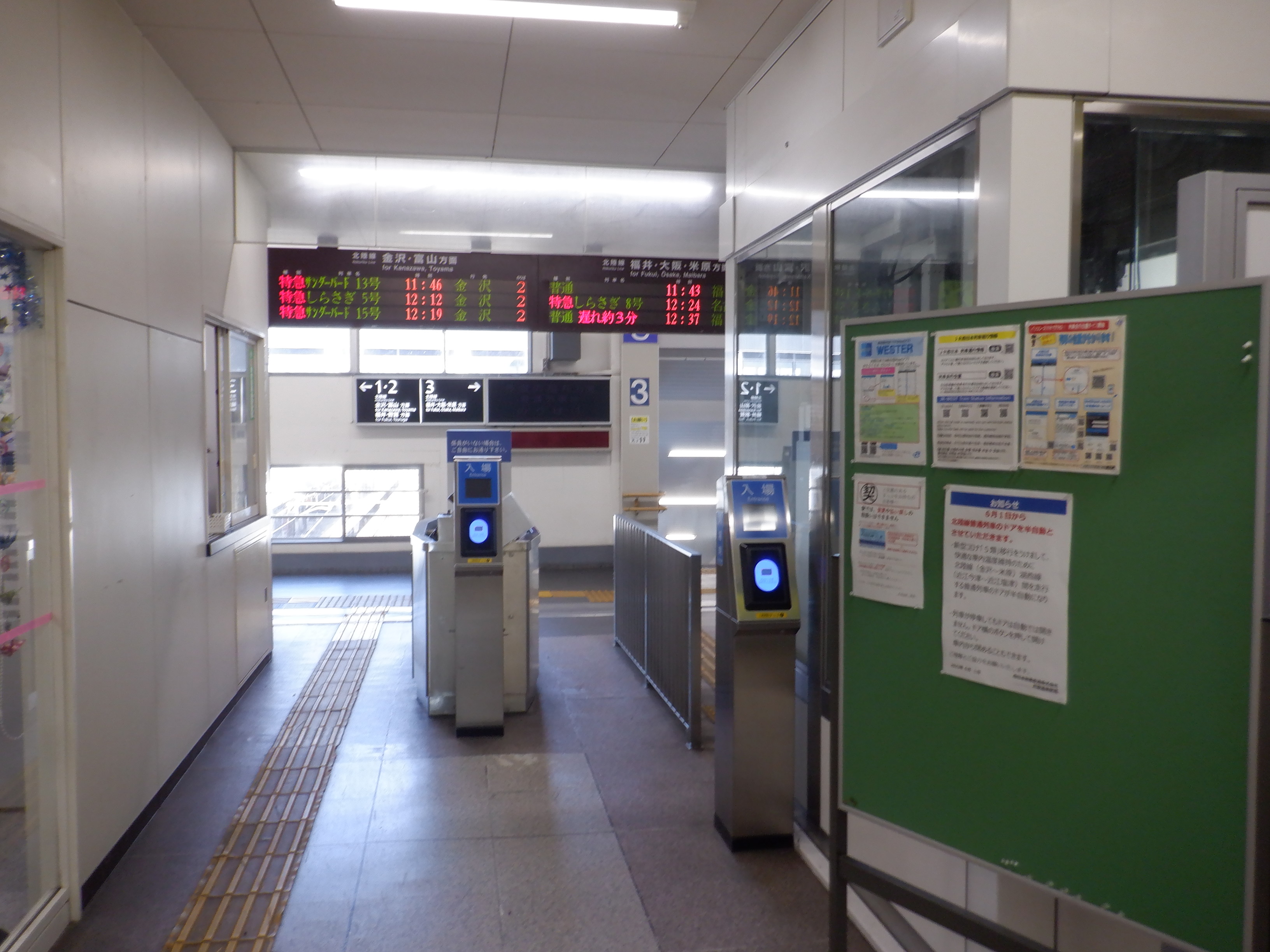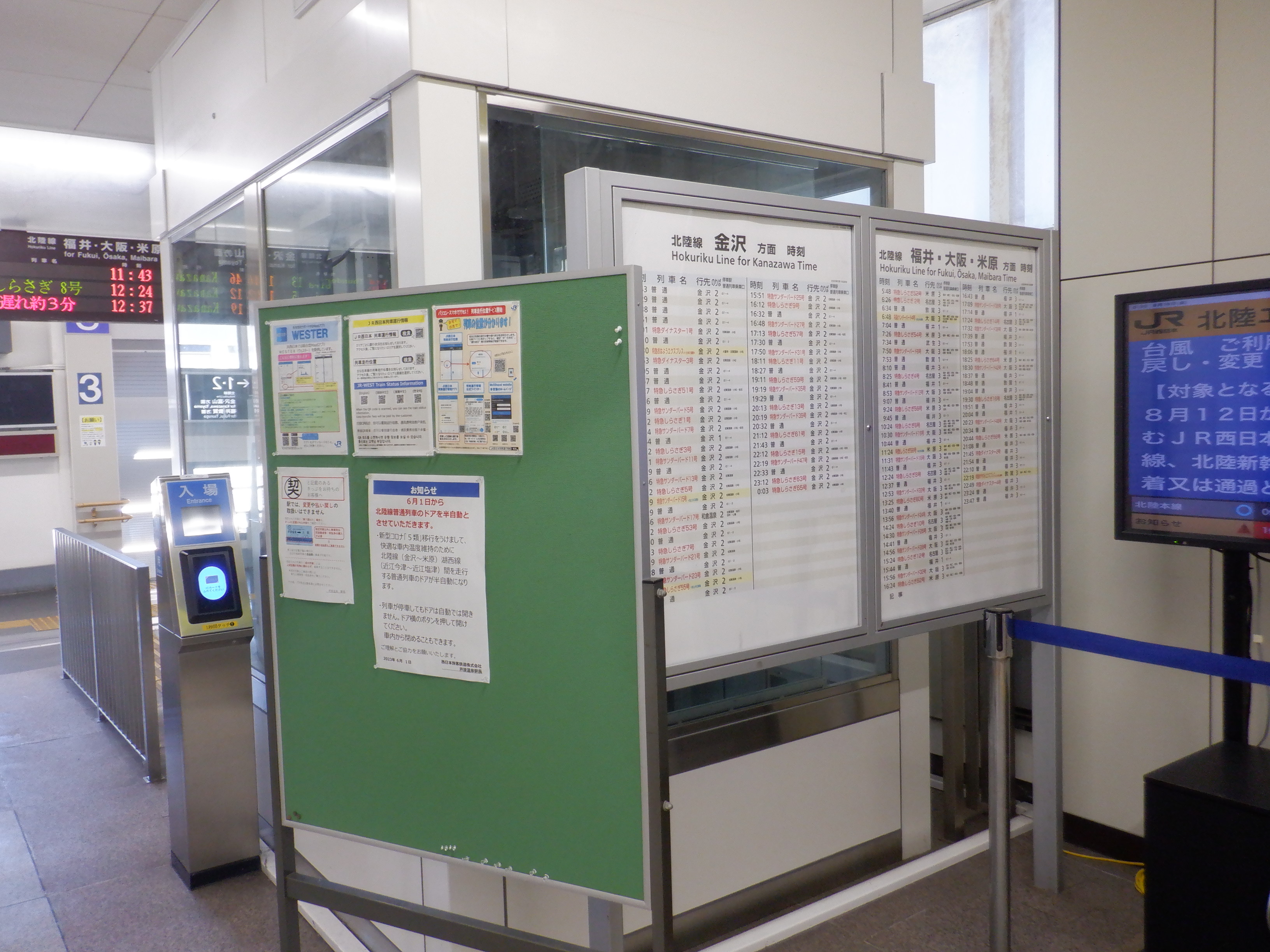 エレベーター前から見た駅舎の旧第一種駅名標など。