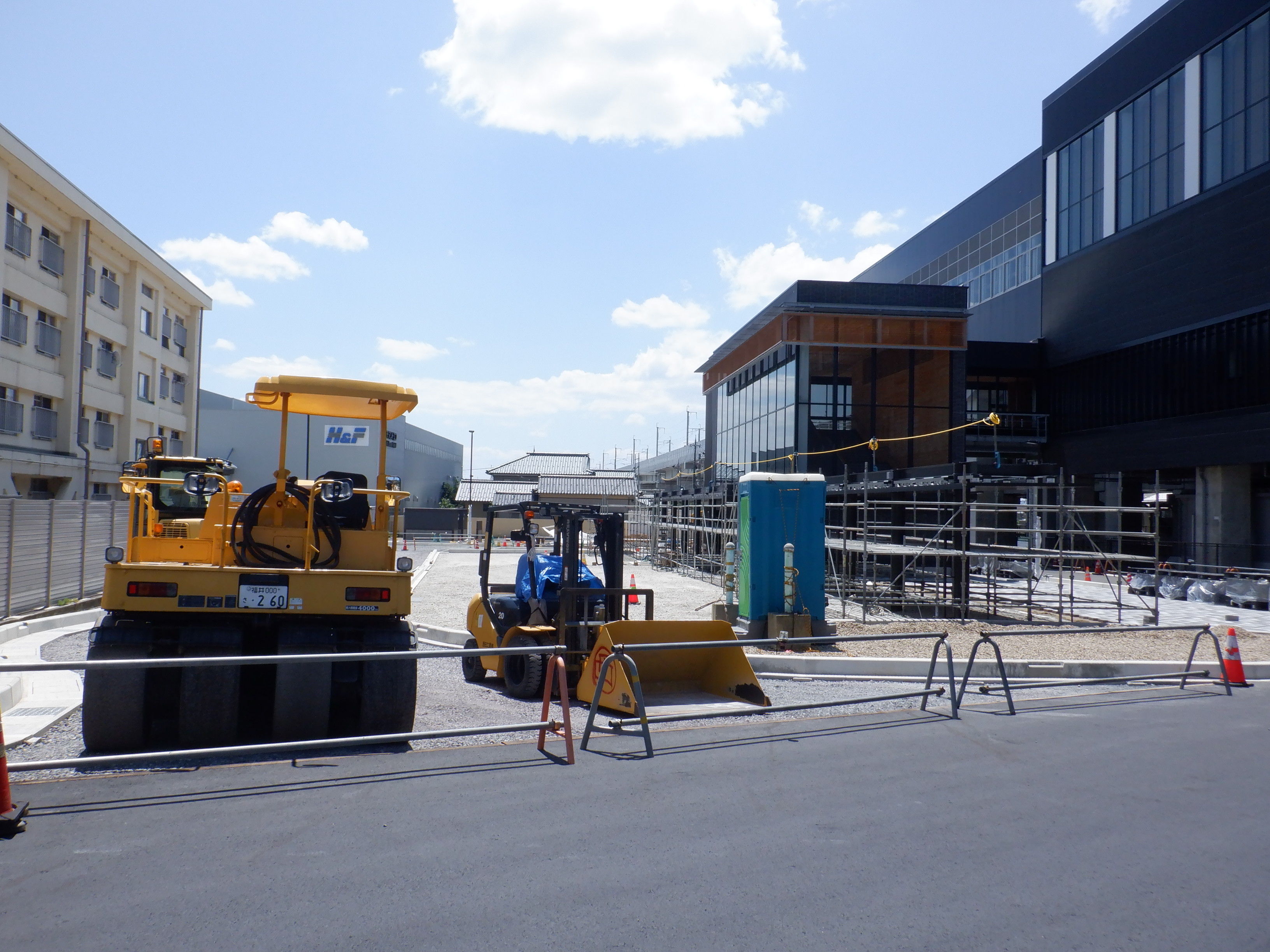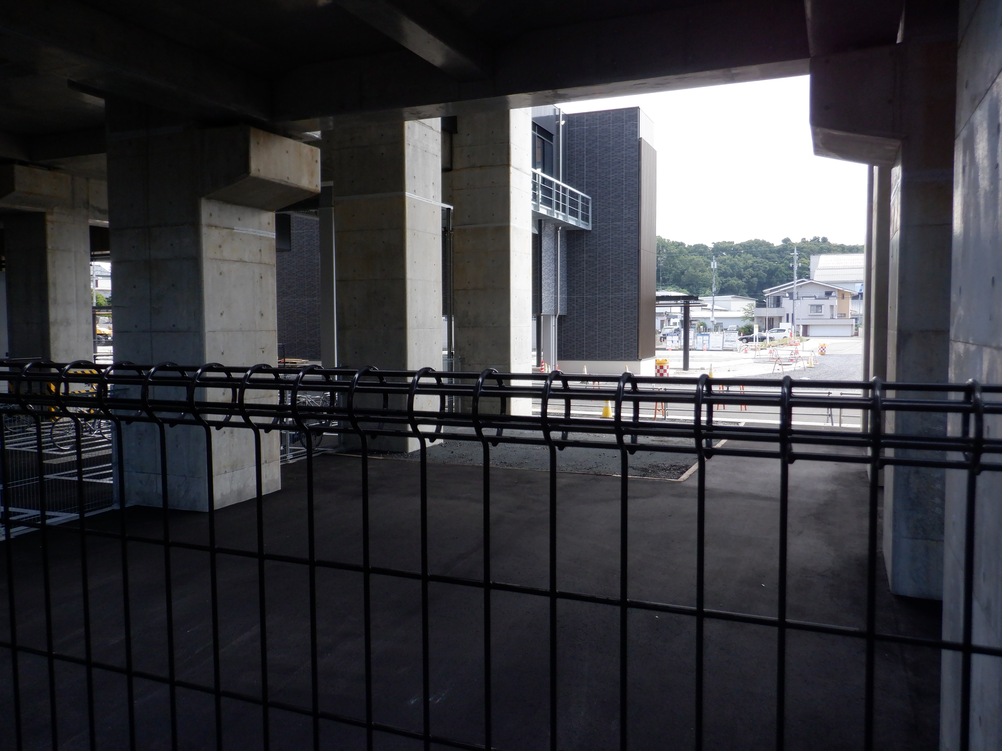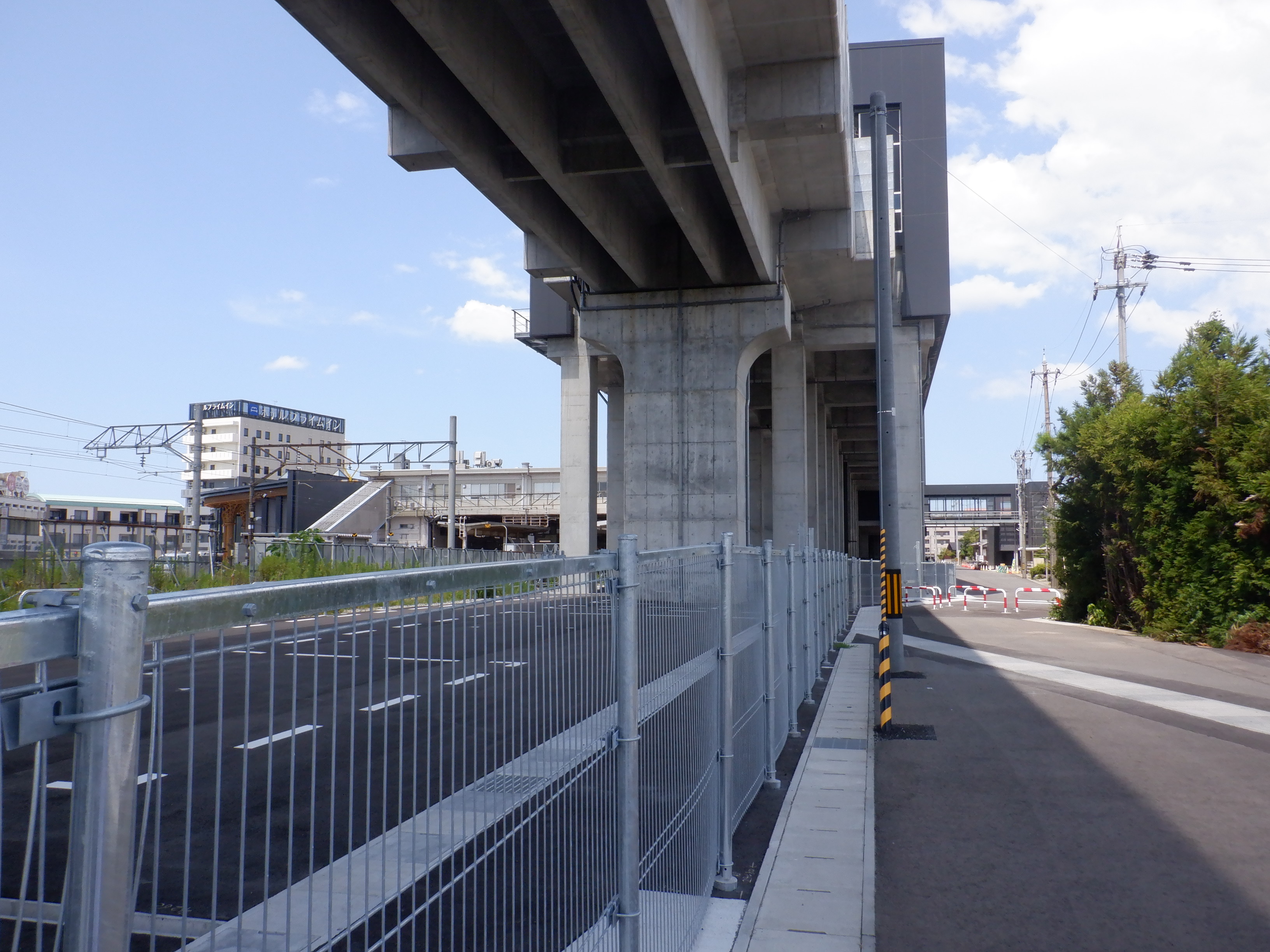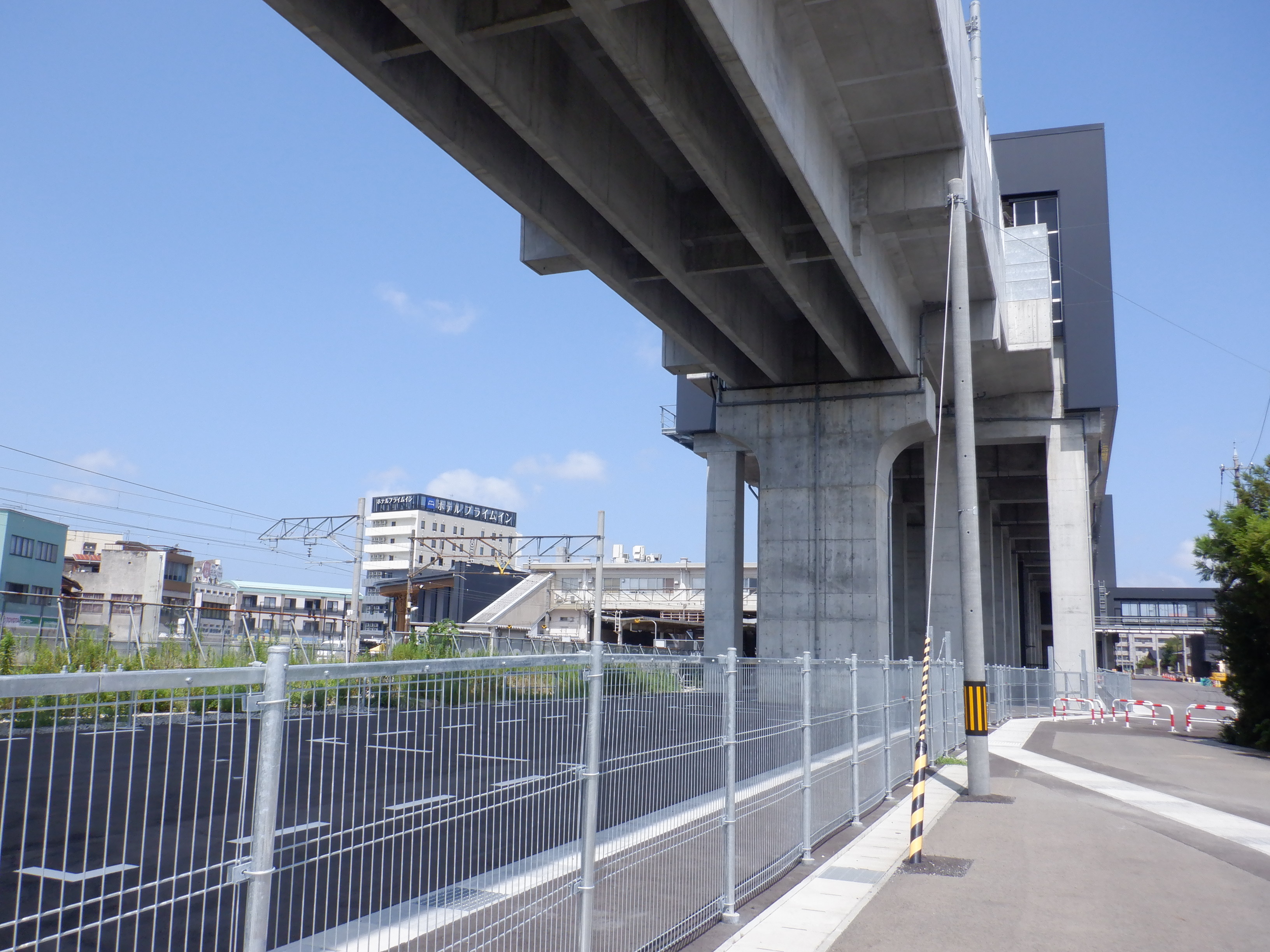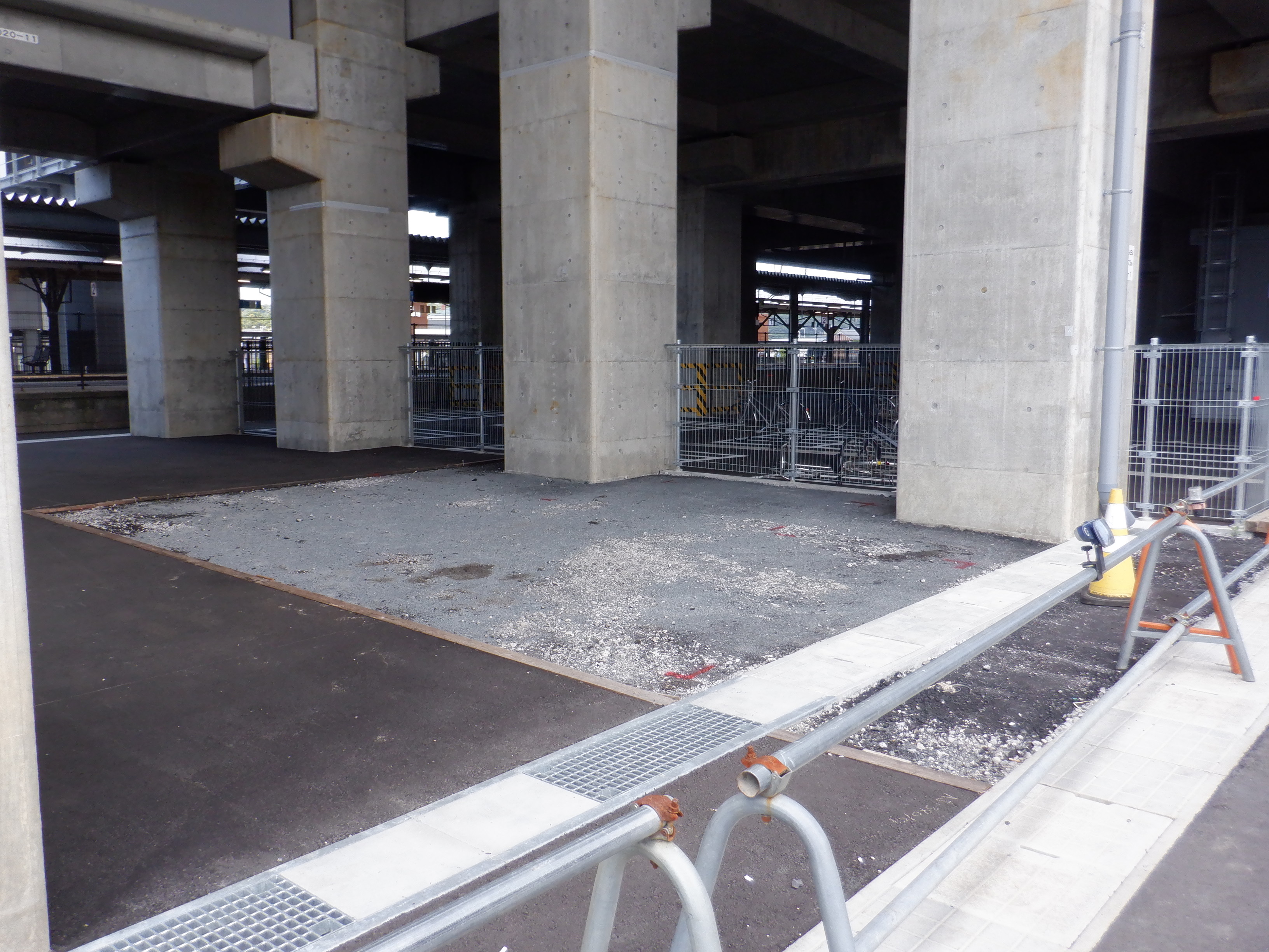 レンタカー屋さんができるところと高架下の駐輪場建設中のところ。