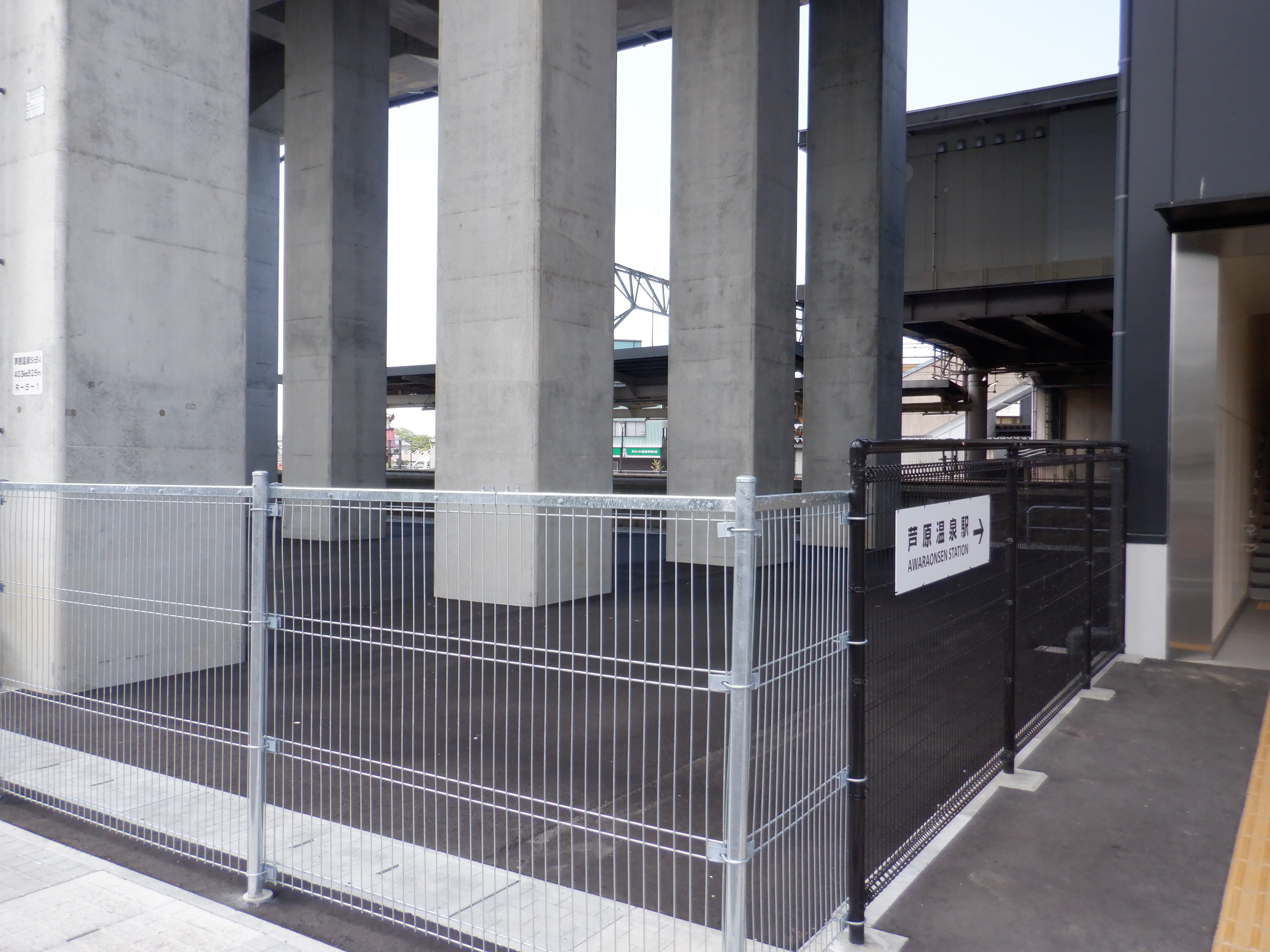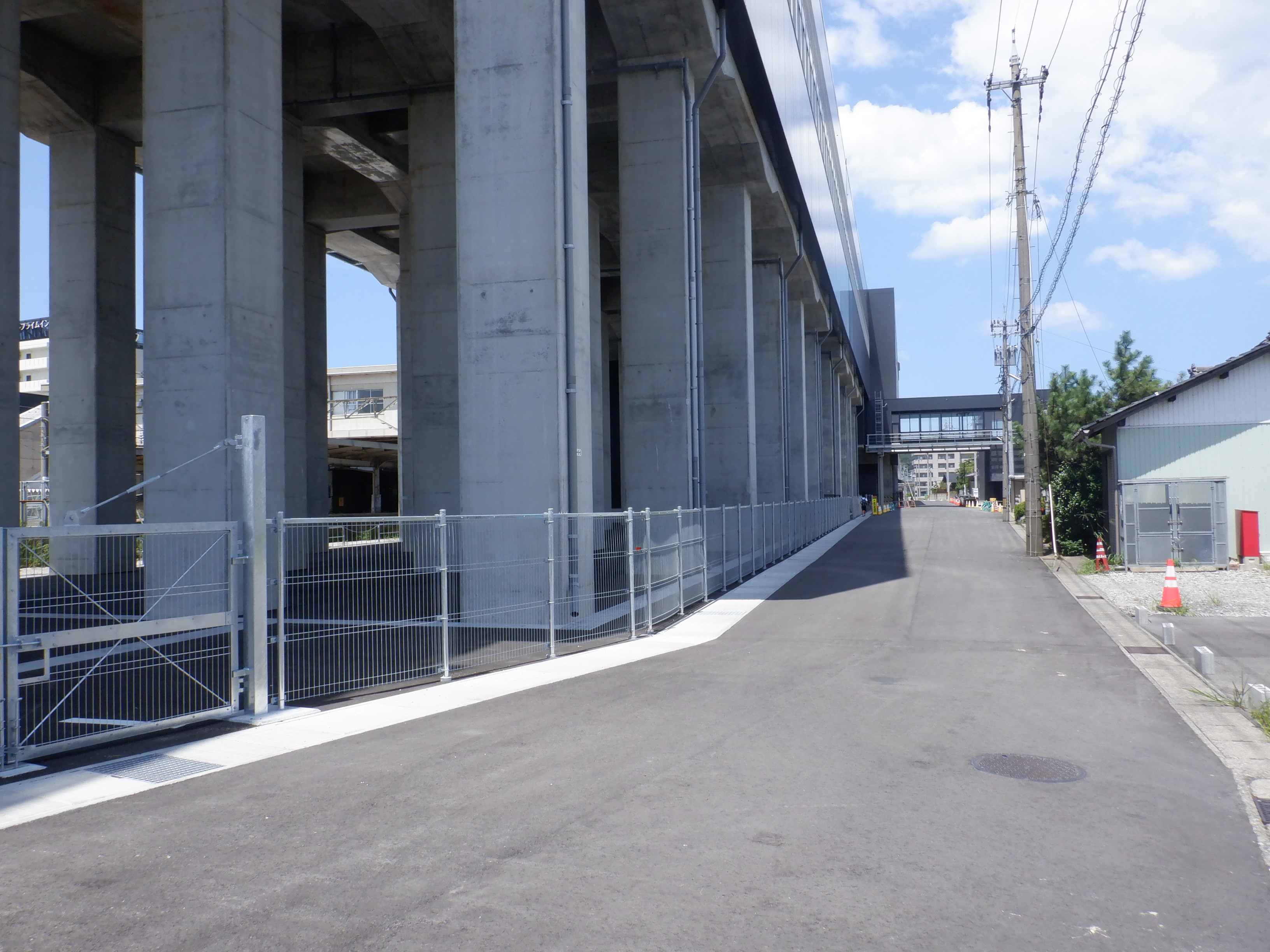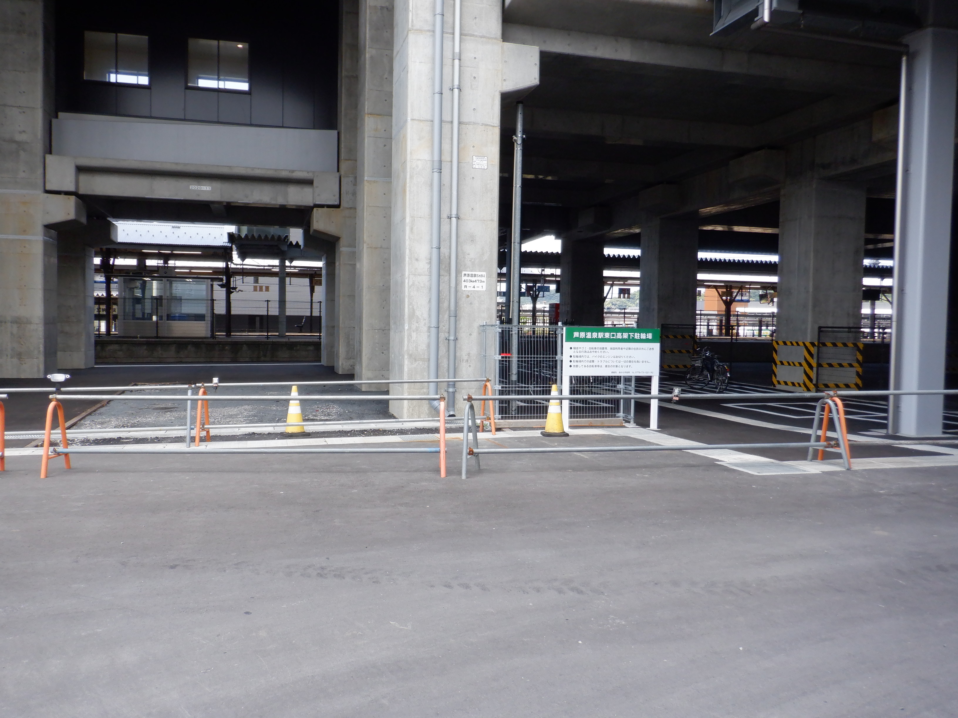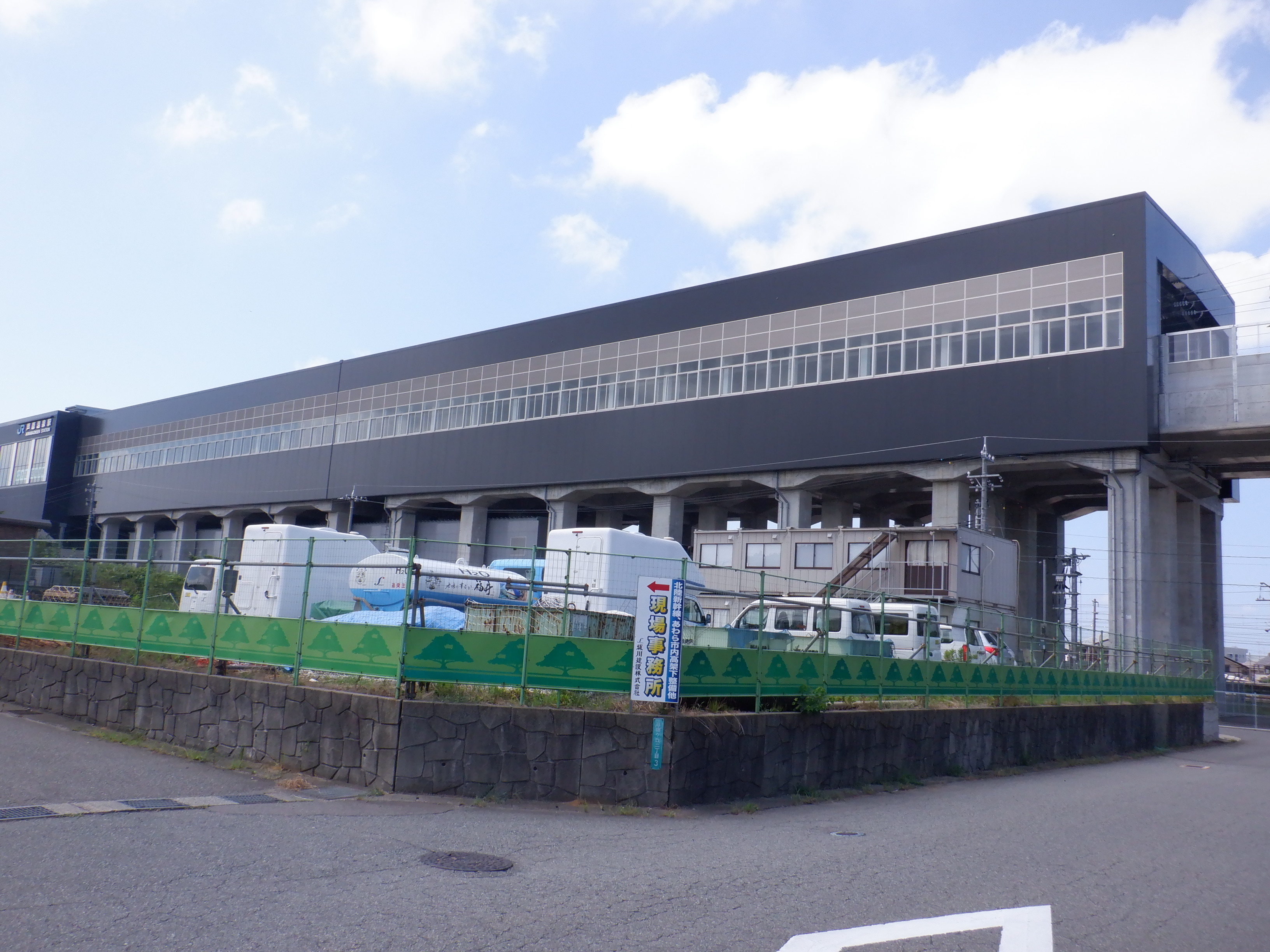 レンタカー屋さんができるところと高架下の駐輪場建設中のところ。
