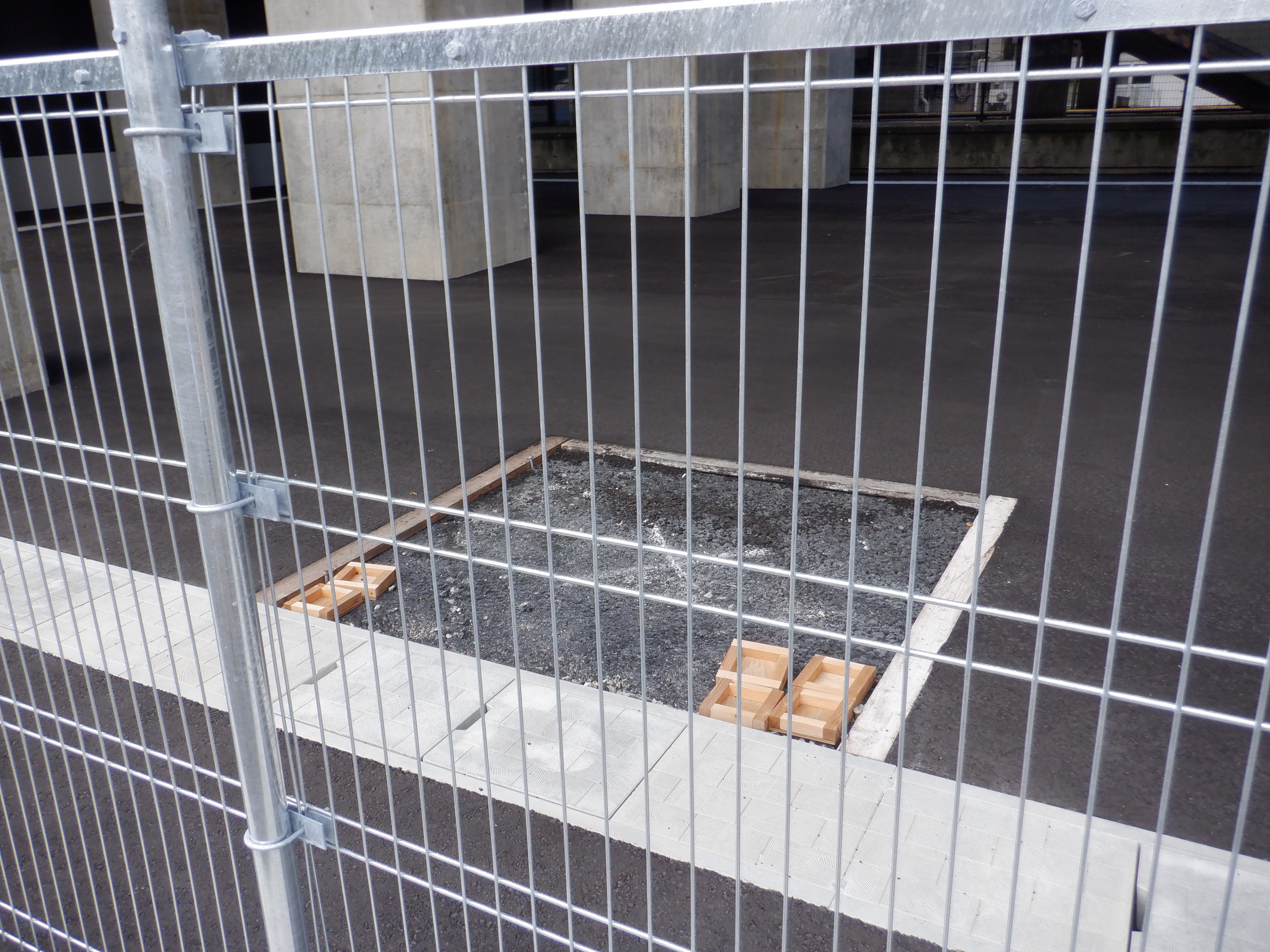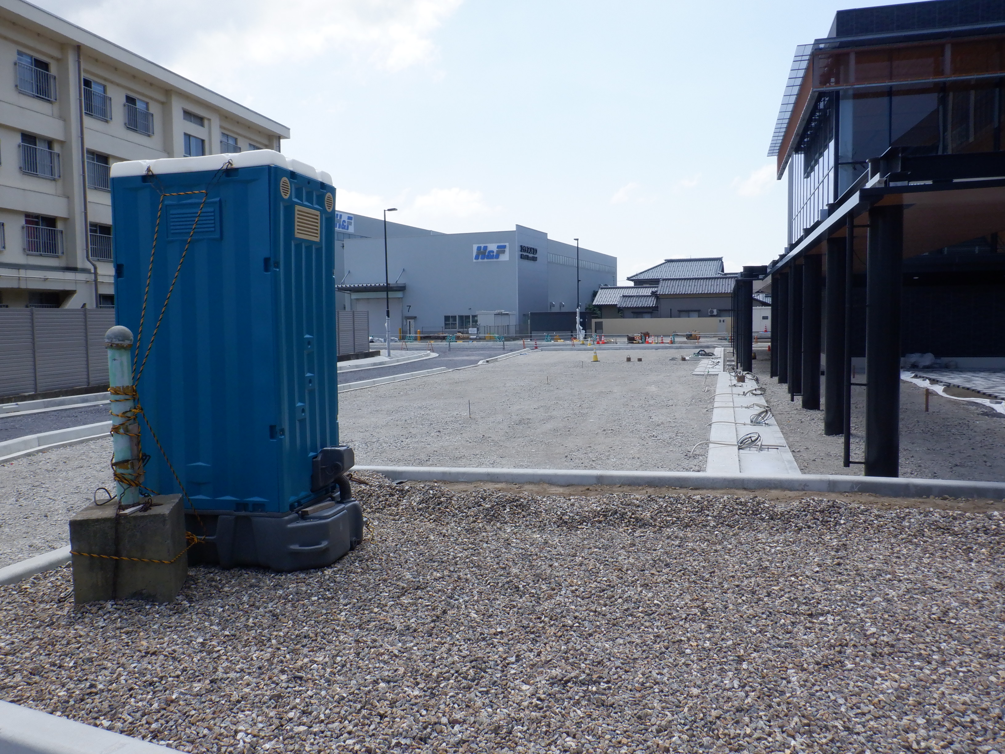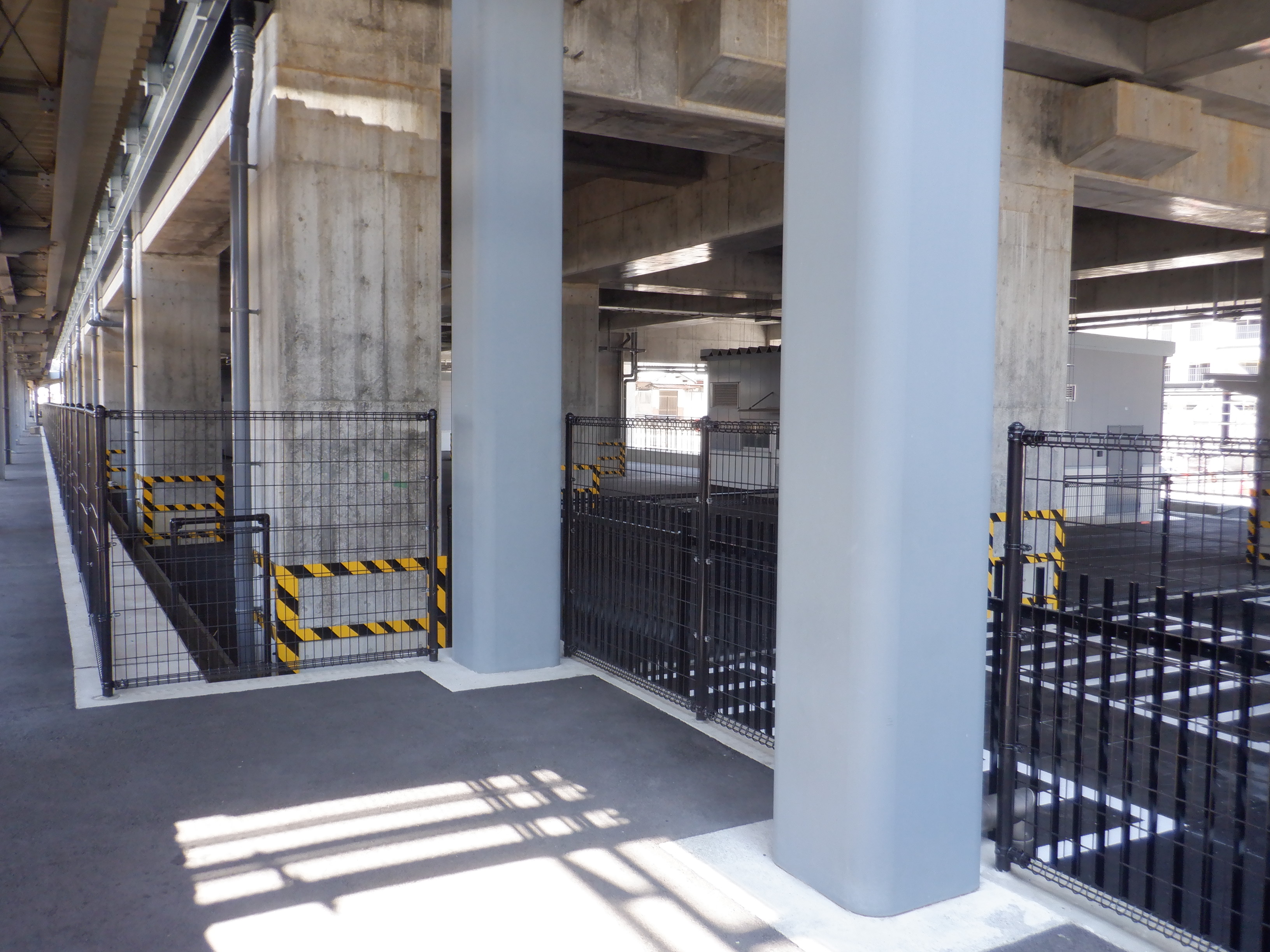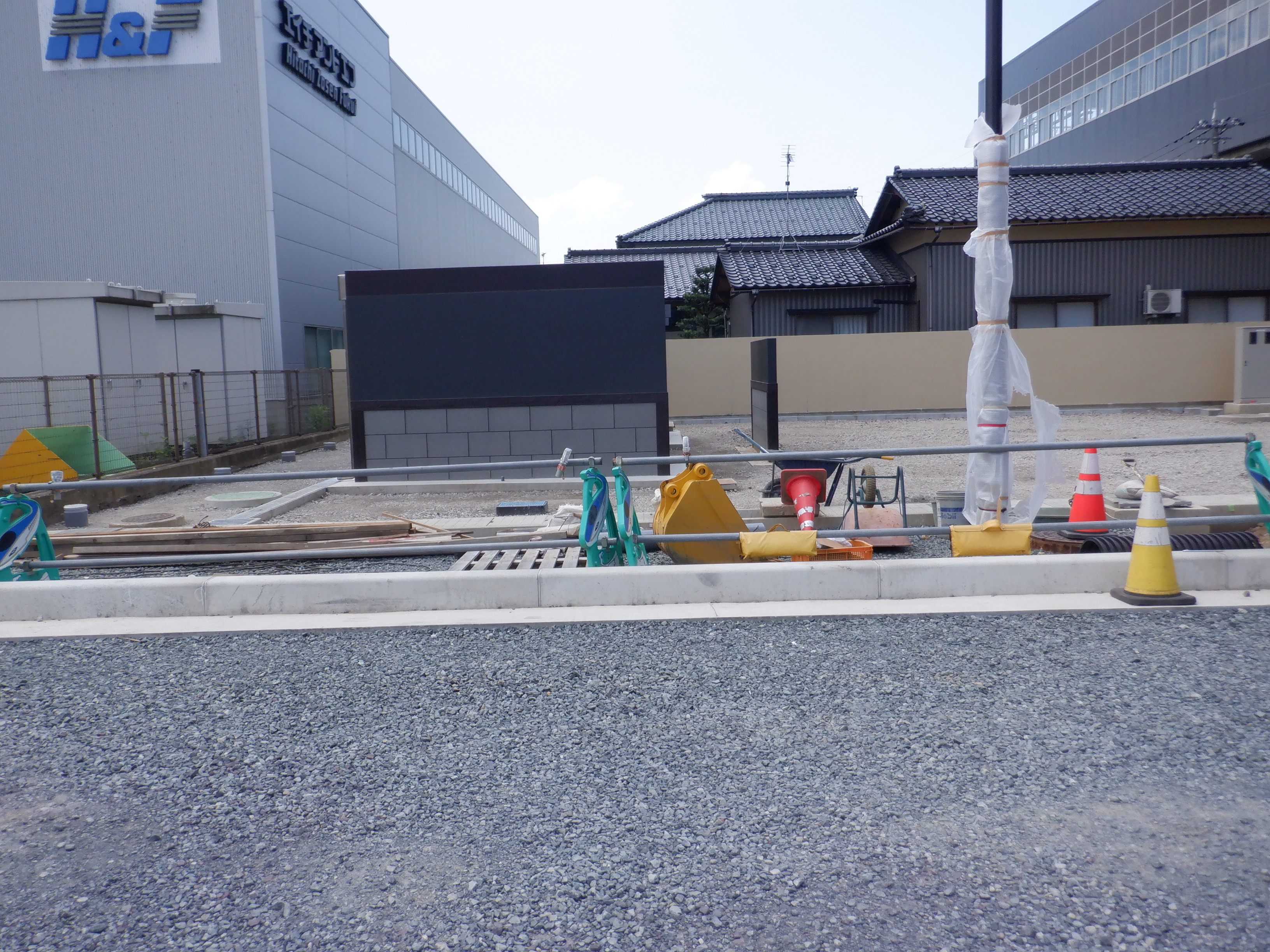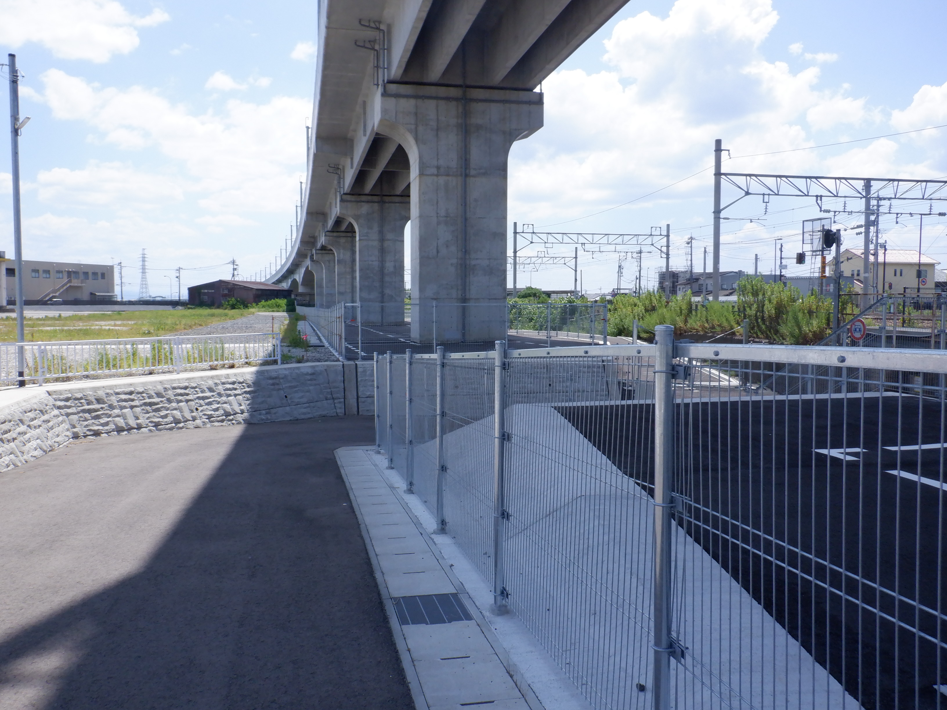 レンタカー屋さんができるところと高架下の駐輪場建設中のところ。