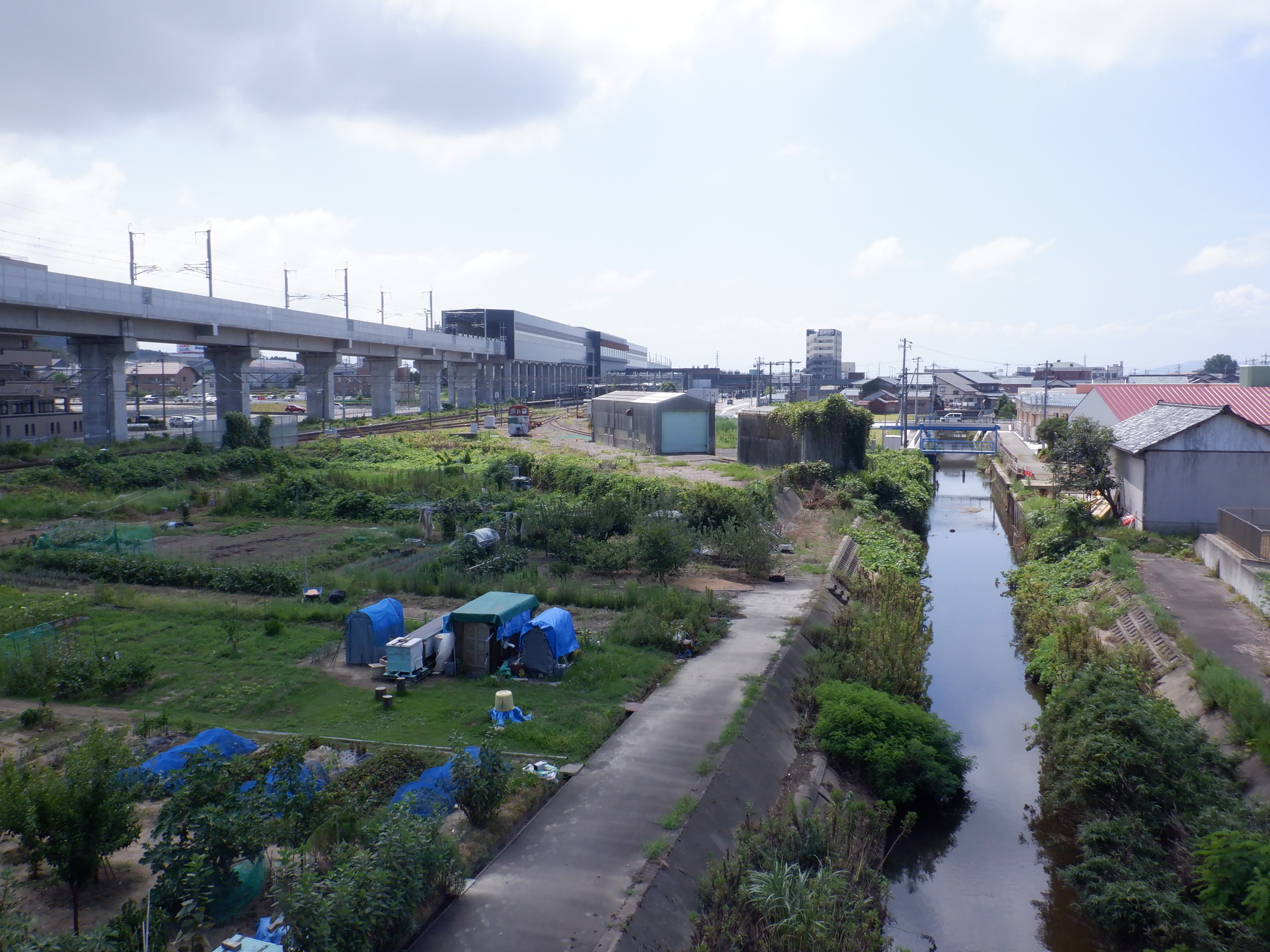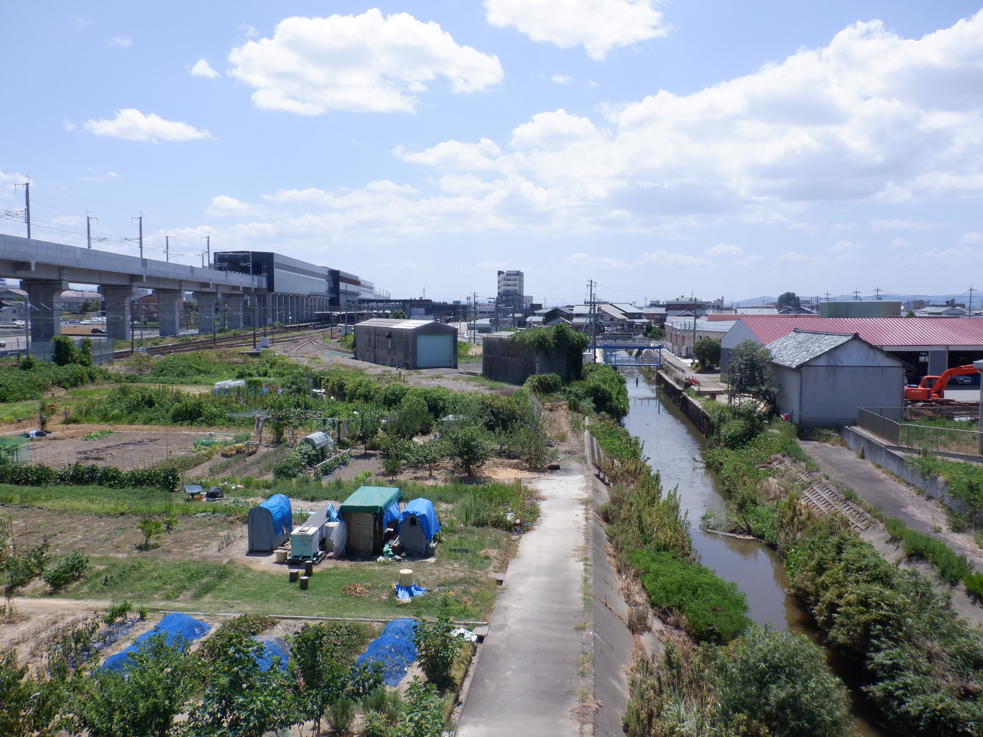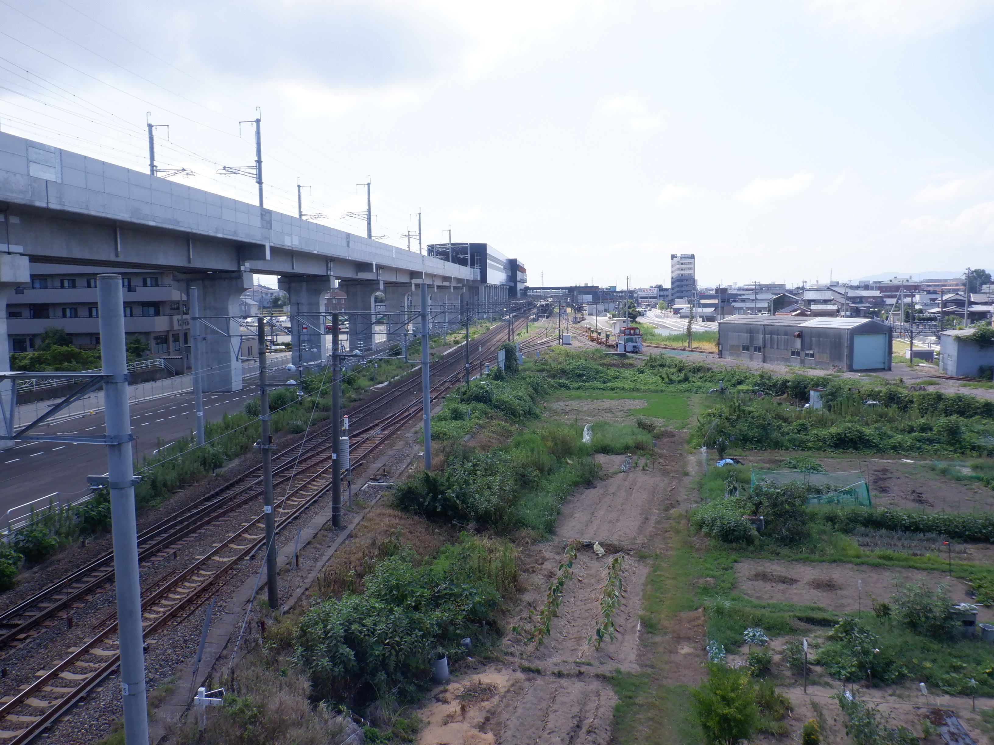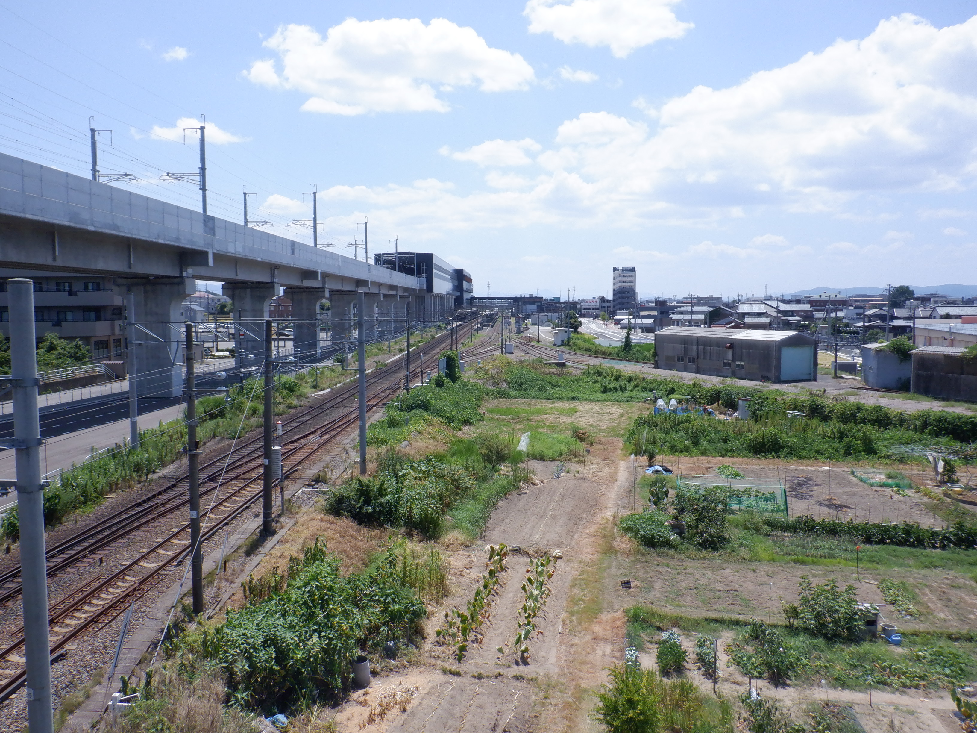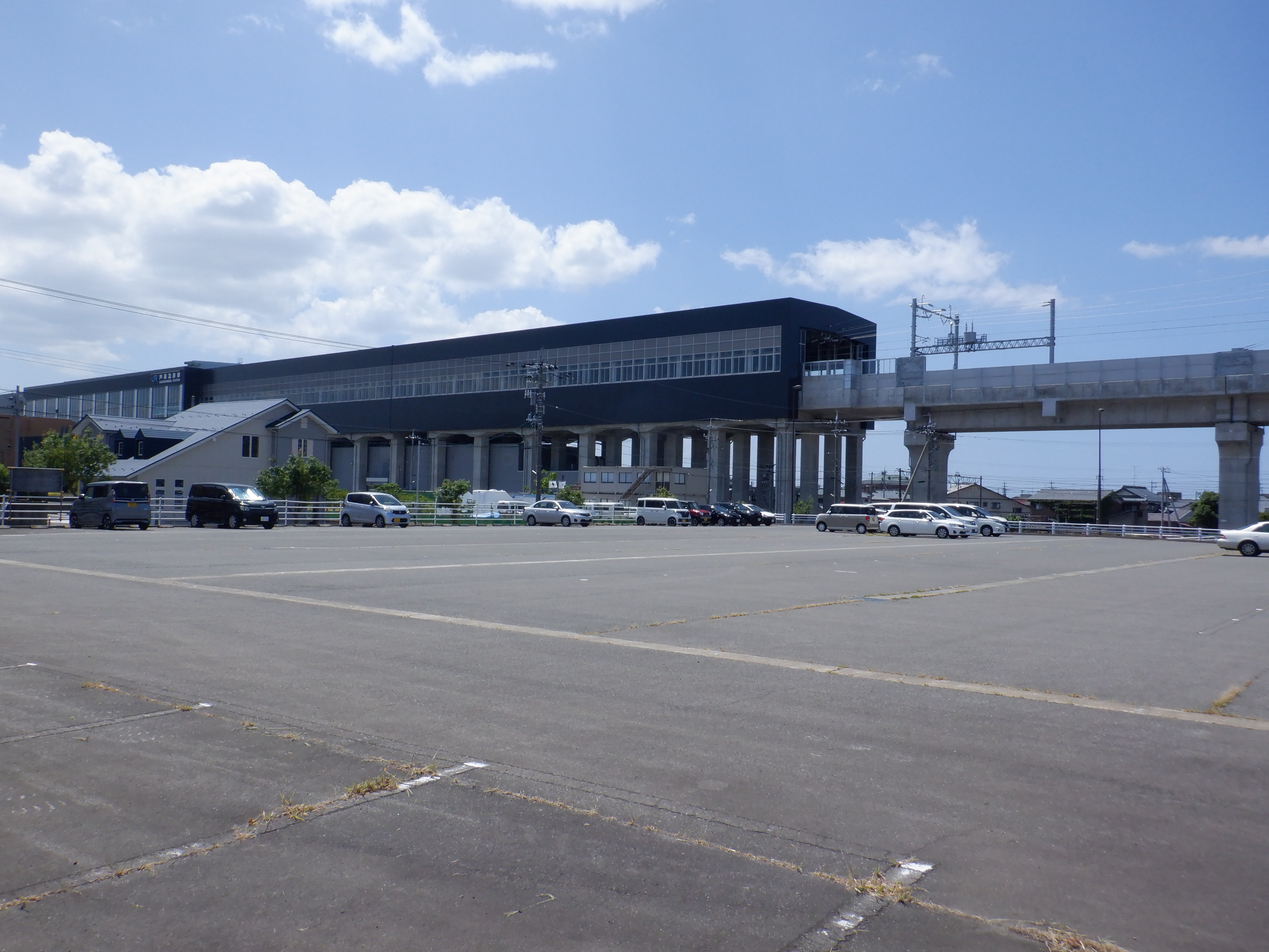 レンタカー屋さんができるところと高架下の駐輪場建設中のところ。