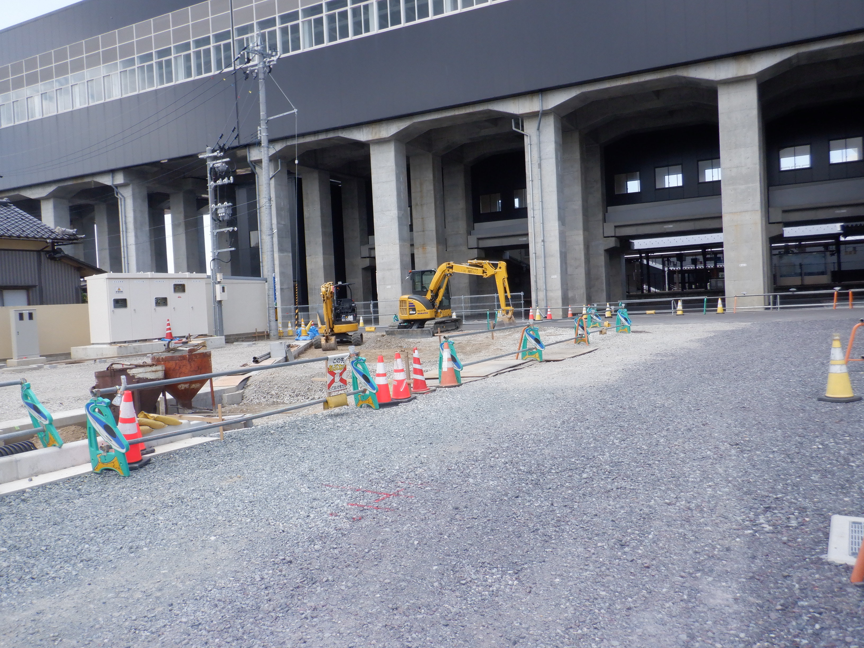 2023年8月の3回分の内、初めの2回分です。この間は東口の交通広場の整備が目立って進んでいました。