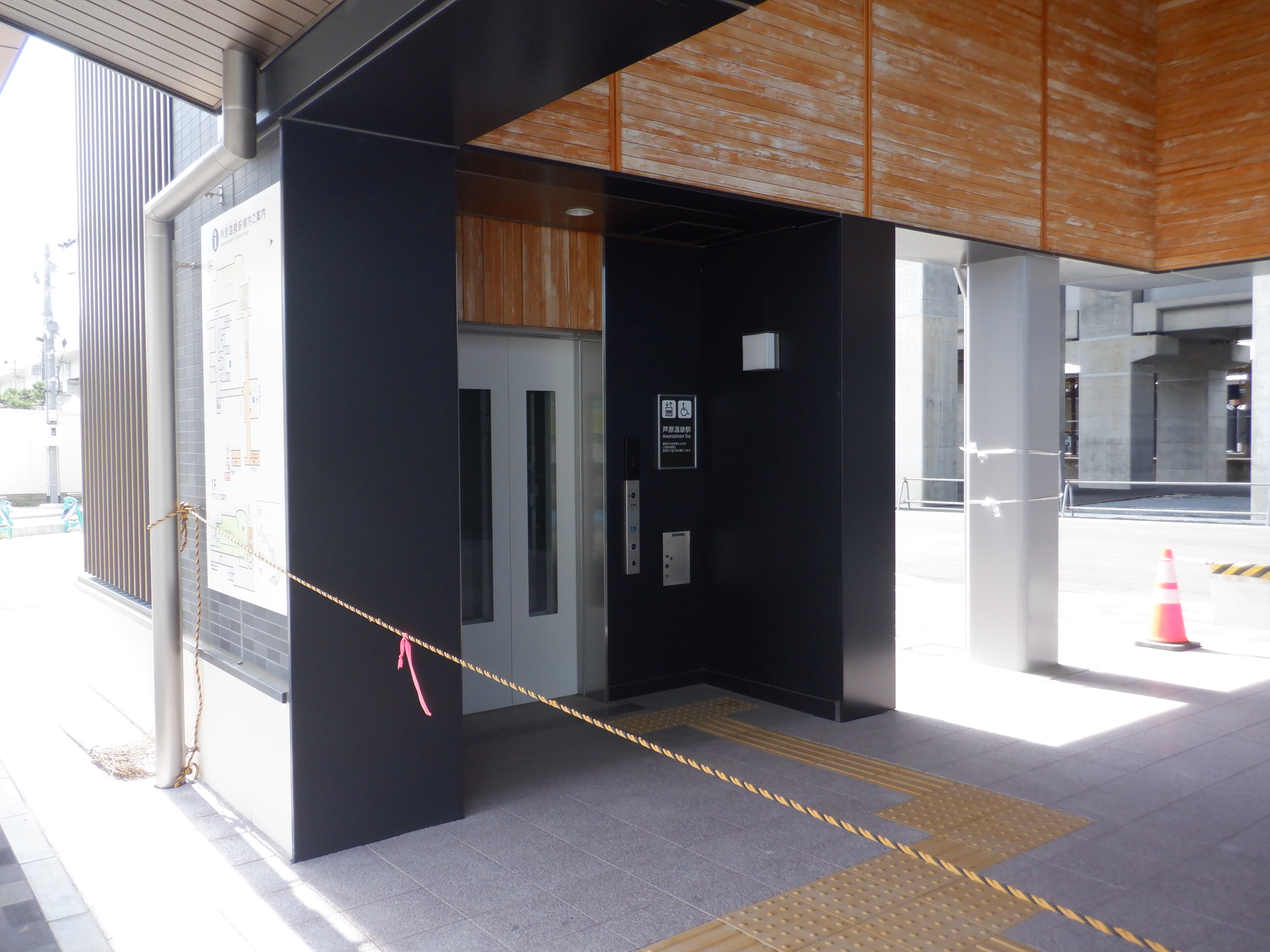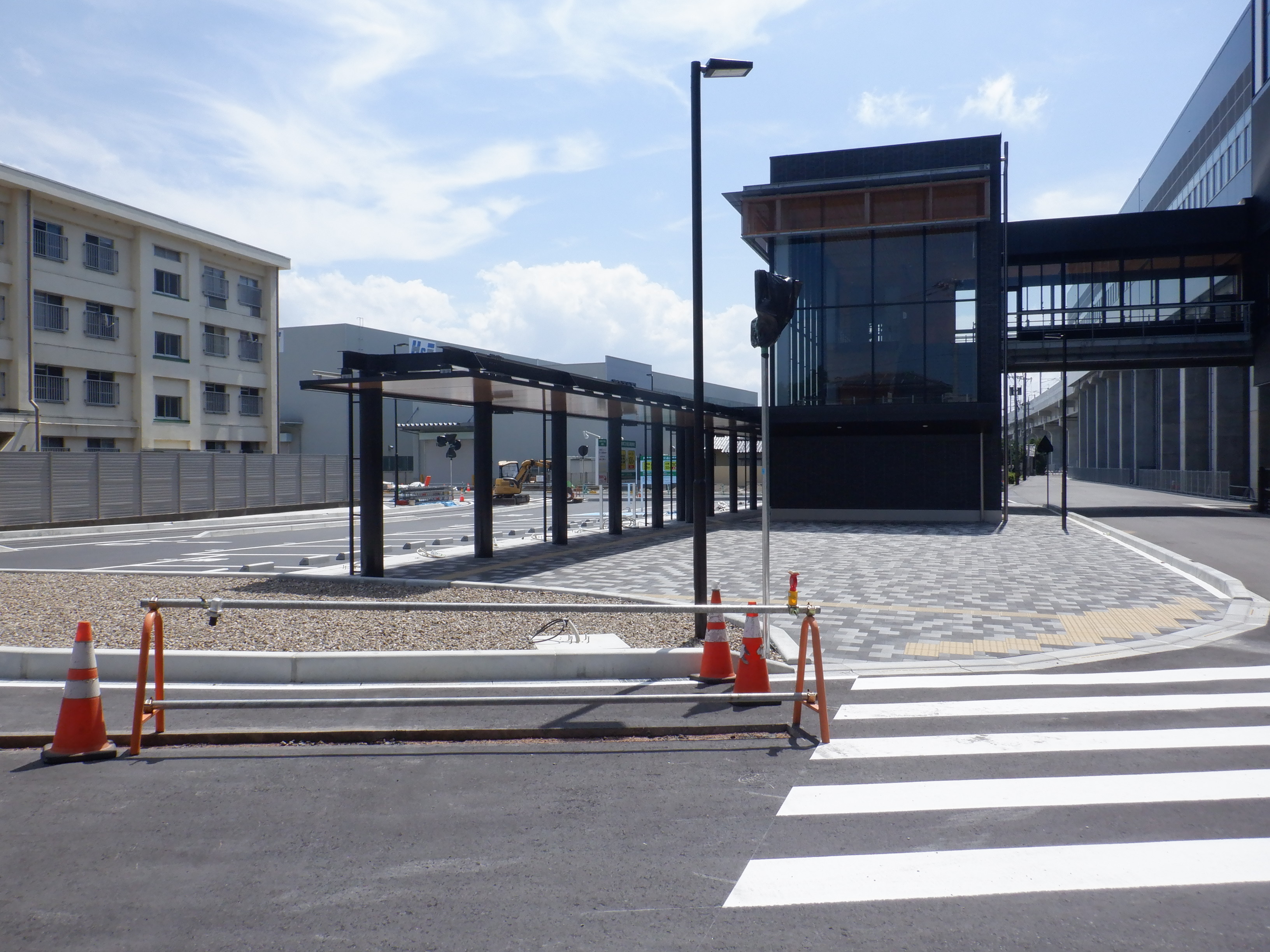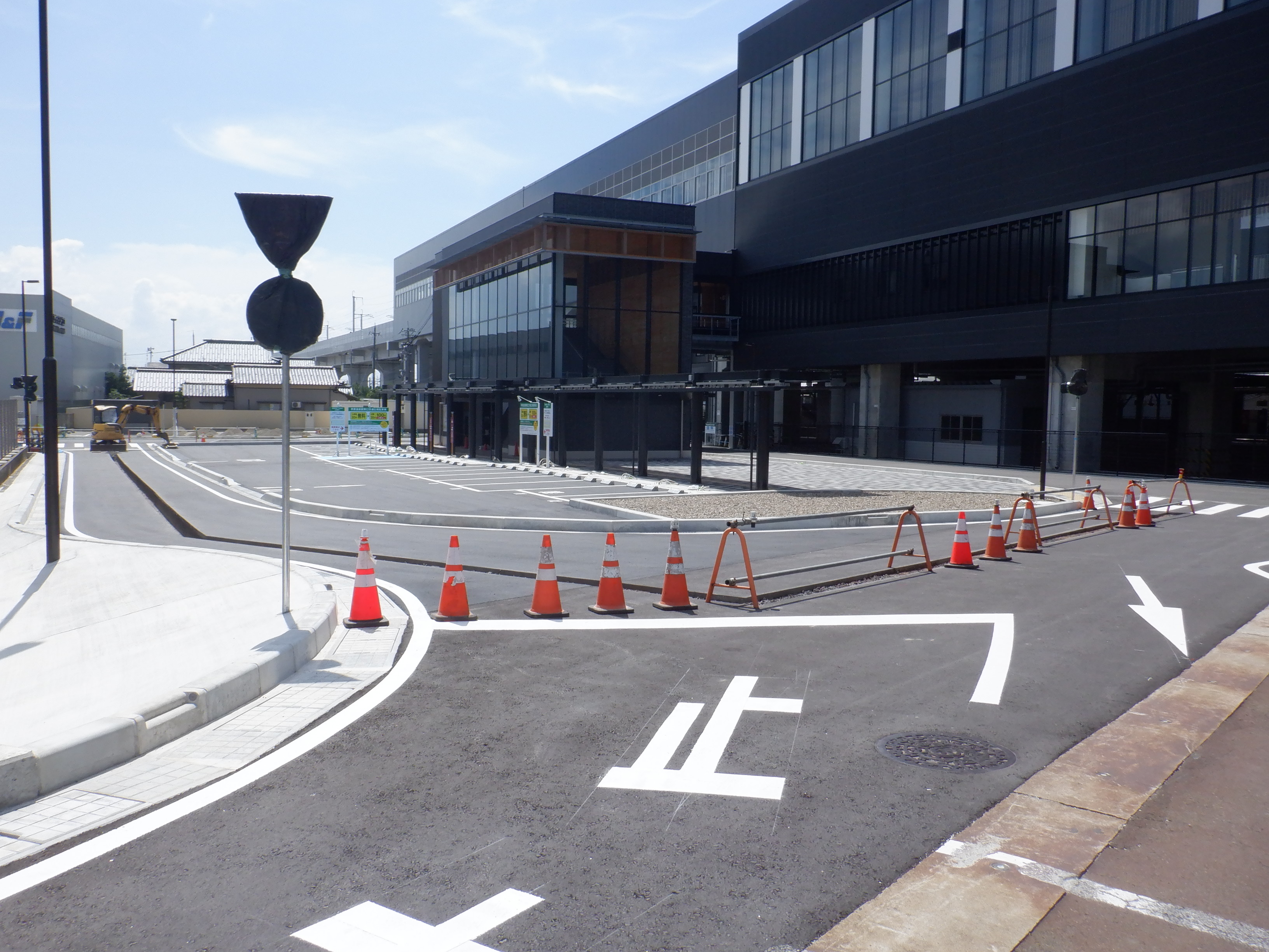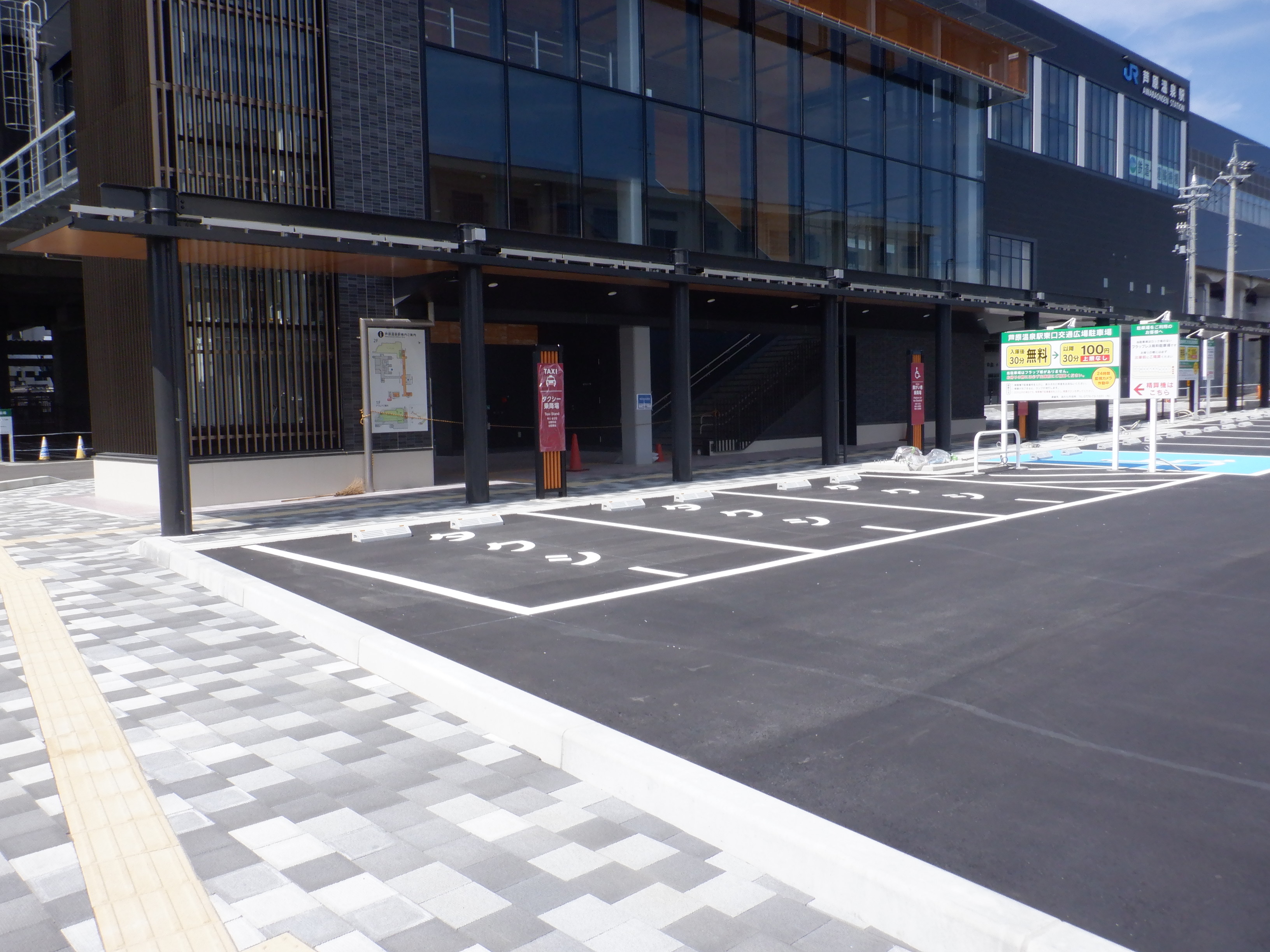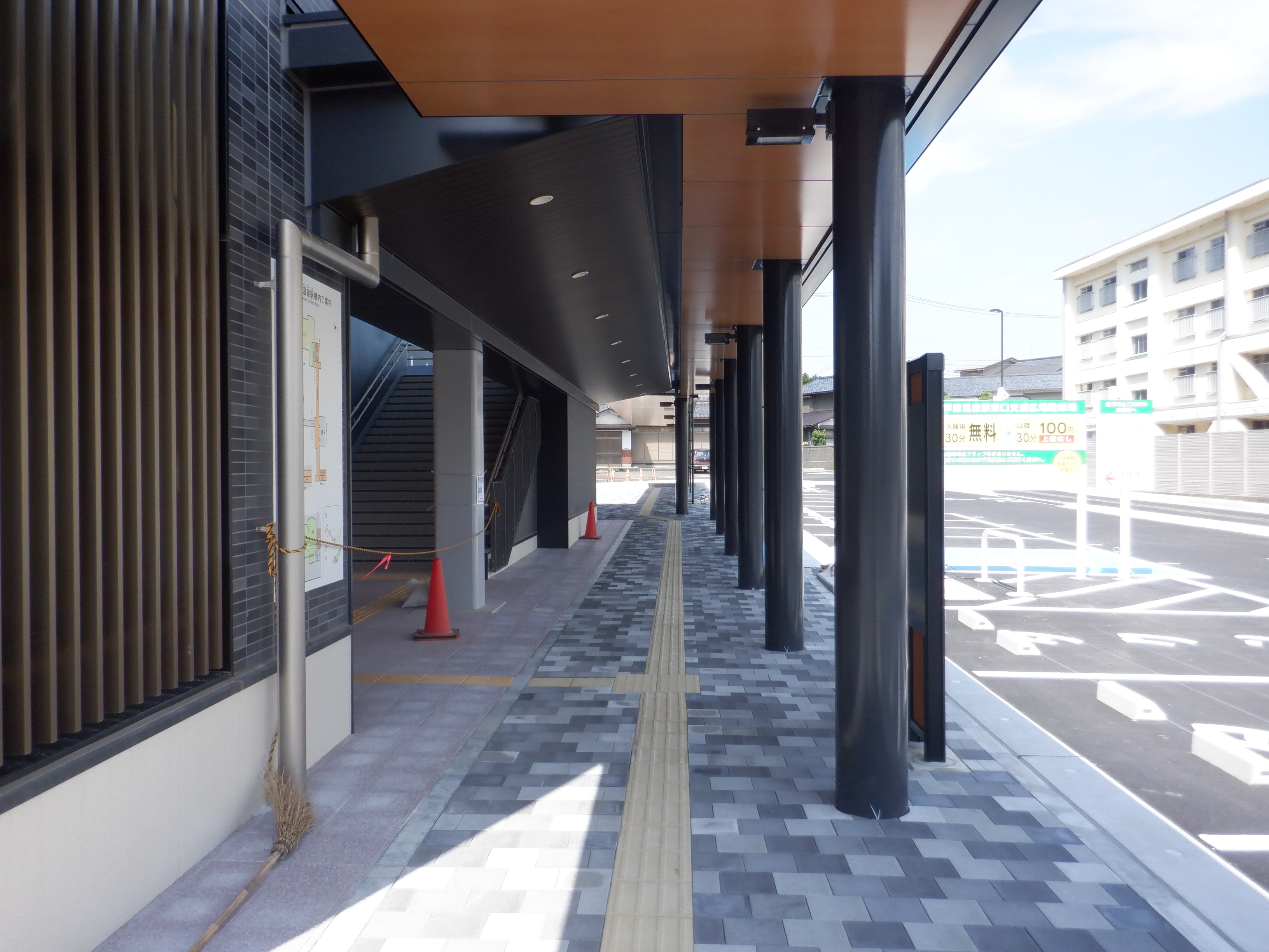 今回より東口の自由通路出入口の前が歩道として供用開始していました。