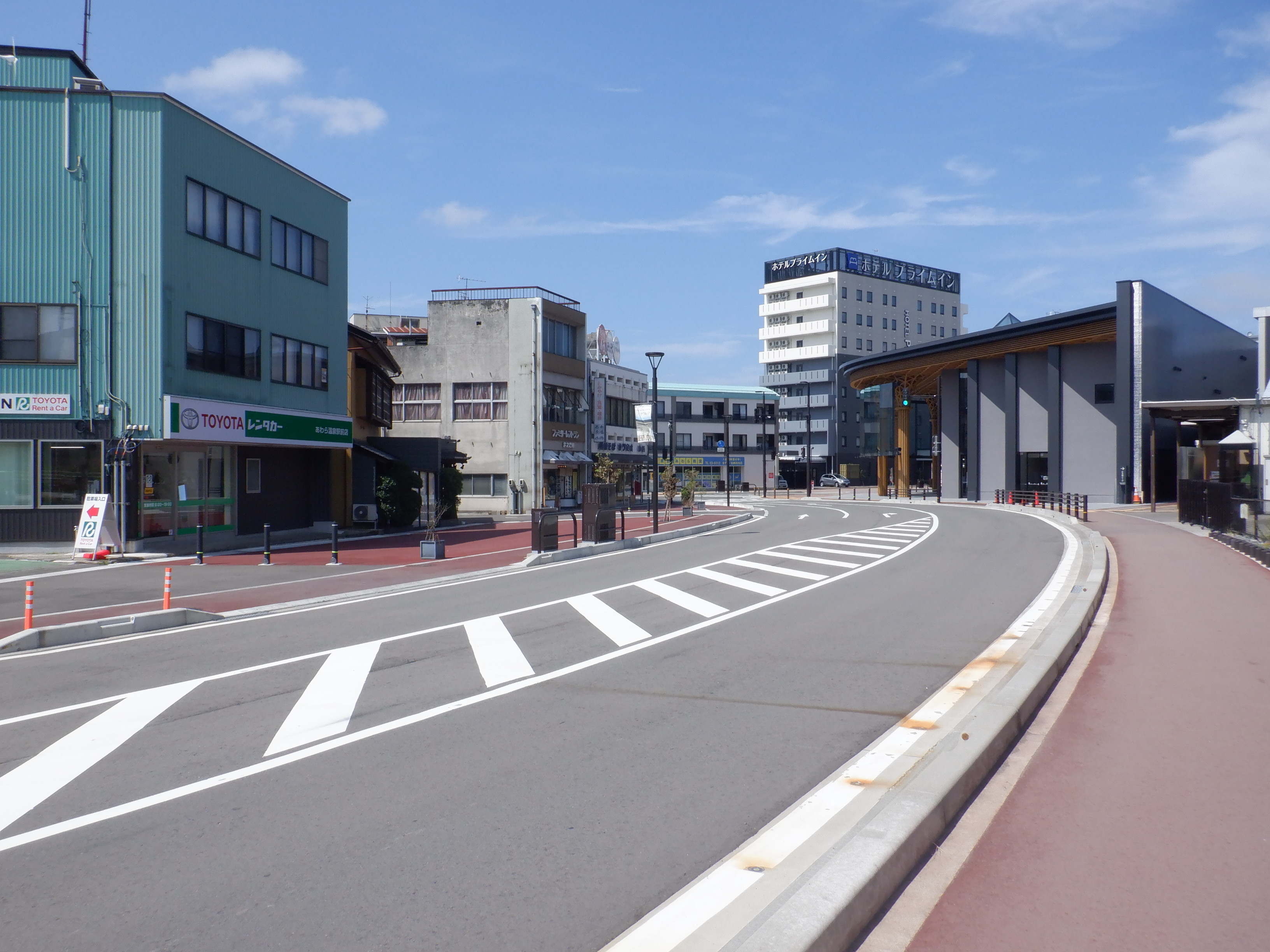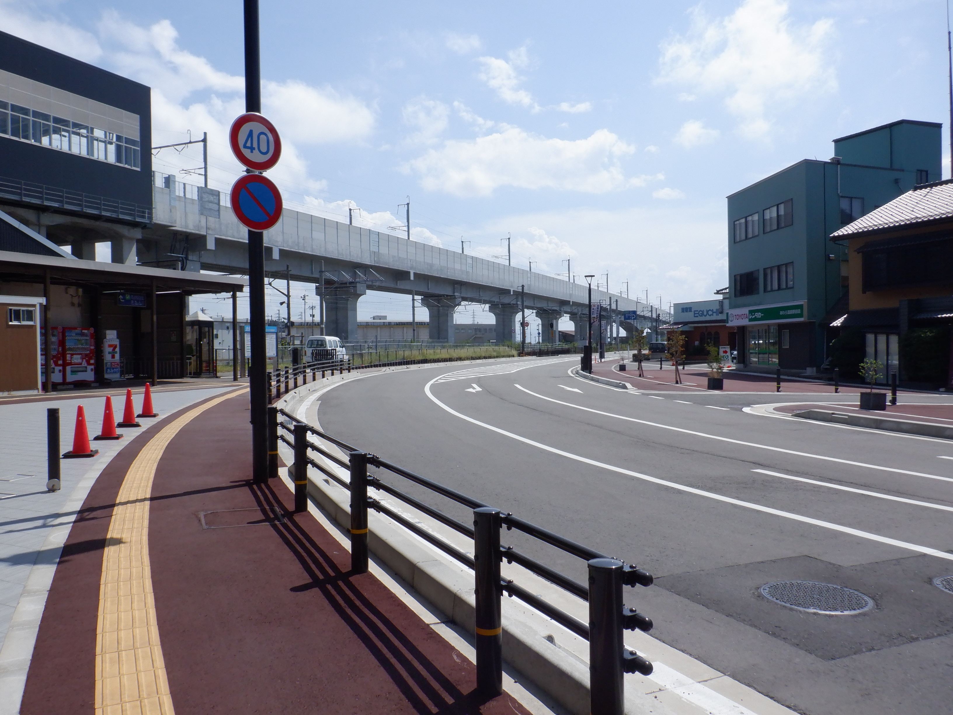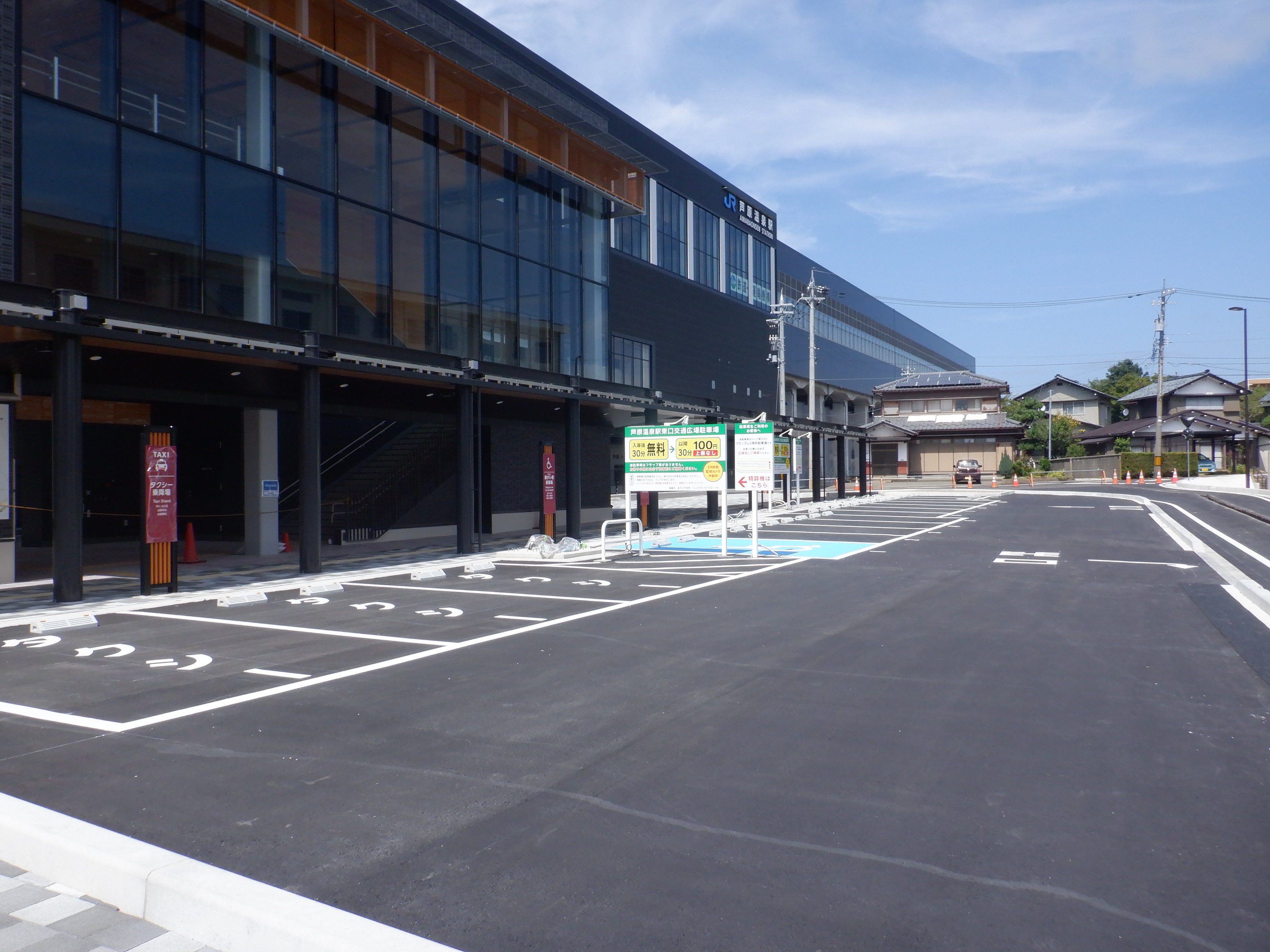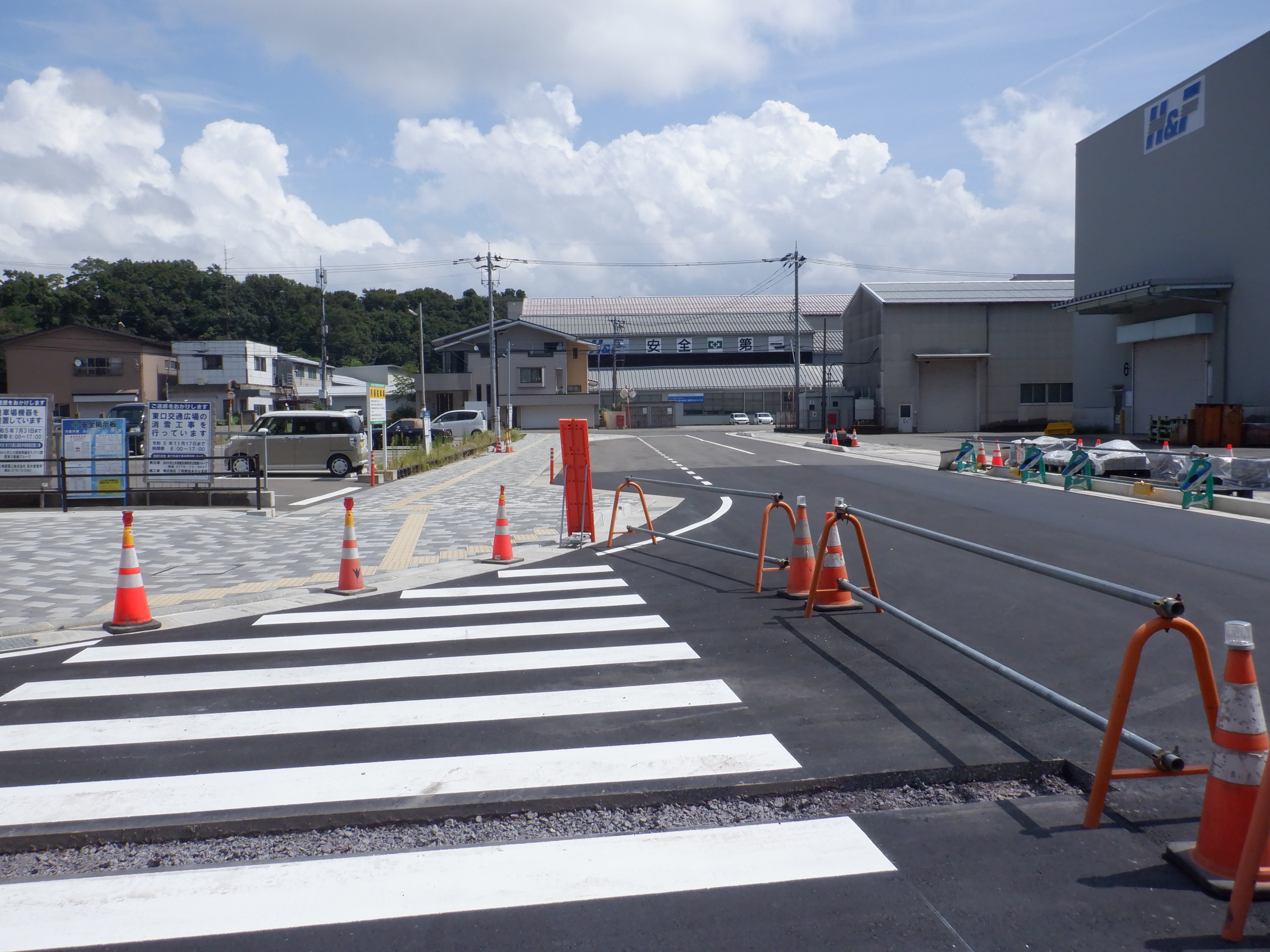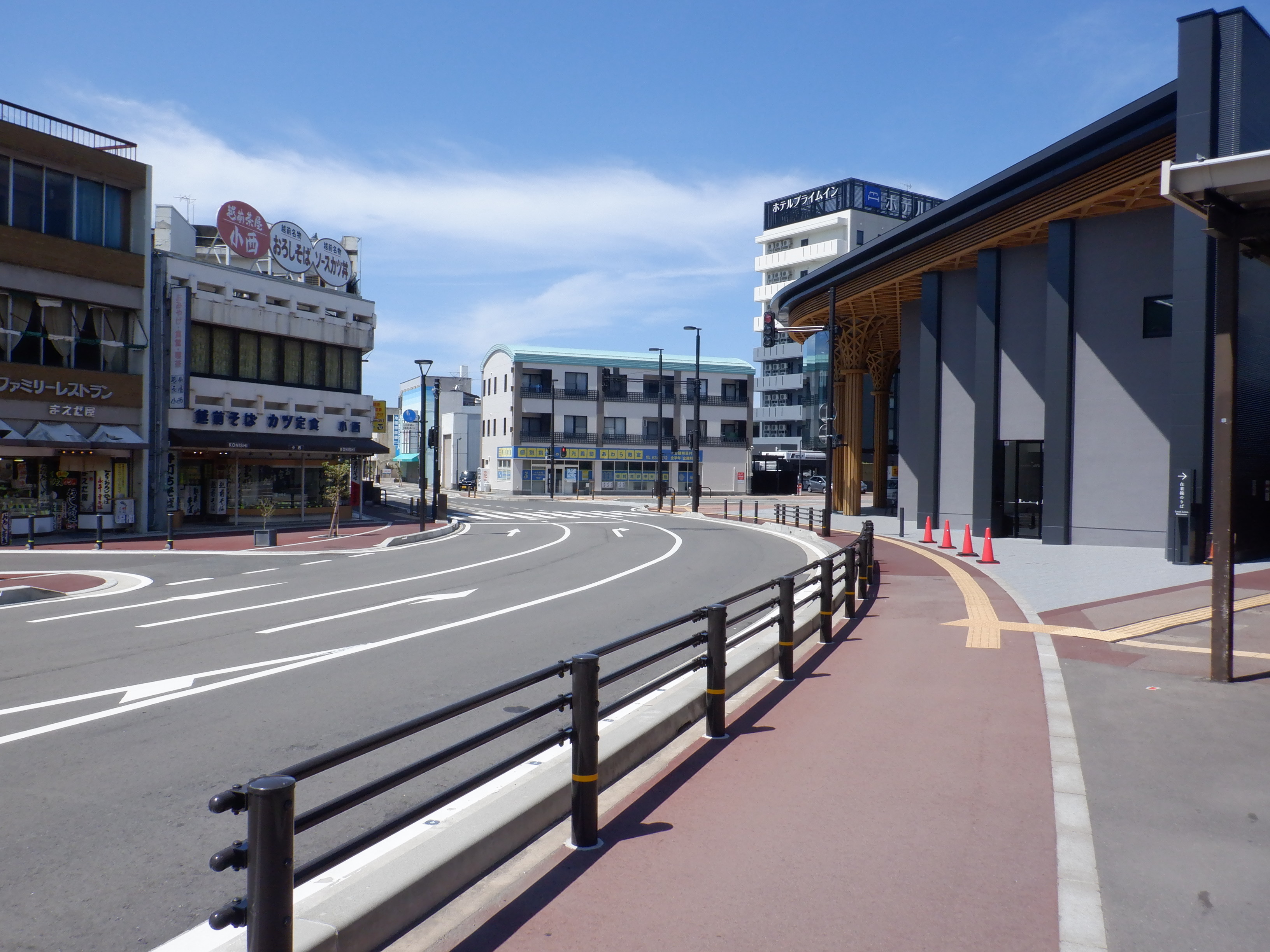 今回より東口の自由通路出入口の前が歩道として供用開始していました。