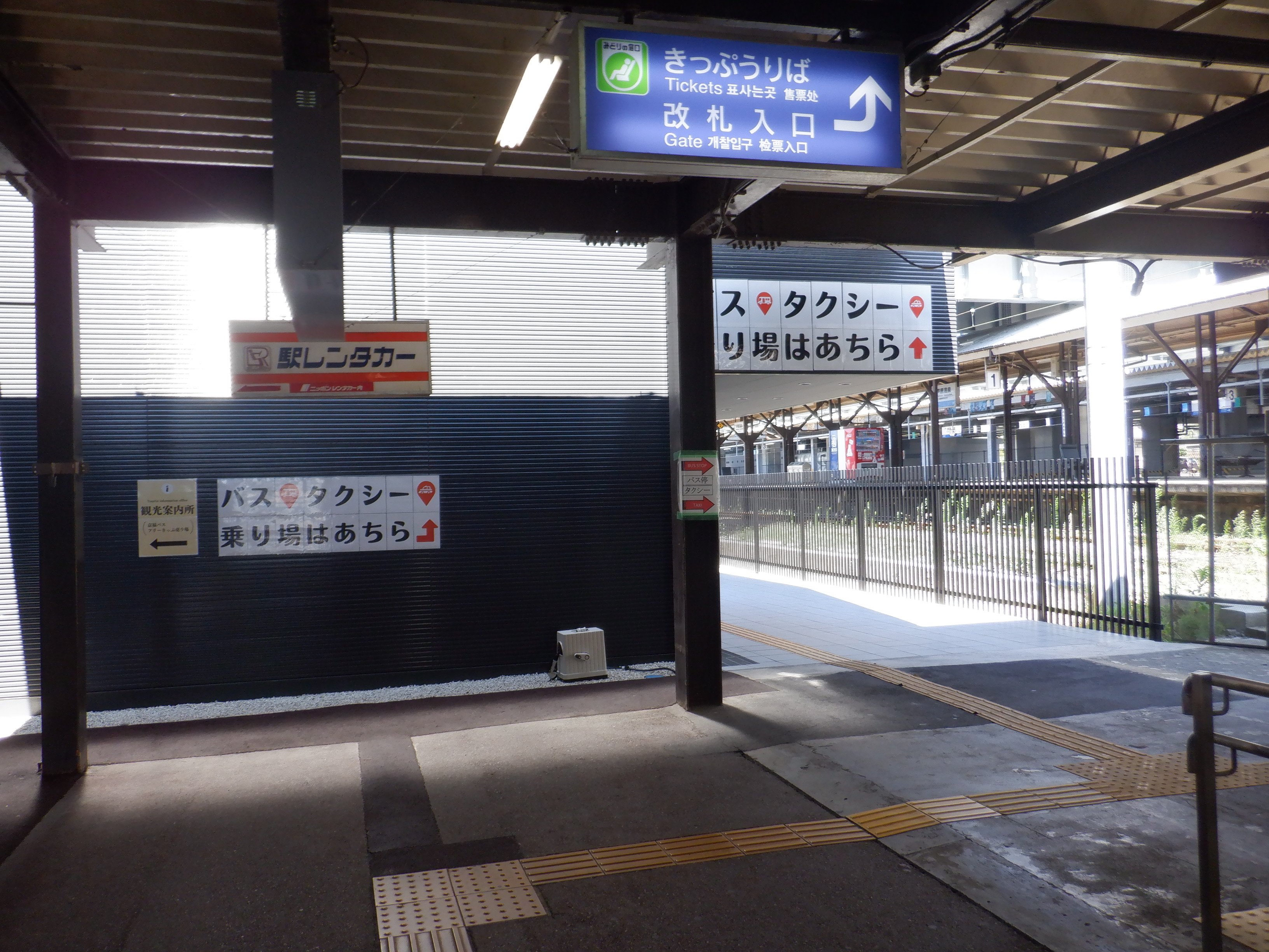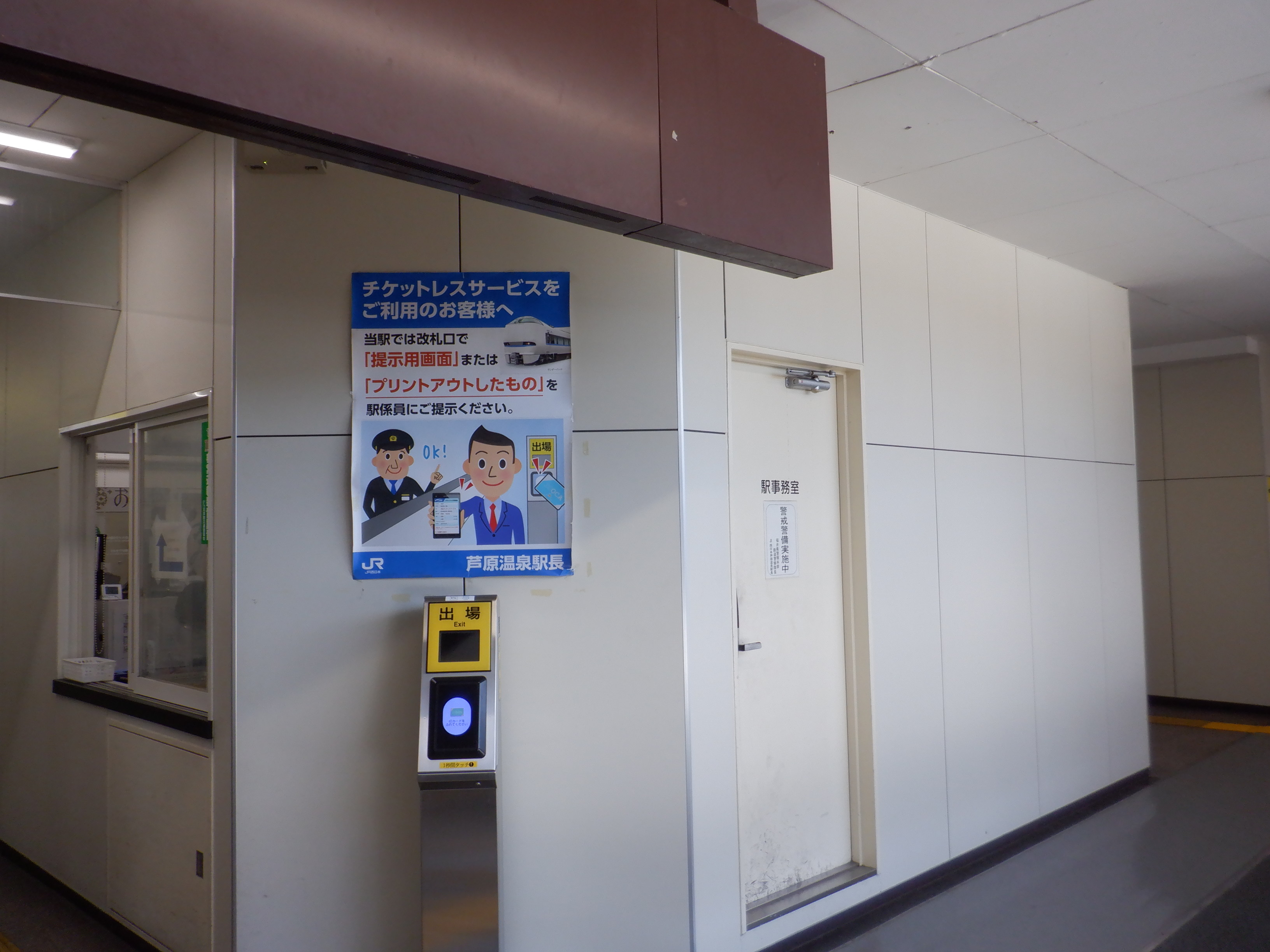 ホームから上がってきて改札口の前。チケットレス特急券はこの駅は画面を見せることになっています。