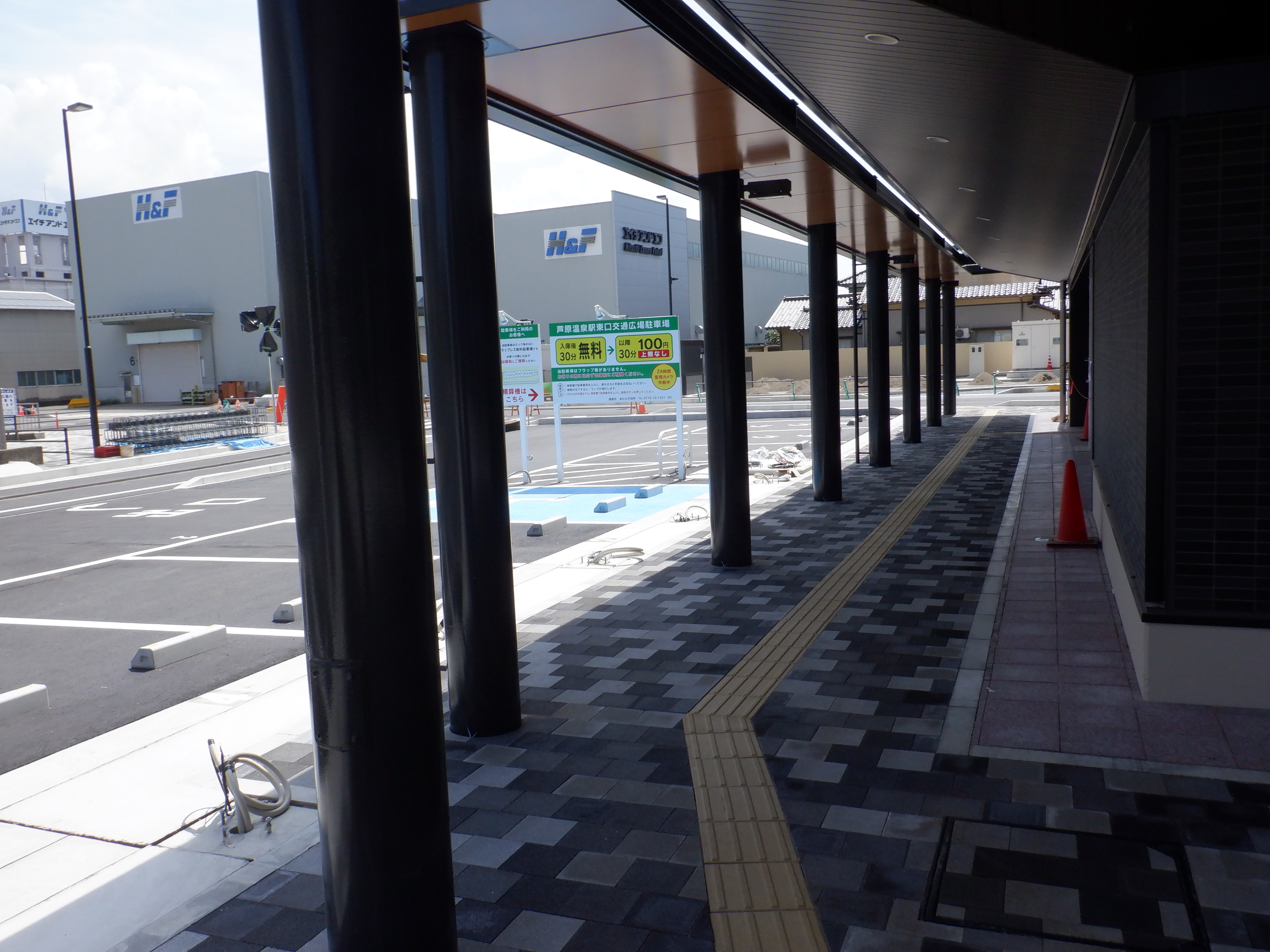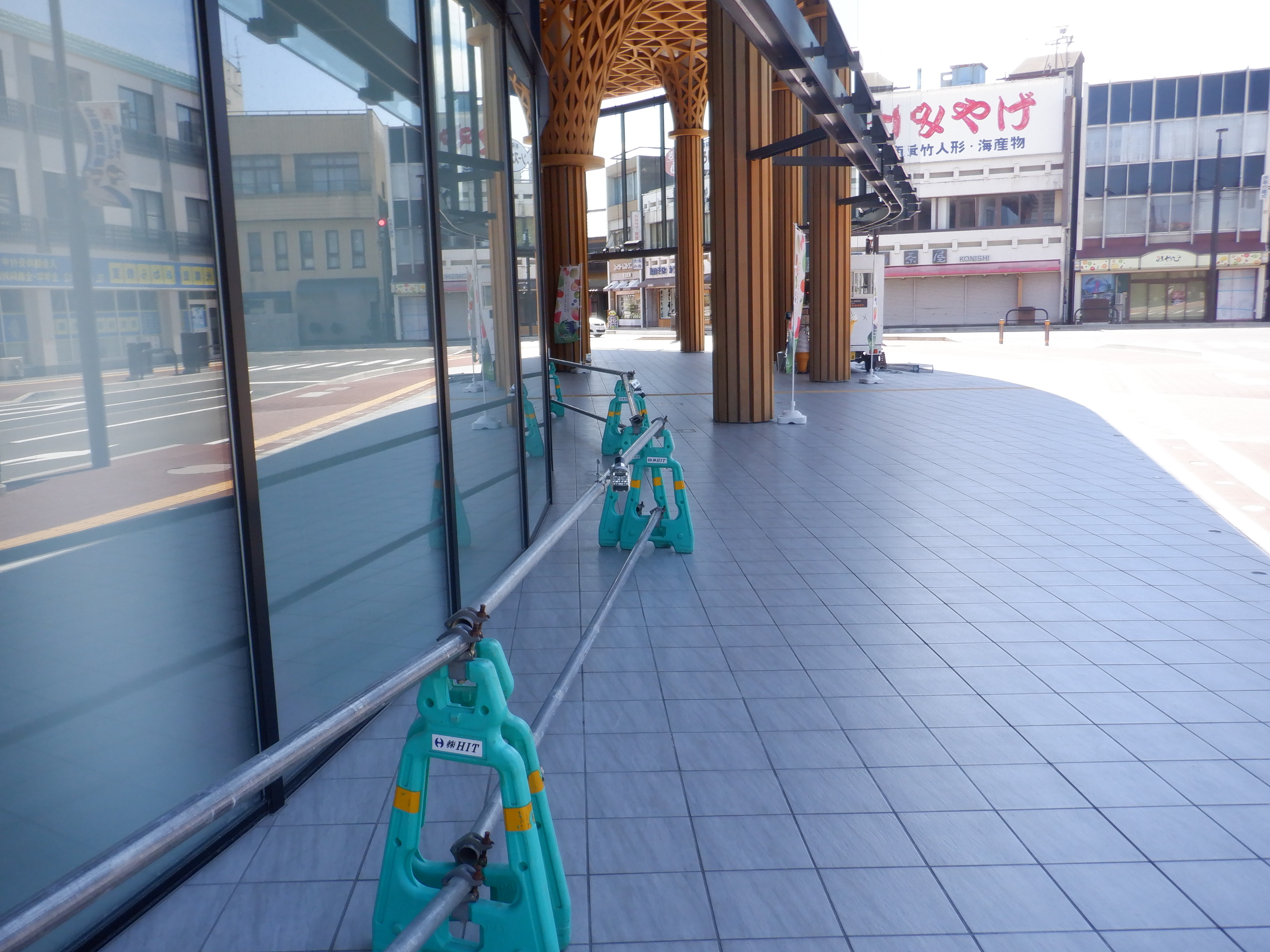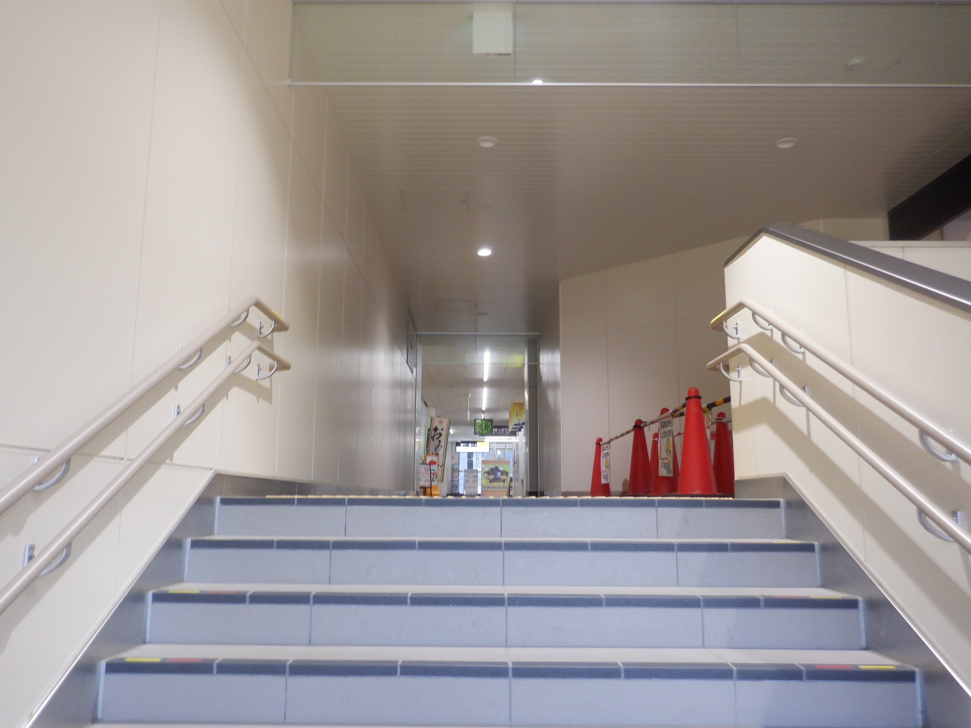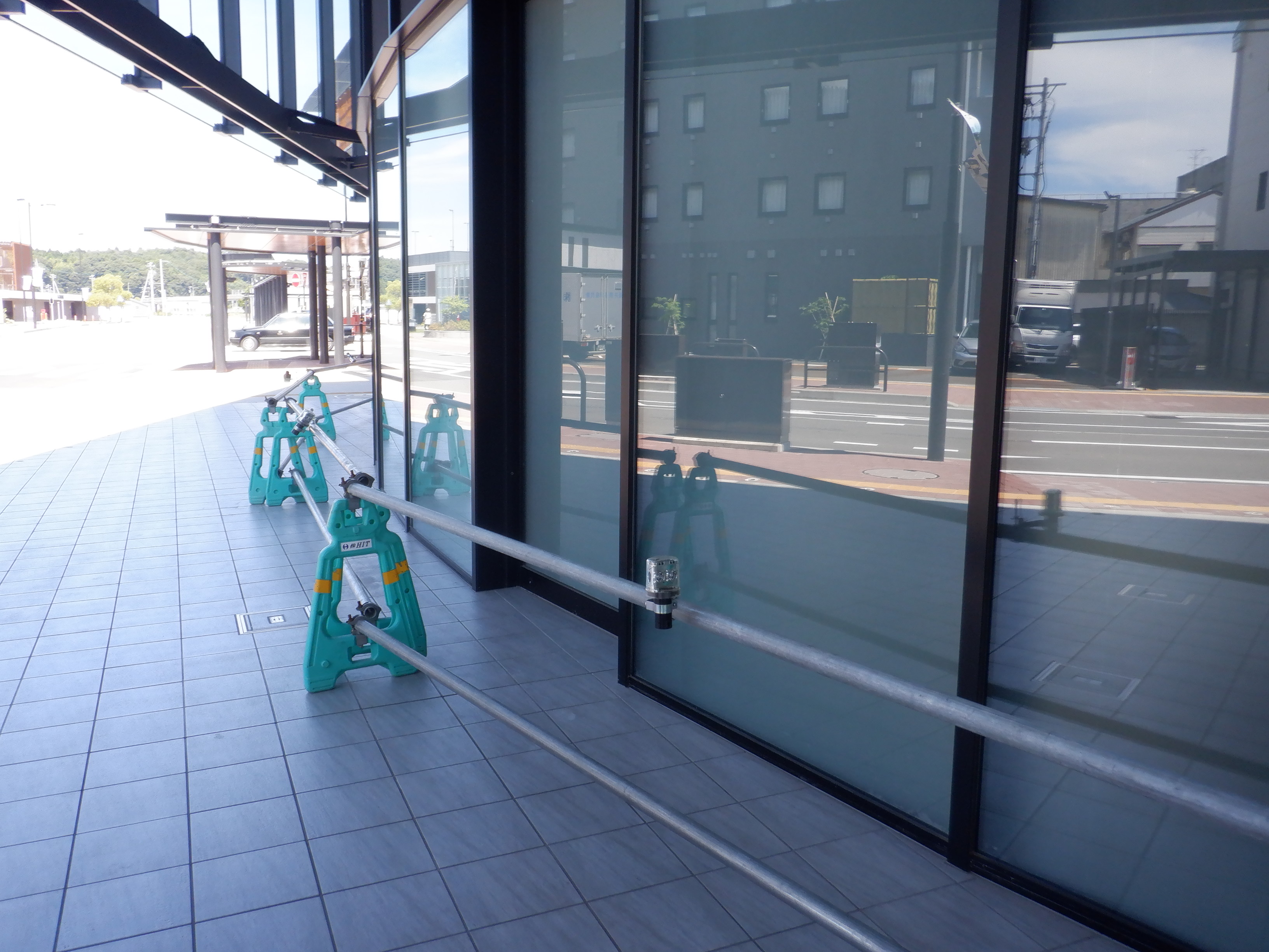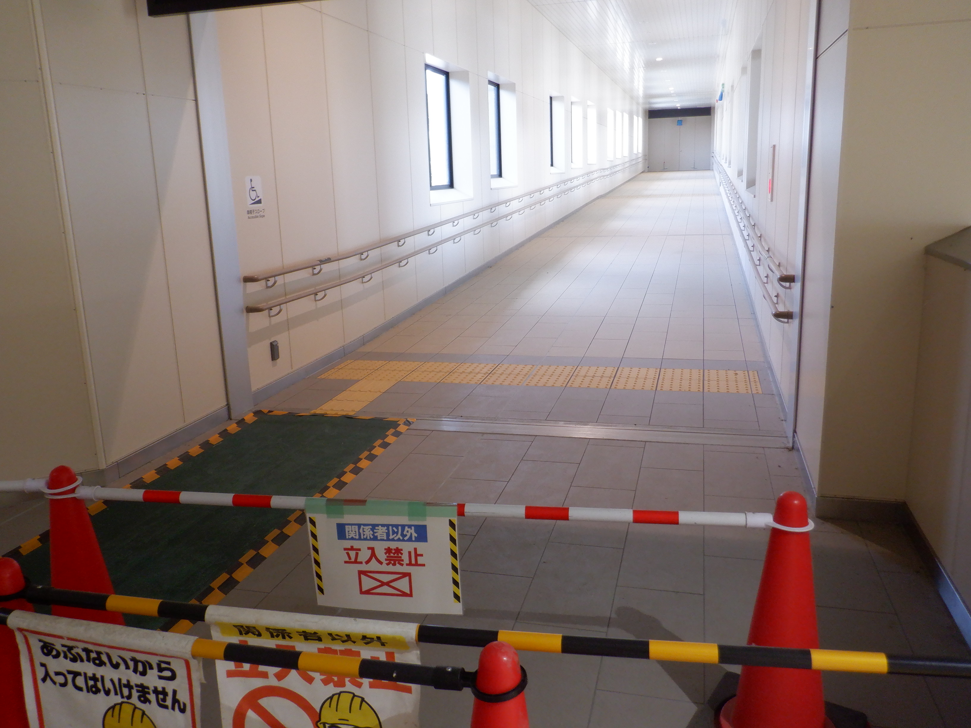 今回より東口側の自由通路出入口の前が歩道として通ることができるようになりました。