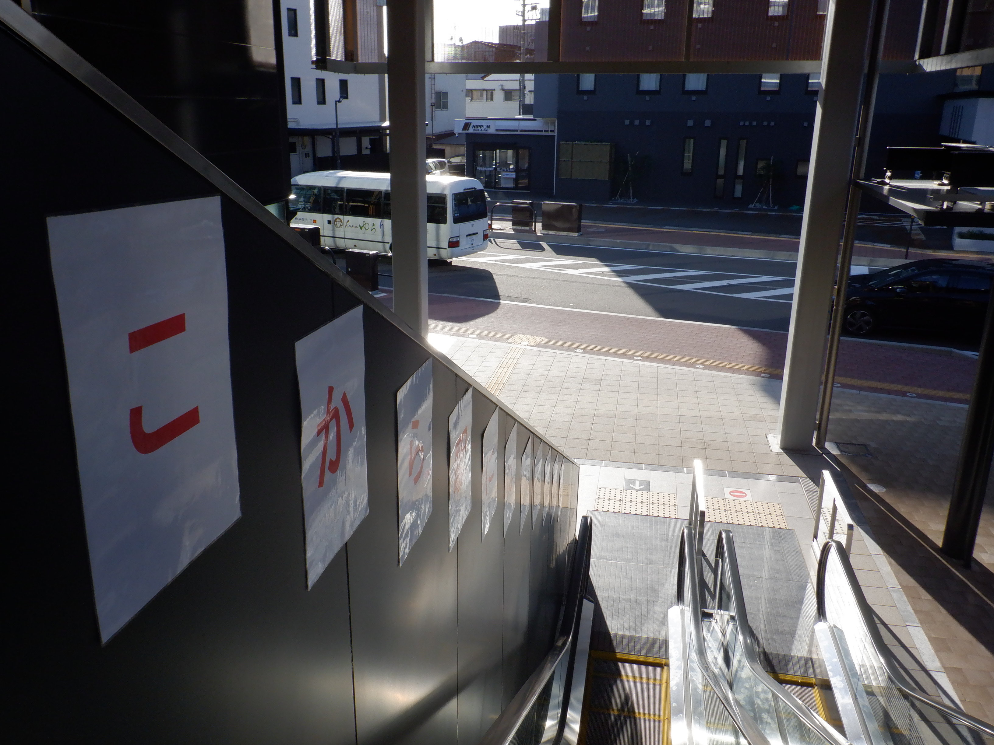 エスカレーターで西口へ下りていきます。