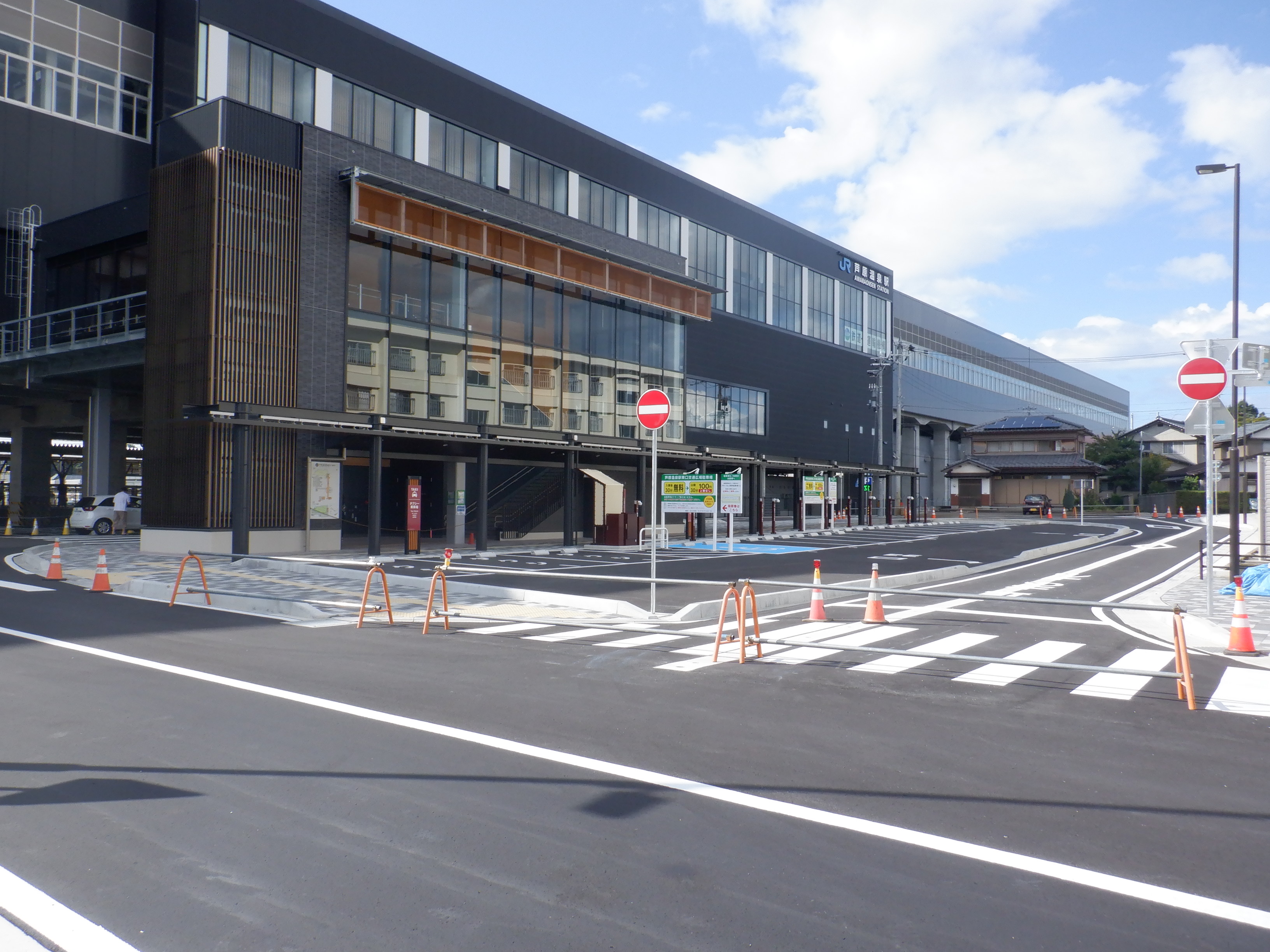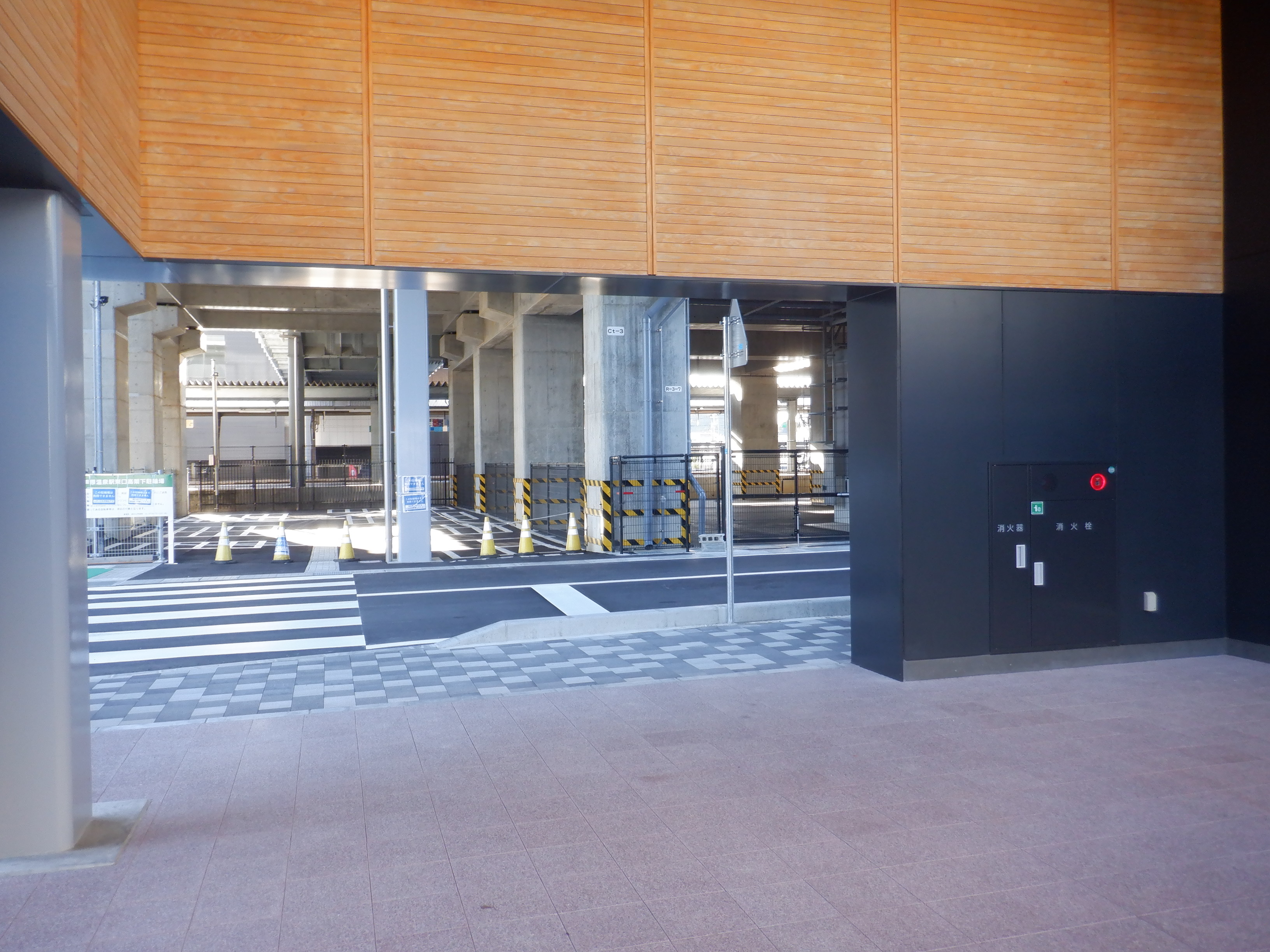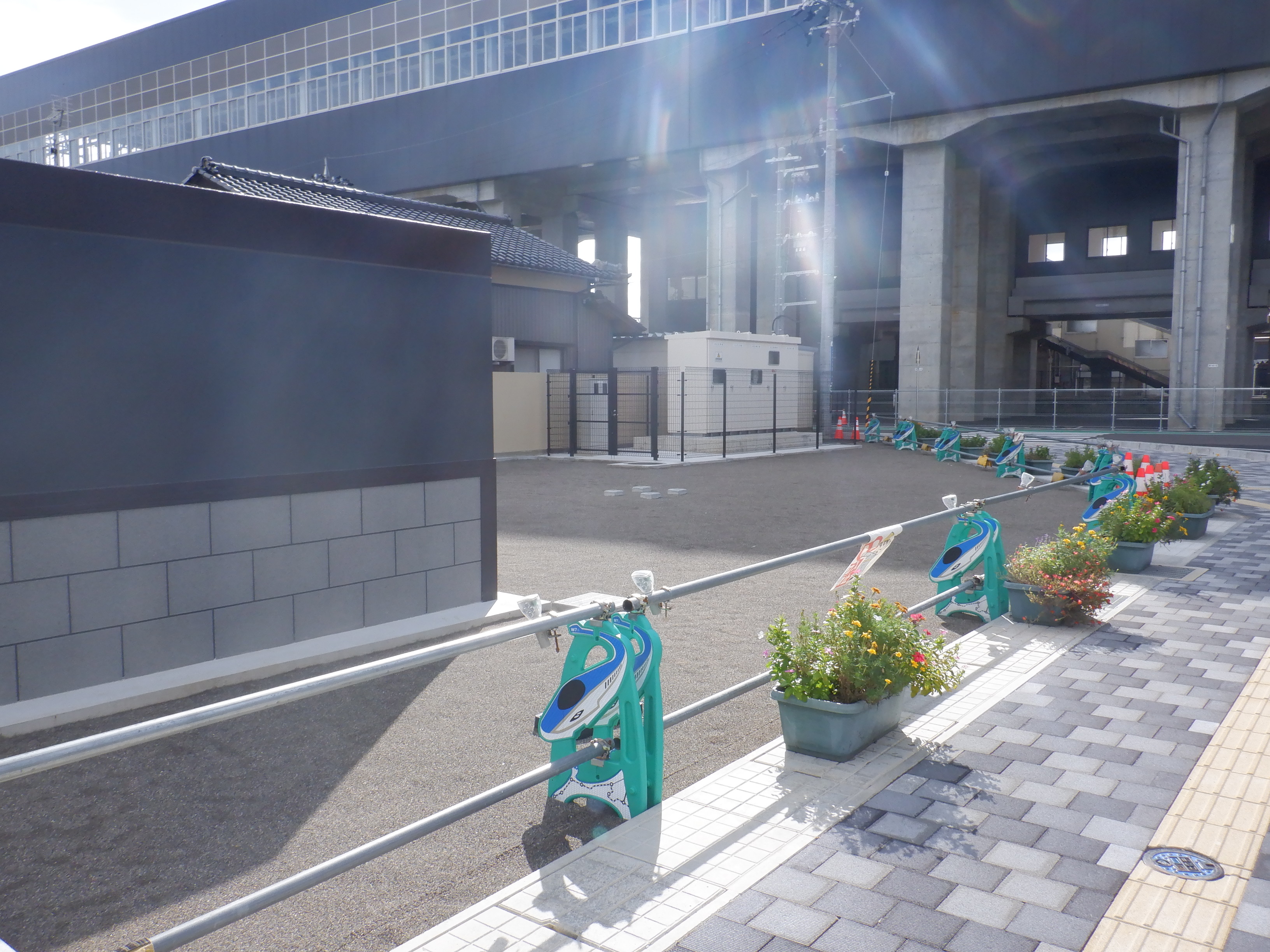 東口の交通広場建設中の様子、東口の出入口側。だいぶ整備されていますがトイレは未供用です。