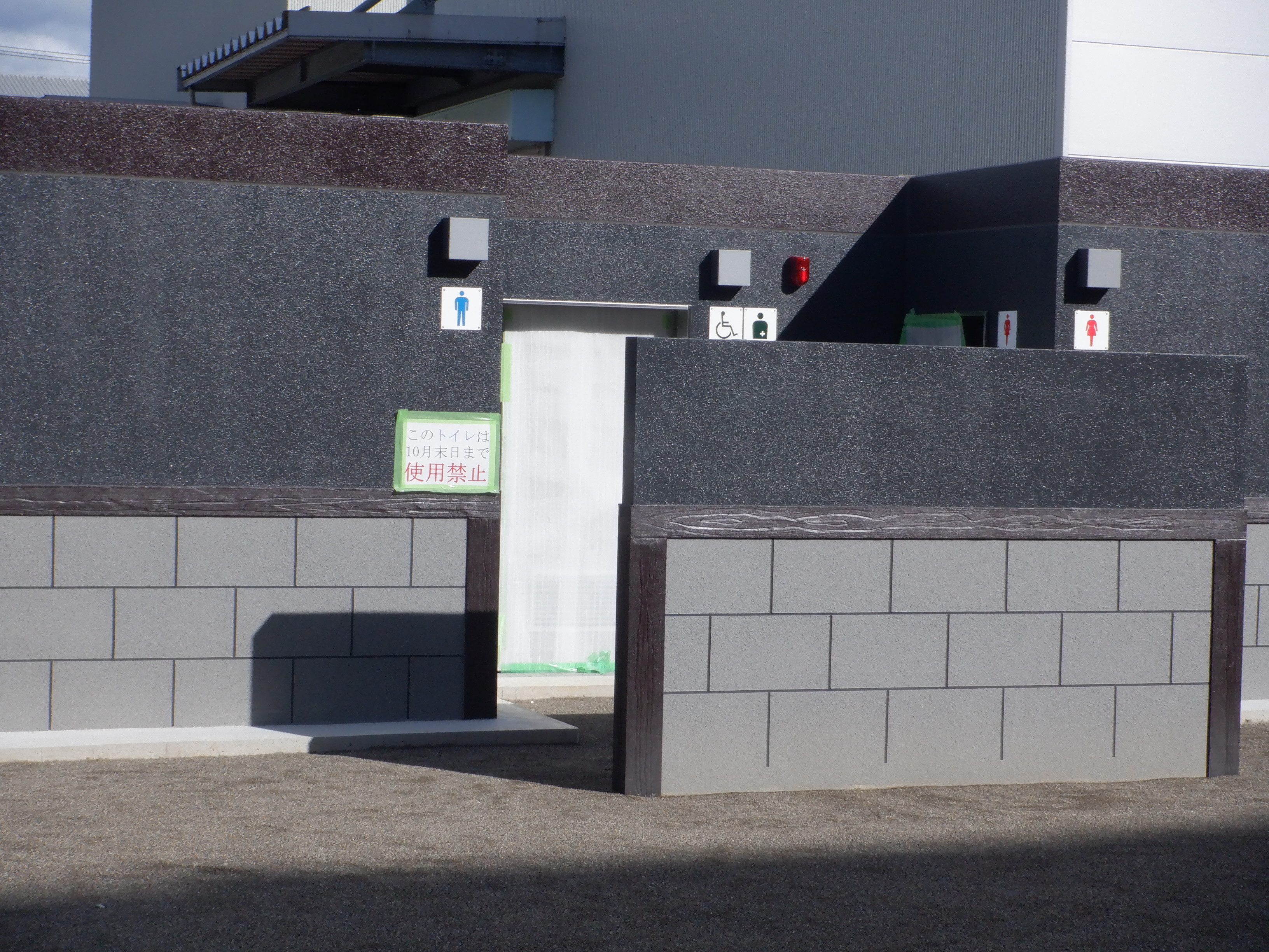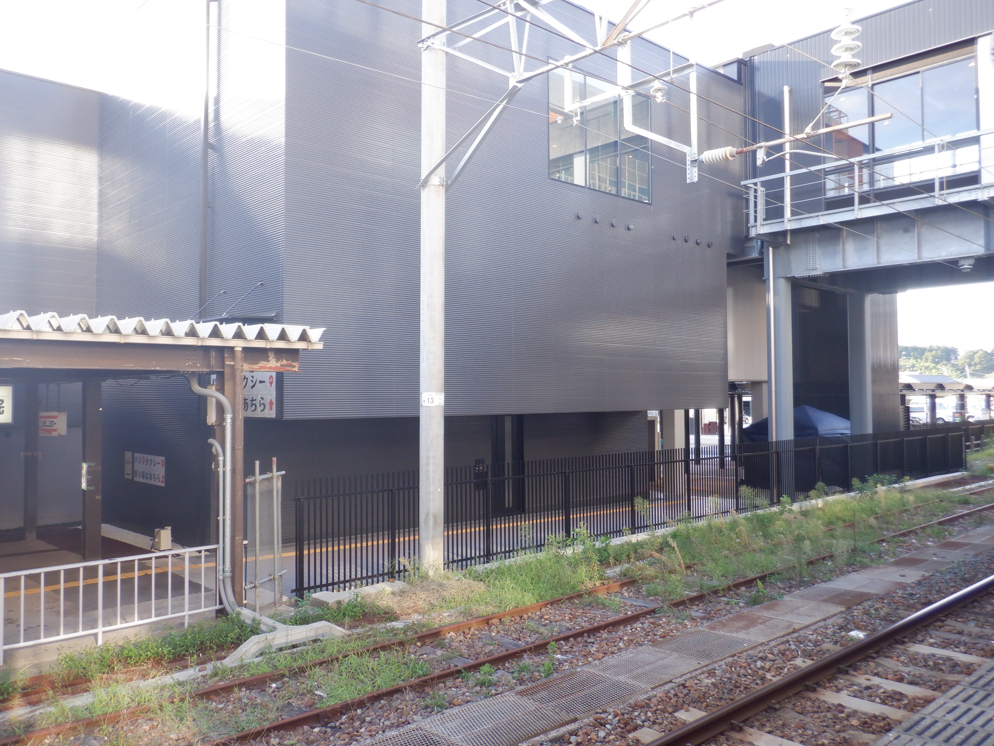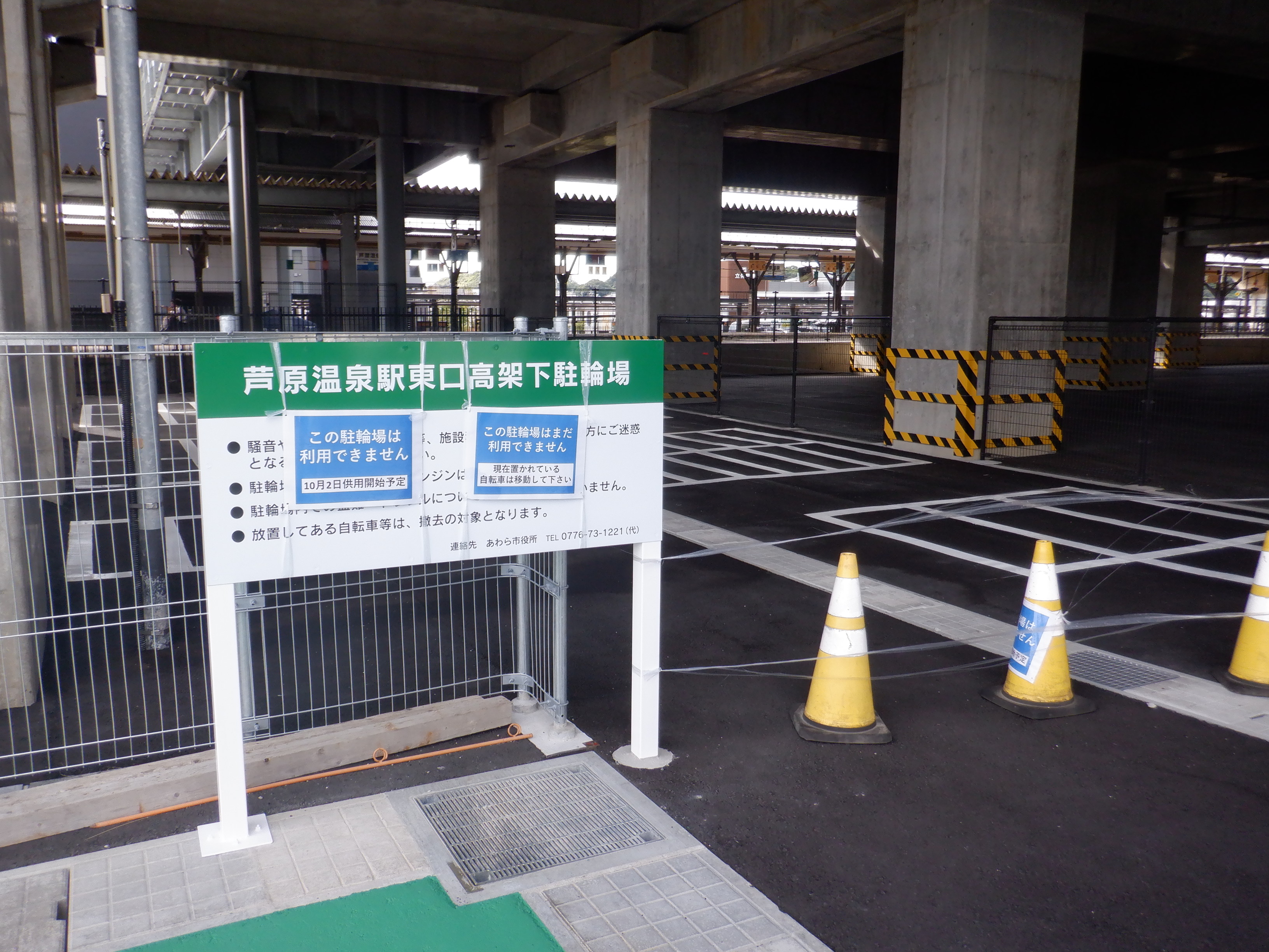 東口の交通広場建設中の様子、東口の出入口側。だいぶ整備されていますがトイレは未供用です。