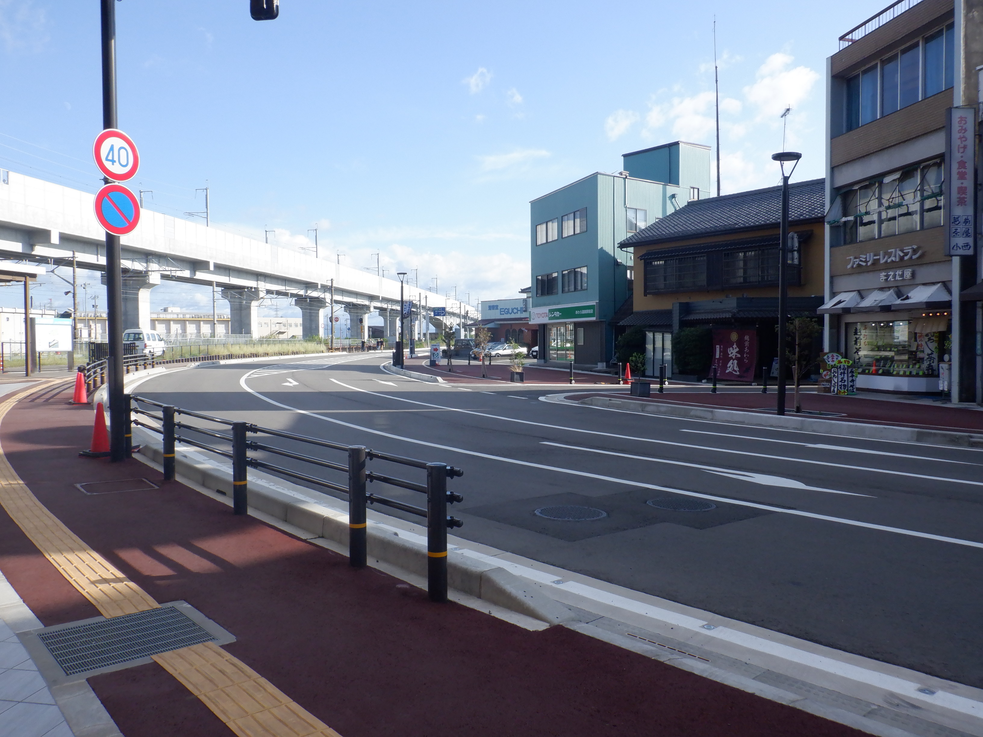 新しい道から西口の方へ。