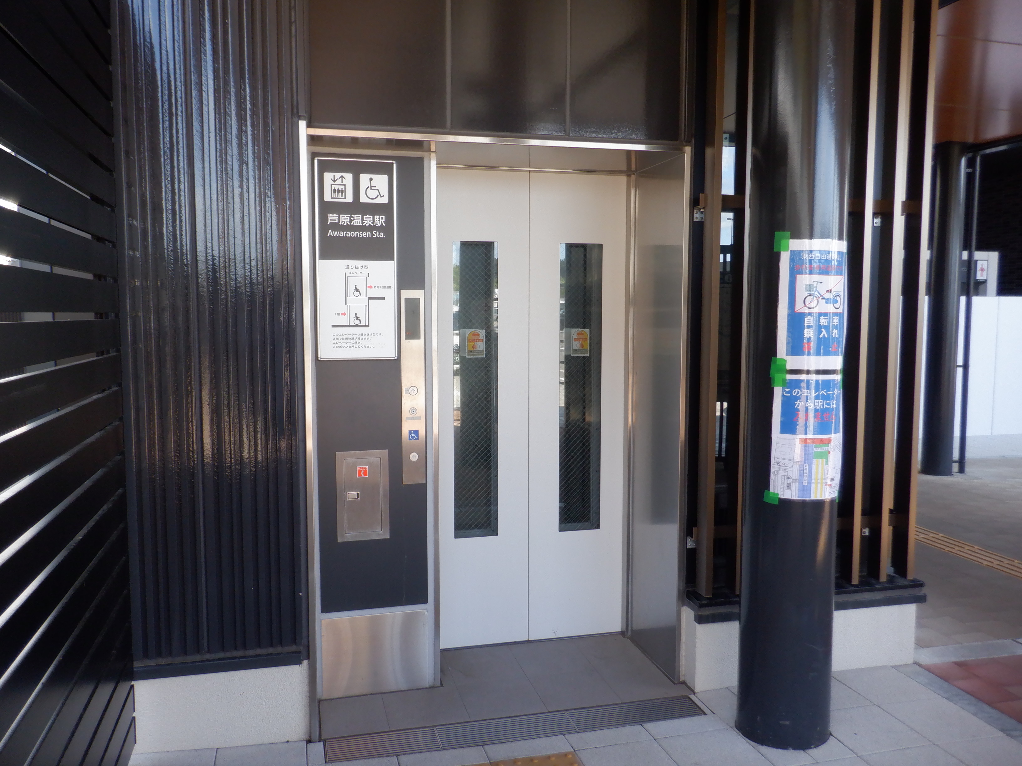 西口の丸岡駅側の出入口。