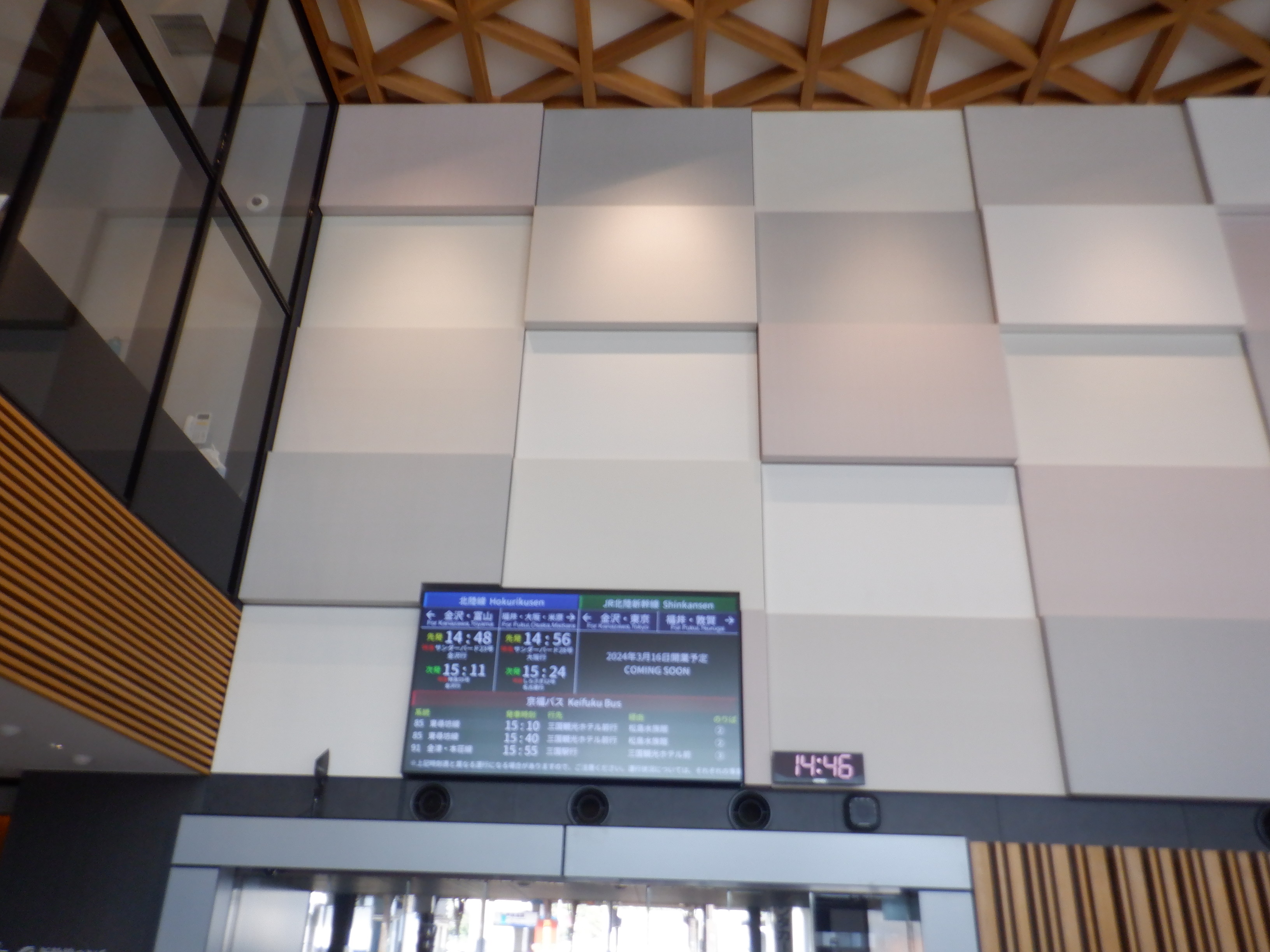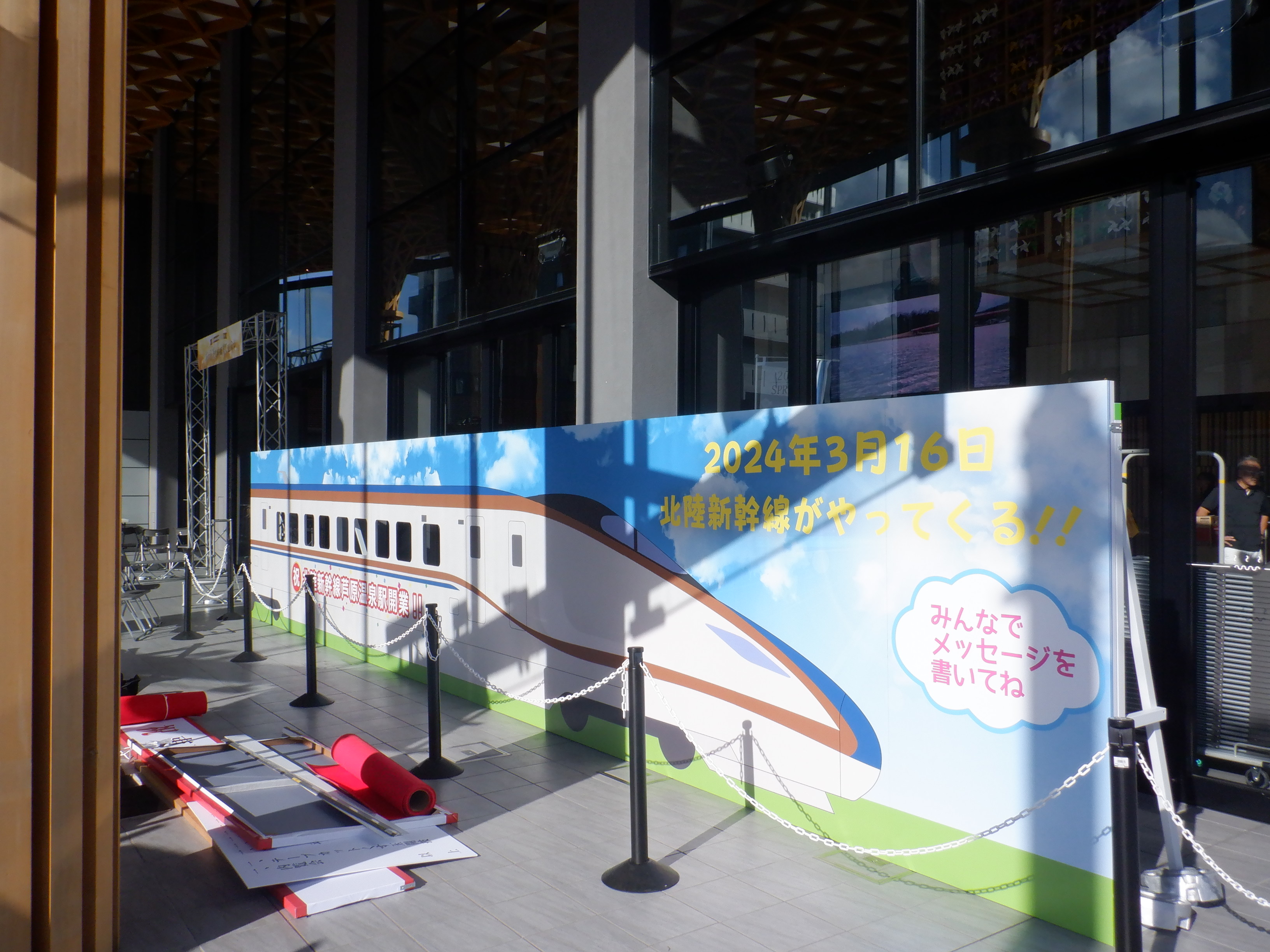 新幹線開業まで半年弱ありますが、通学の子供達の便宜のためにこの日の16時をもって新幹線改札口の前を通る自由通路が供用開始となりました。供用開始時刻に通ることができました。供用直前の様子からご紹介します。