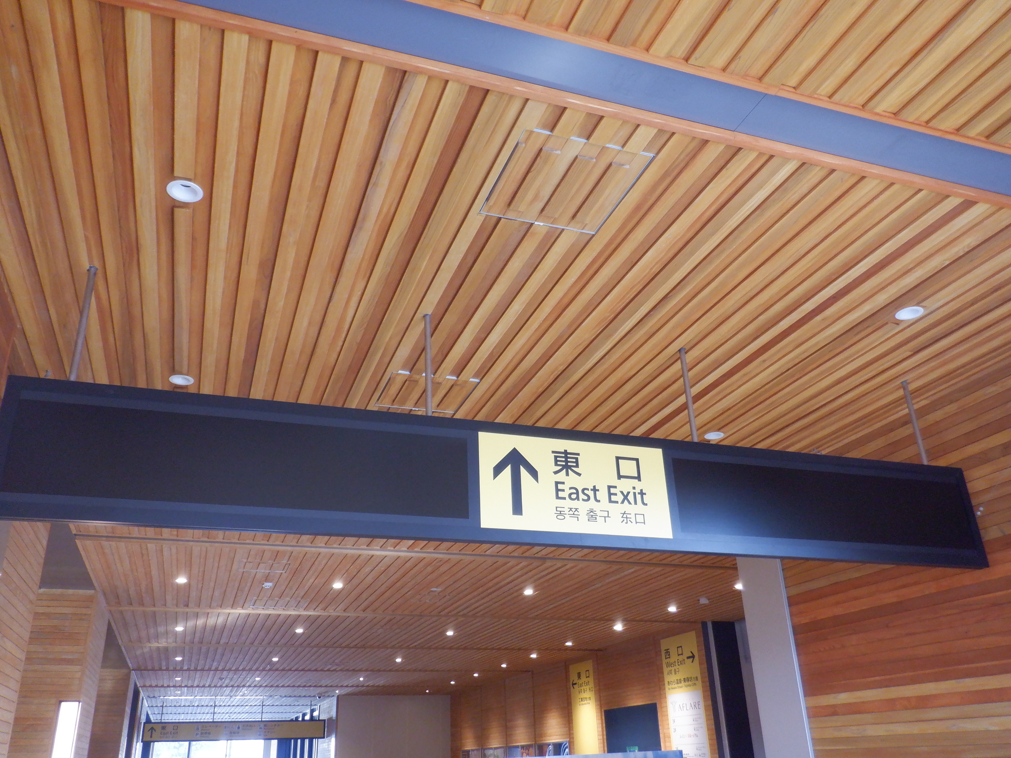 西口出入口付近の看板類。