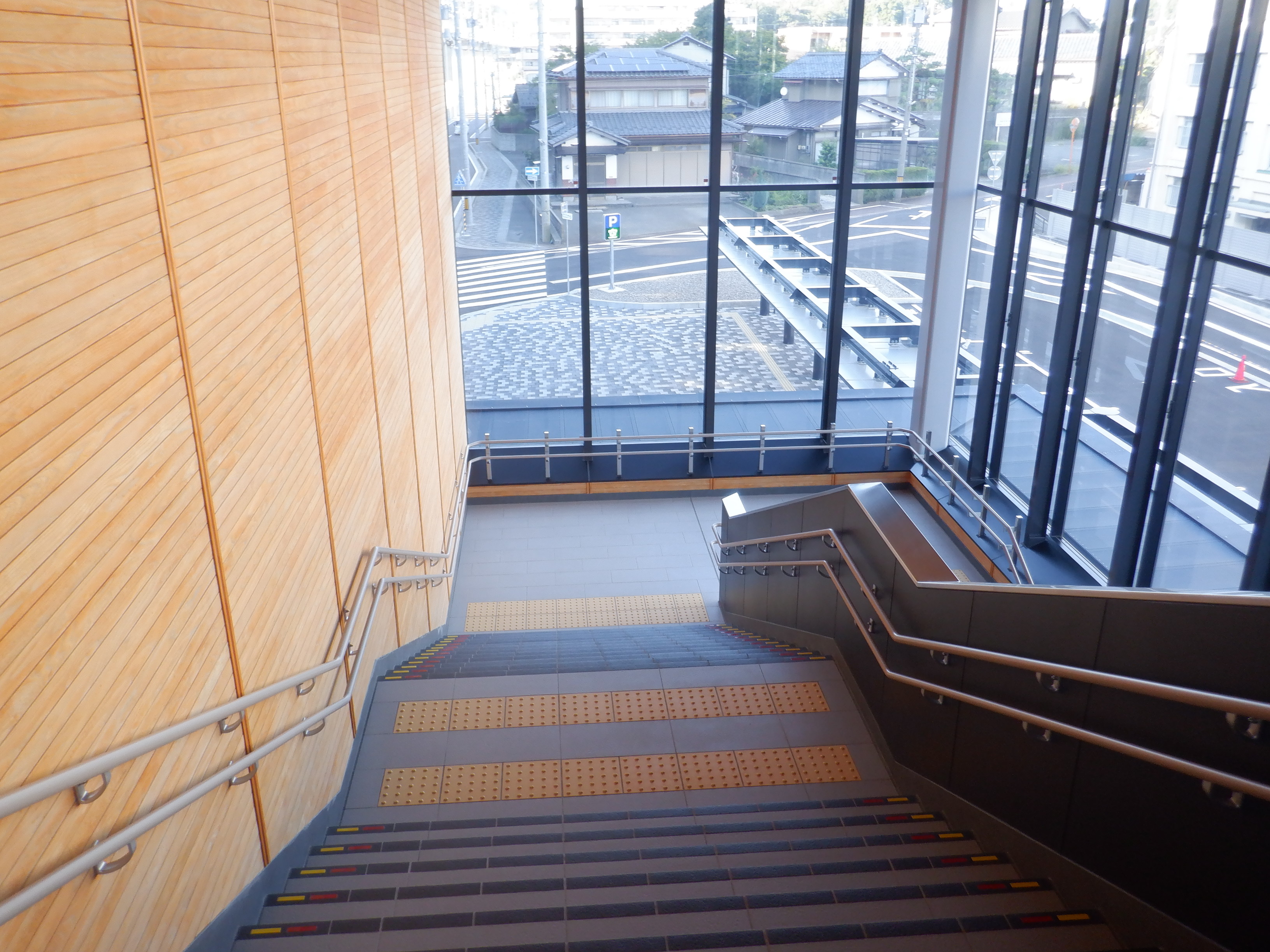 東口へ階段を下りていきます。