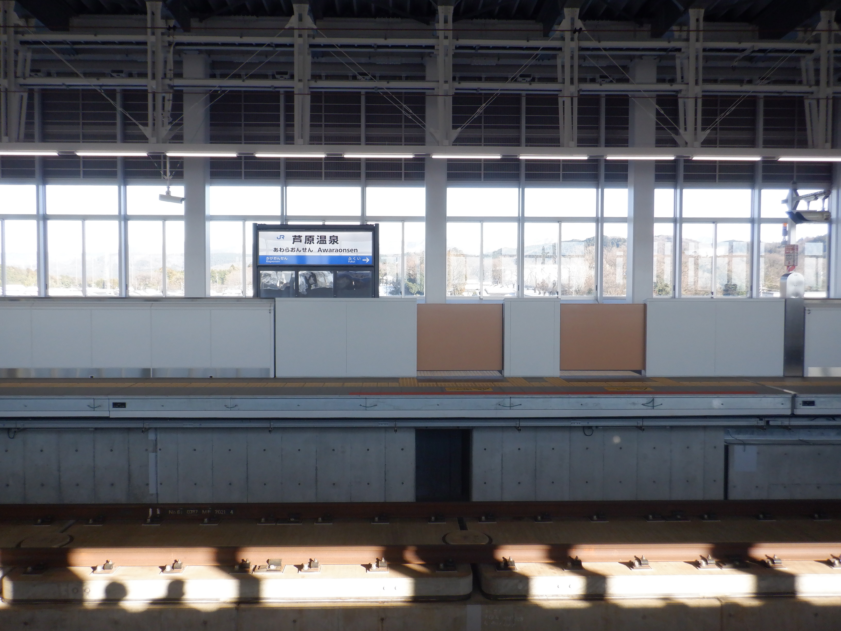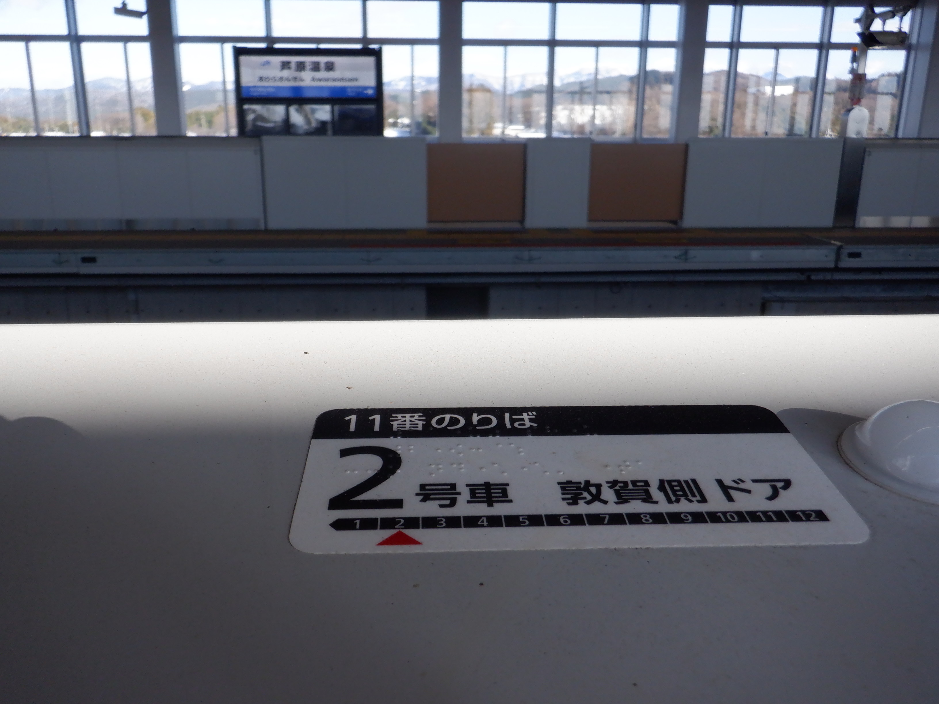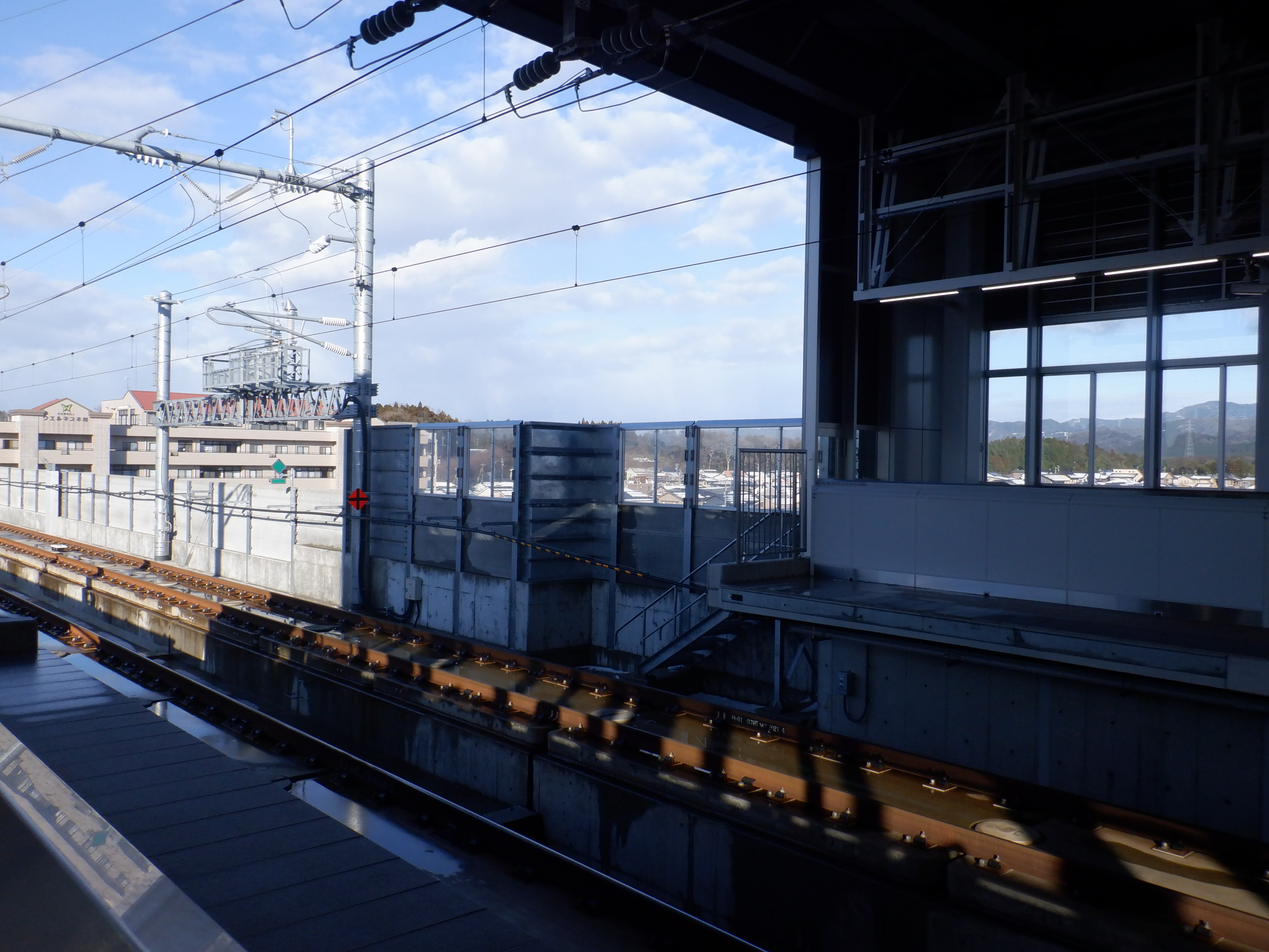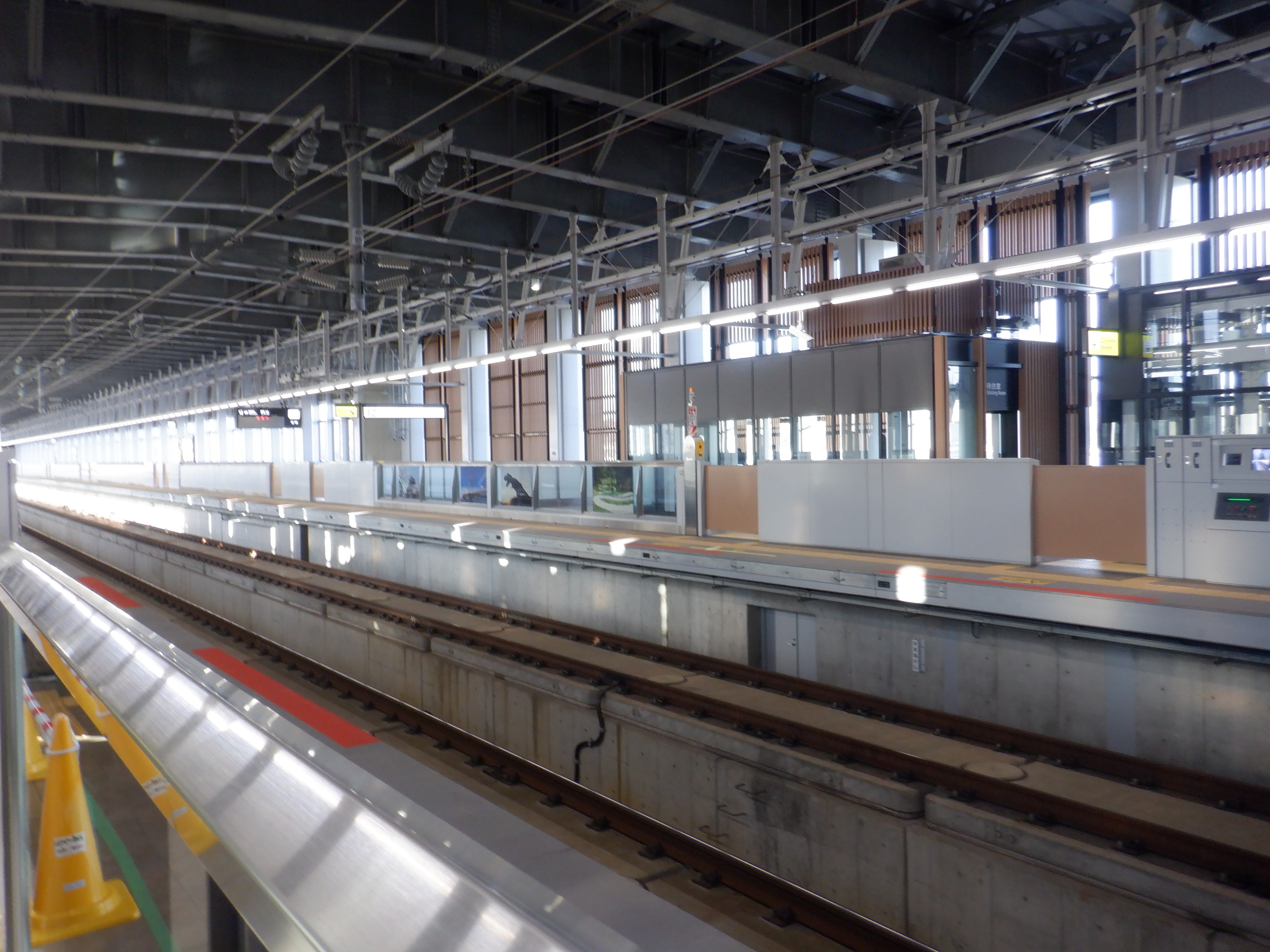 新幹線駅舎見学会を、越前たけふ駅に引き続きこの駅でも見ています。そのため今回は車で来ているため、在来線ホームからの様子は撮っていません。通常見ているものを見た後、新幹線見学会の様子、という流れになっています。