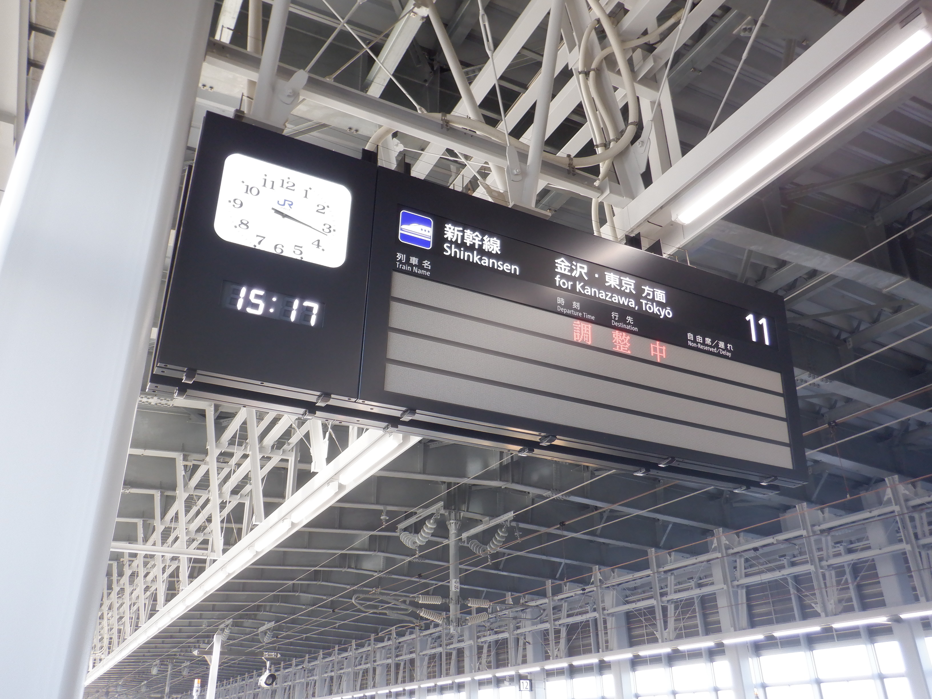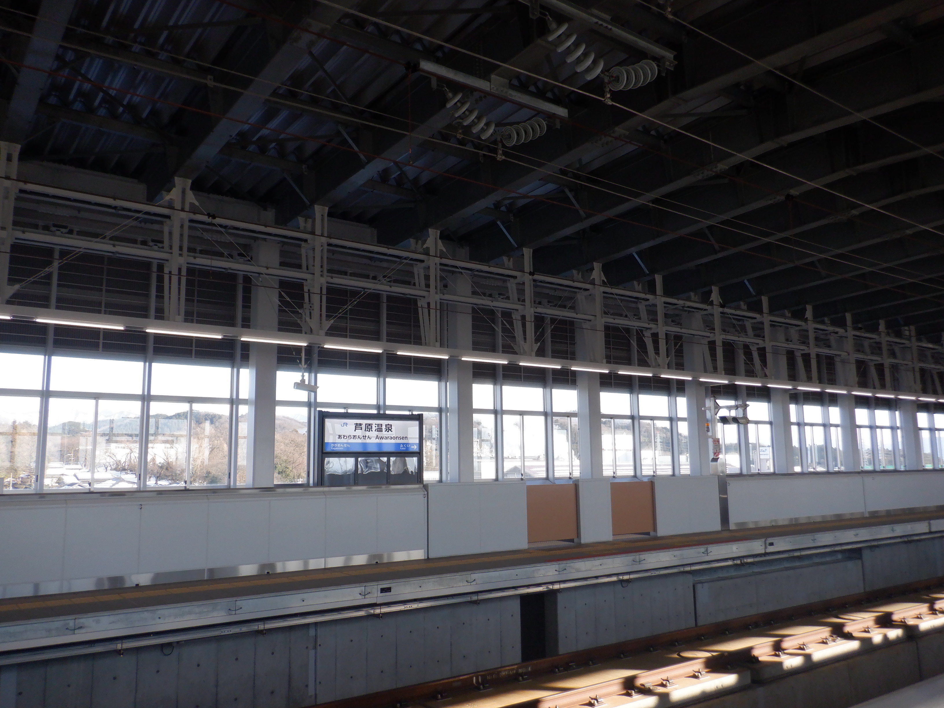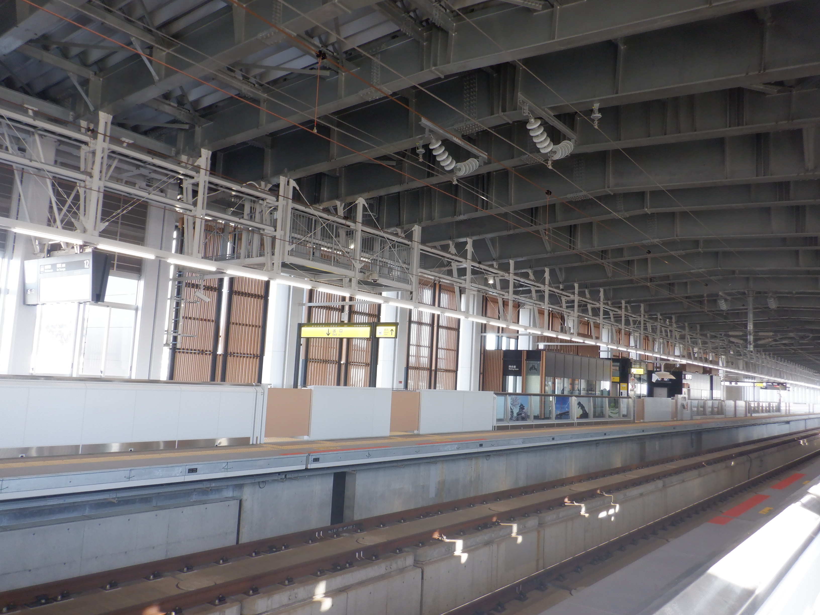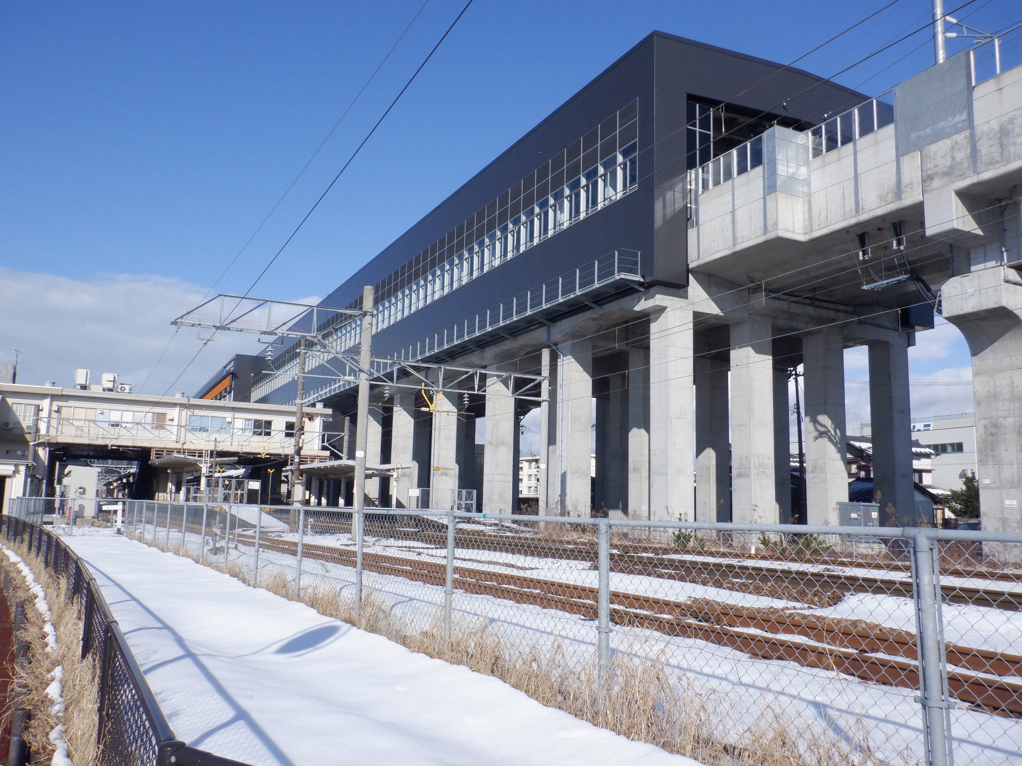 新幹線駅舎見学会を、越前たけふ駅に引き続きこの駅でも見ています。そのため今回は車で来ているため、在来線ホームからの様子は撮っていません。通常見ているものを見た後、新幹線見学会の様子、という流れになっています。