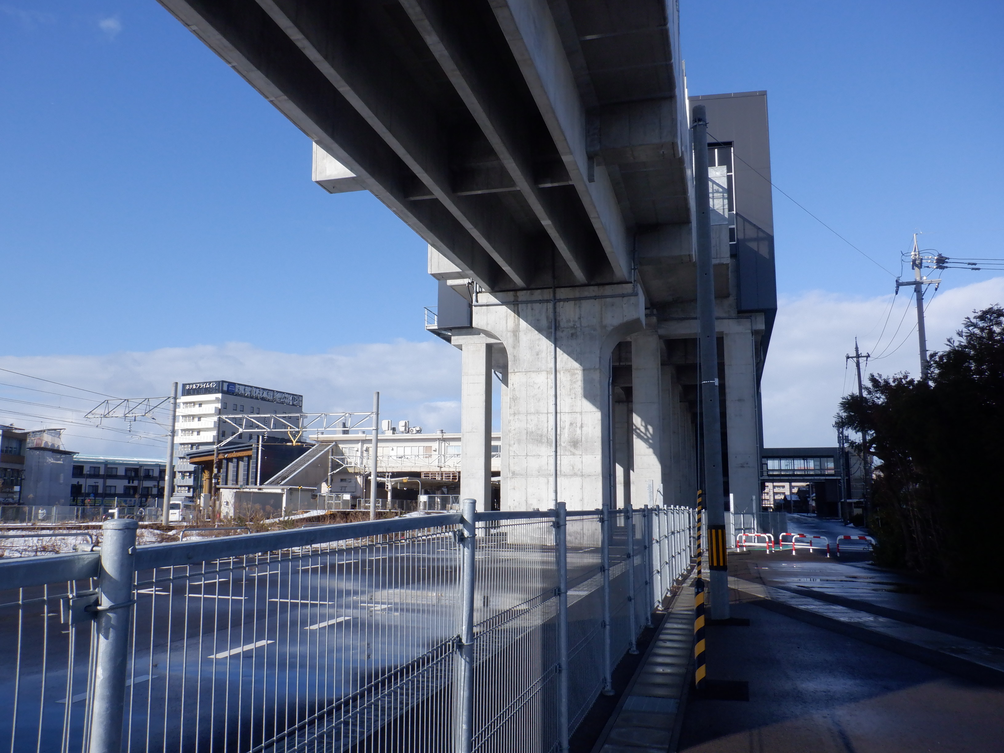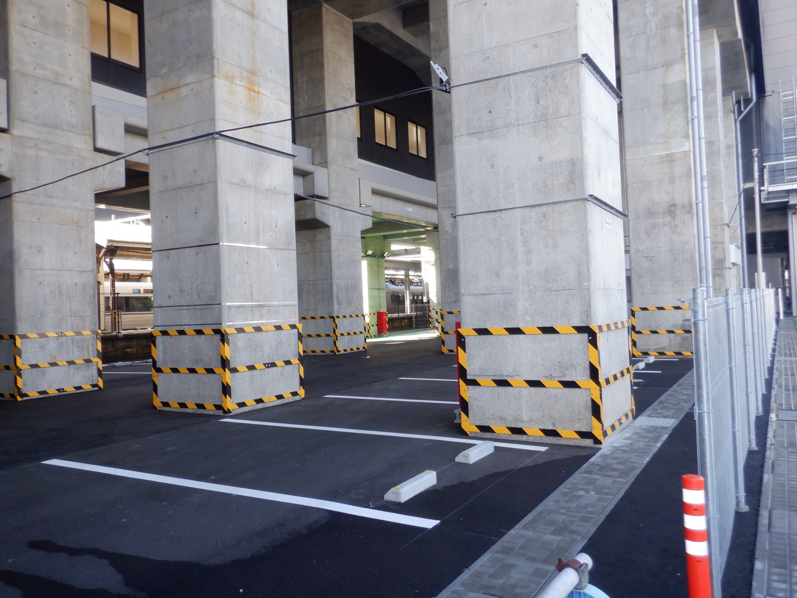 3番のりばから見た新幹線高架下。前回から2日しか経っていませんが、一部白線が引かれているなど、この間に少しだけ変化が見られました。