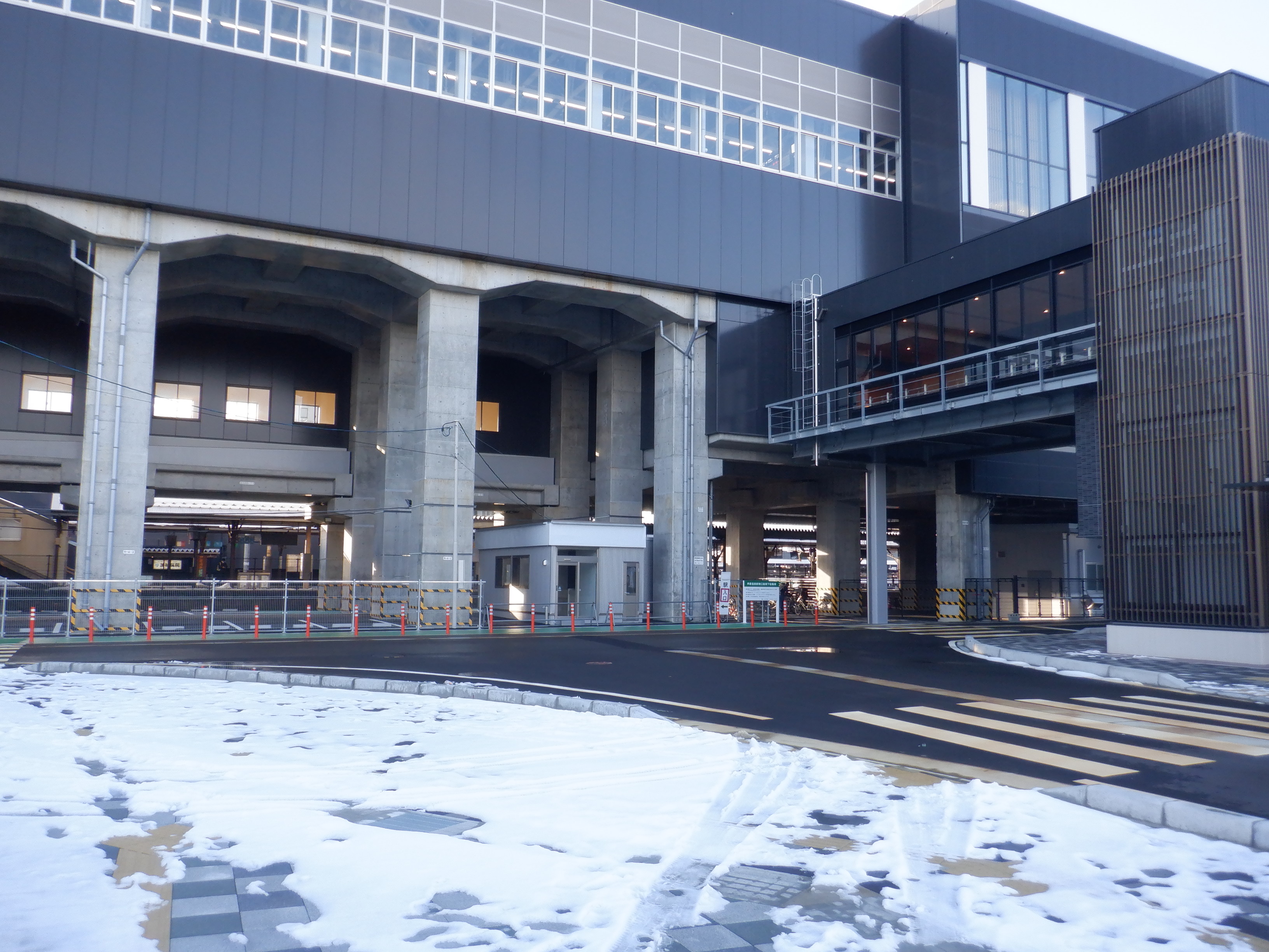 前回は1月4日に来ていて、普通列車の接続の関係上降りることになったため撮っていますが、撮る範囲は狭くなっています。1箇所だけ2日間の間に変わりました。暗くなってからのアフレアや新しい自由通路を撮ることができました。