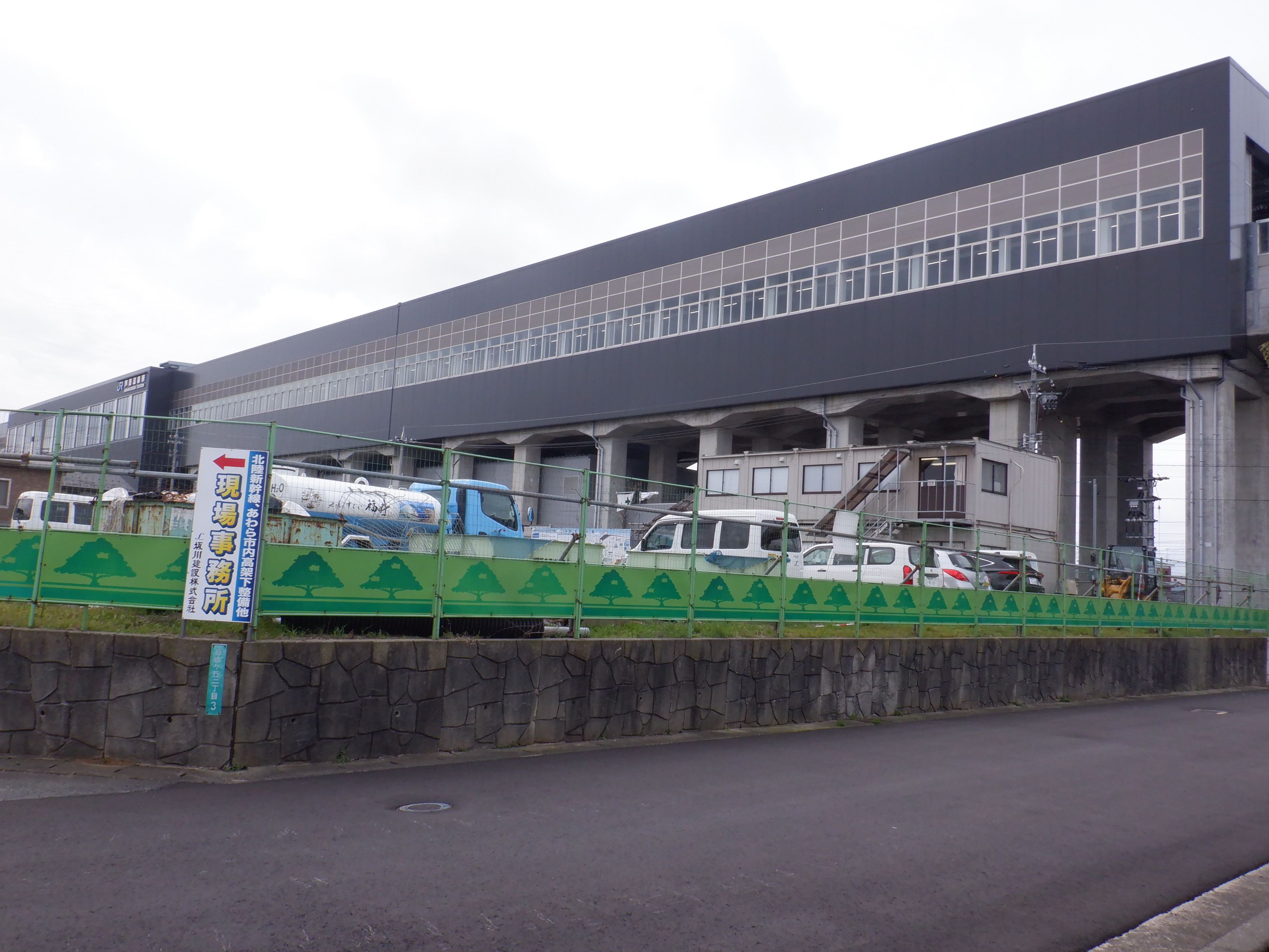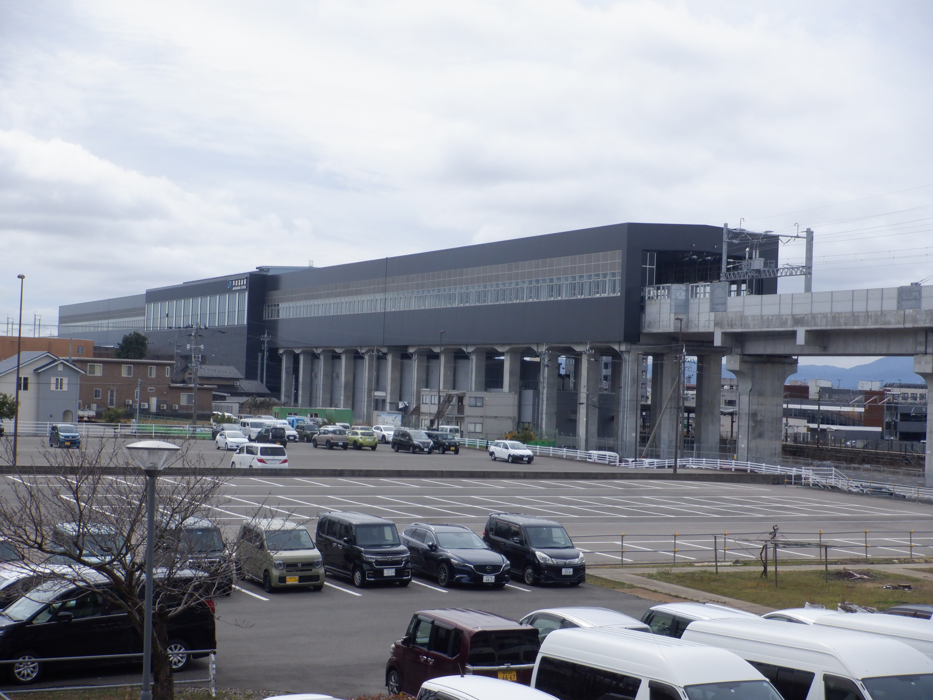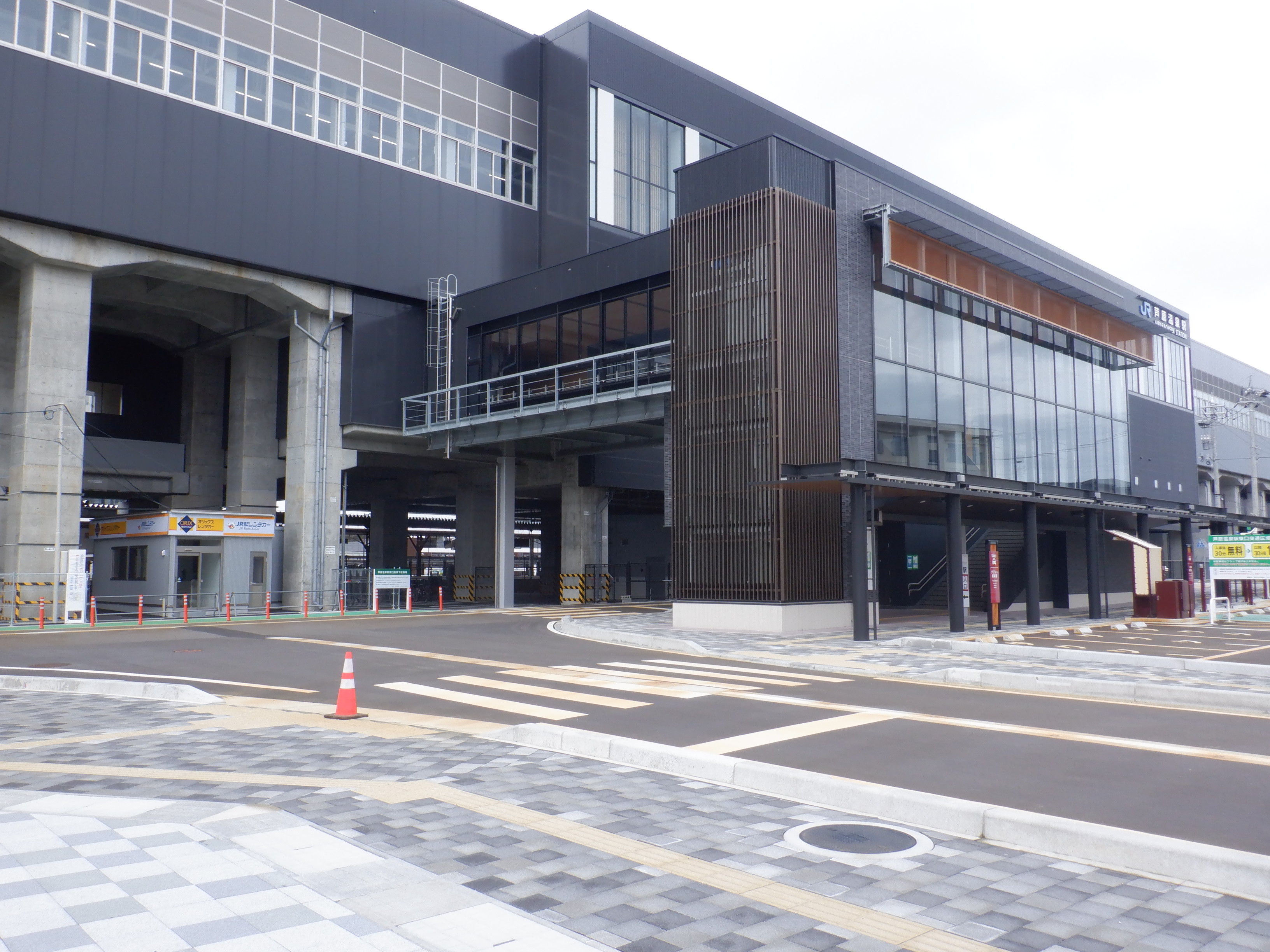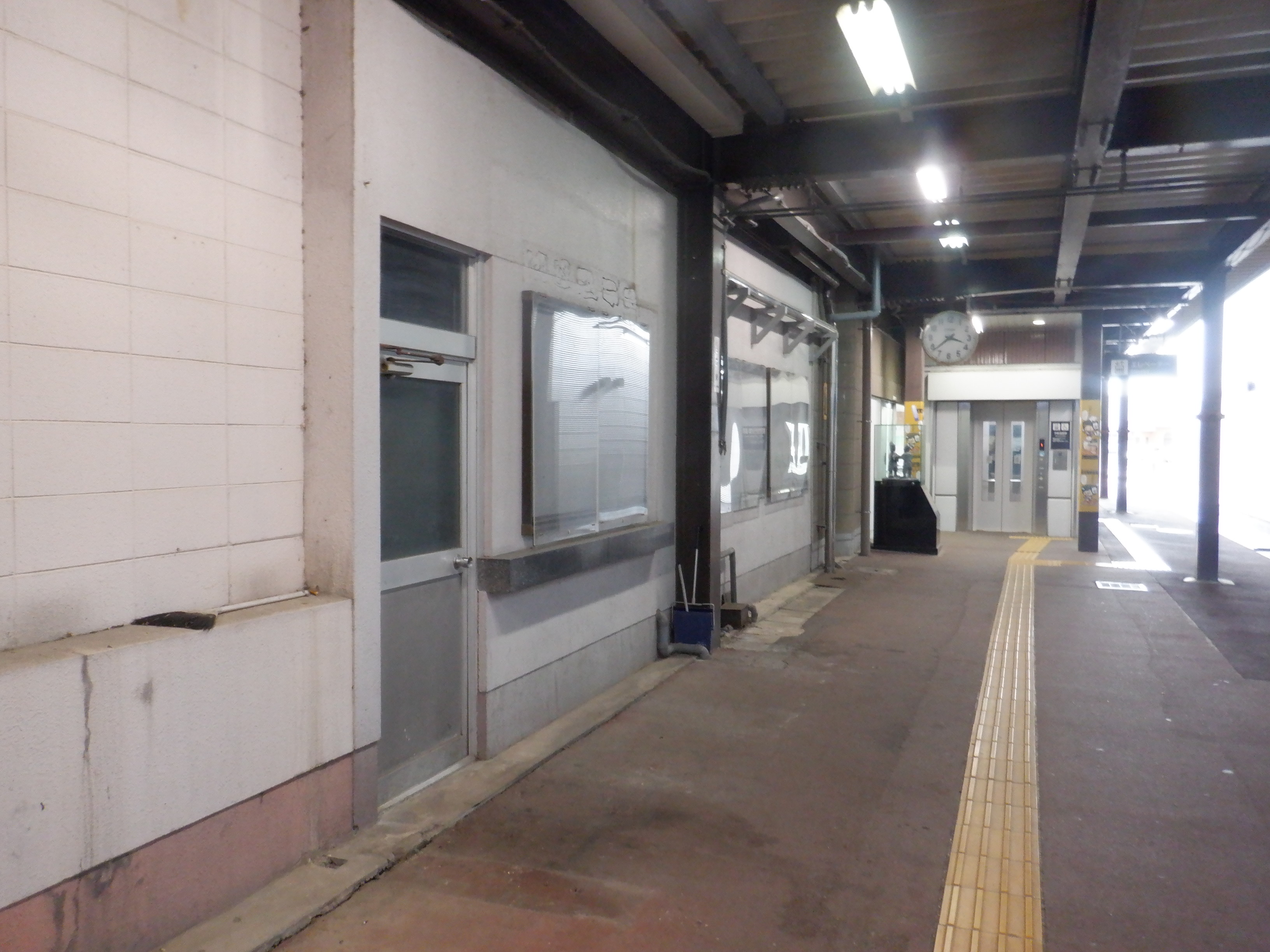囲いがされていた駅前の飲食店だったところ。新幹線開業を前に閉店し、表を整備して誤解を与えない形になったようです。