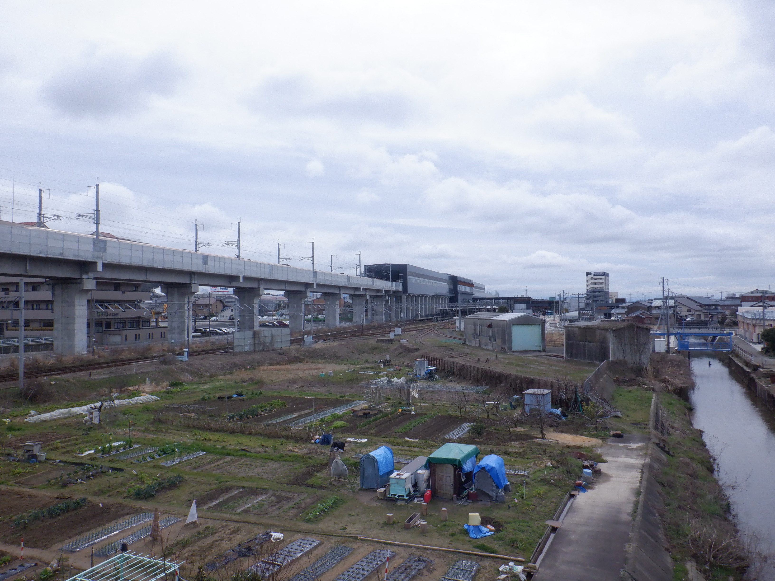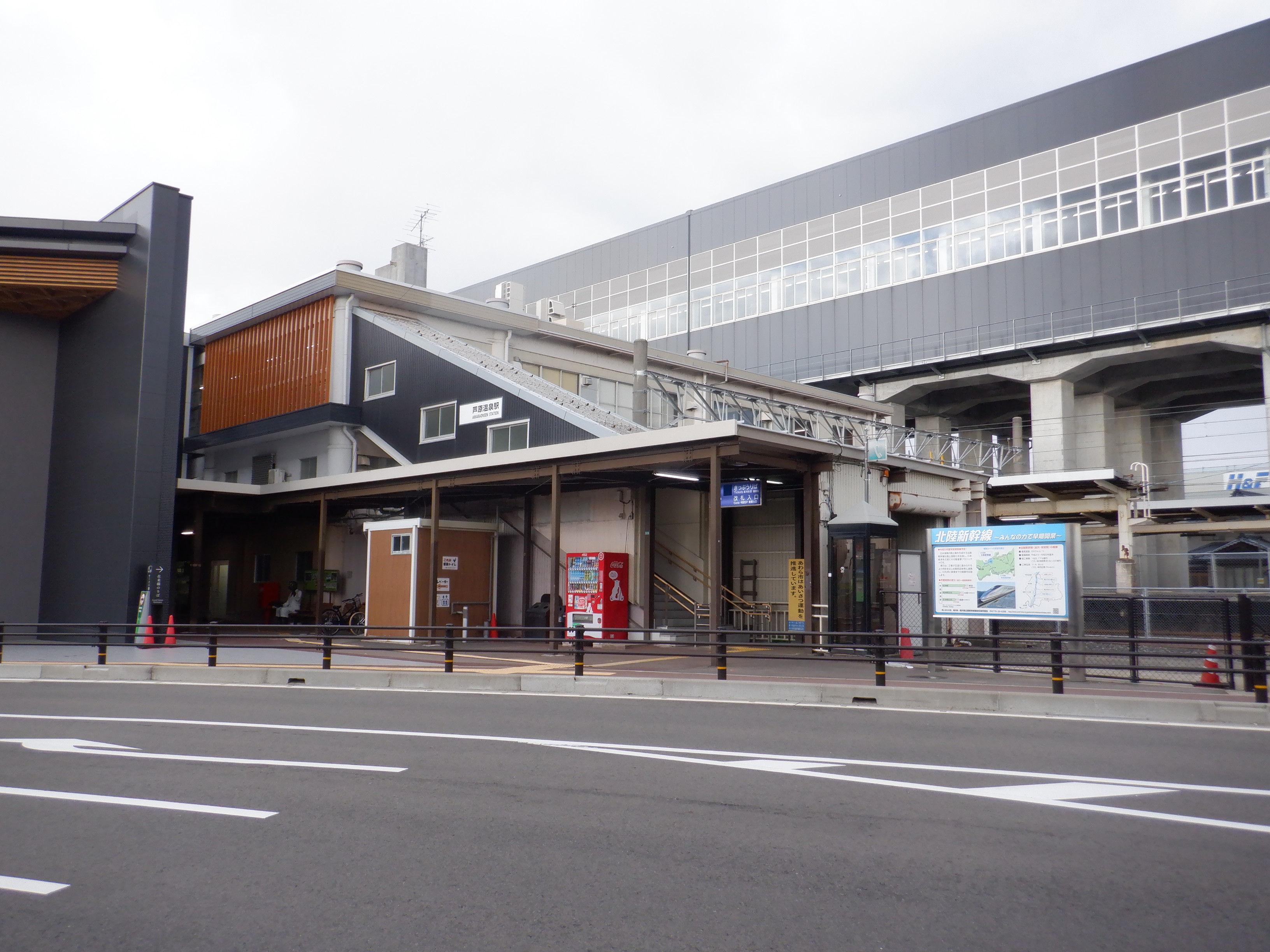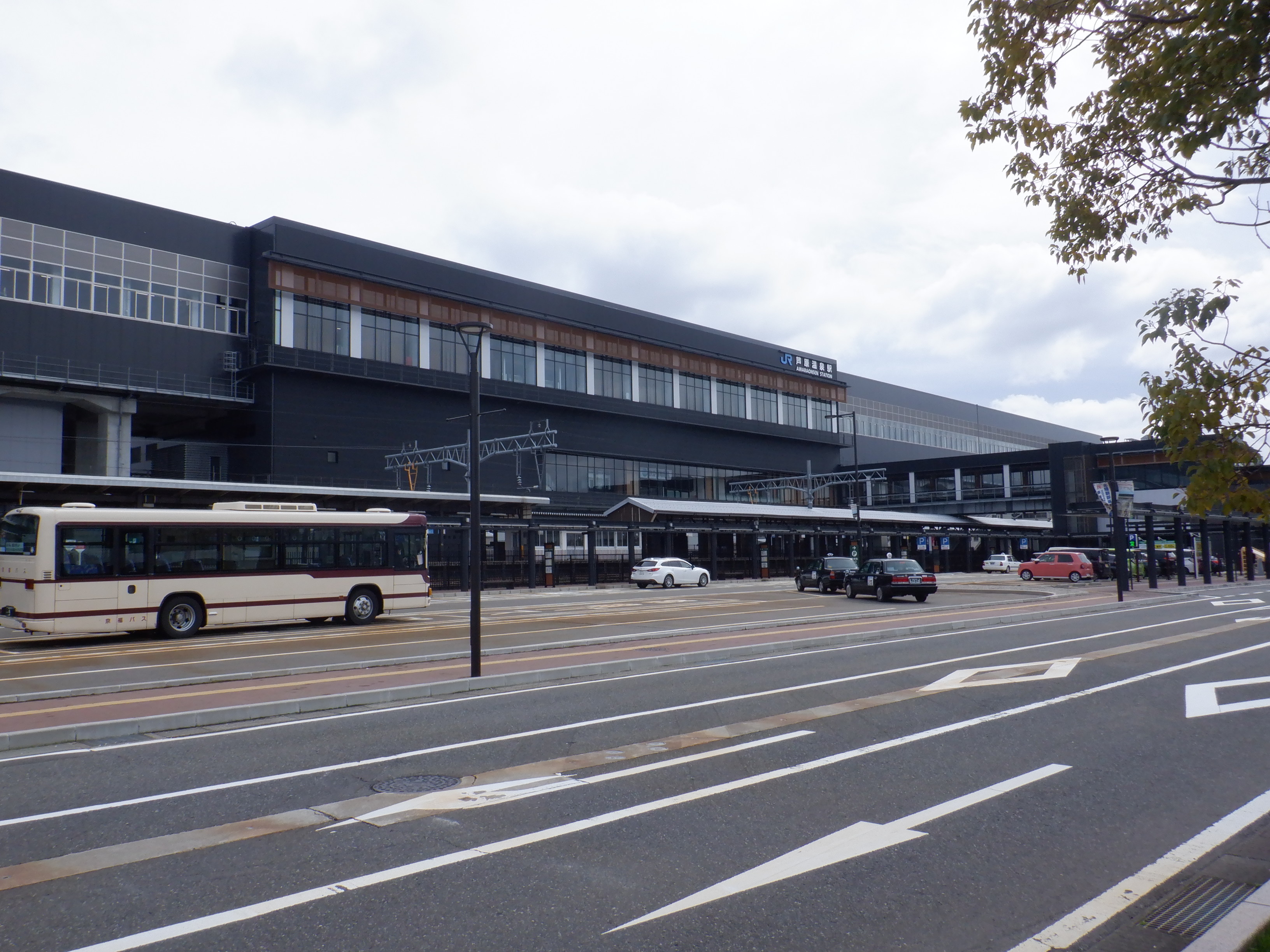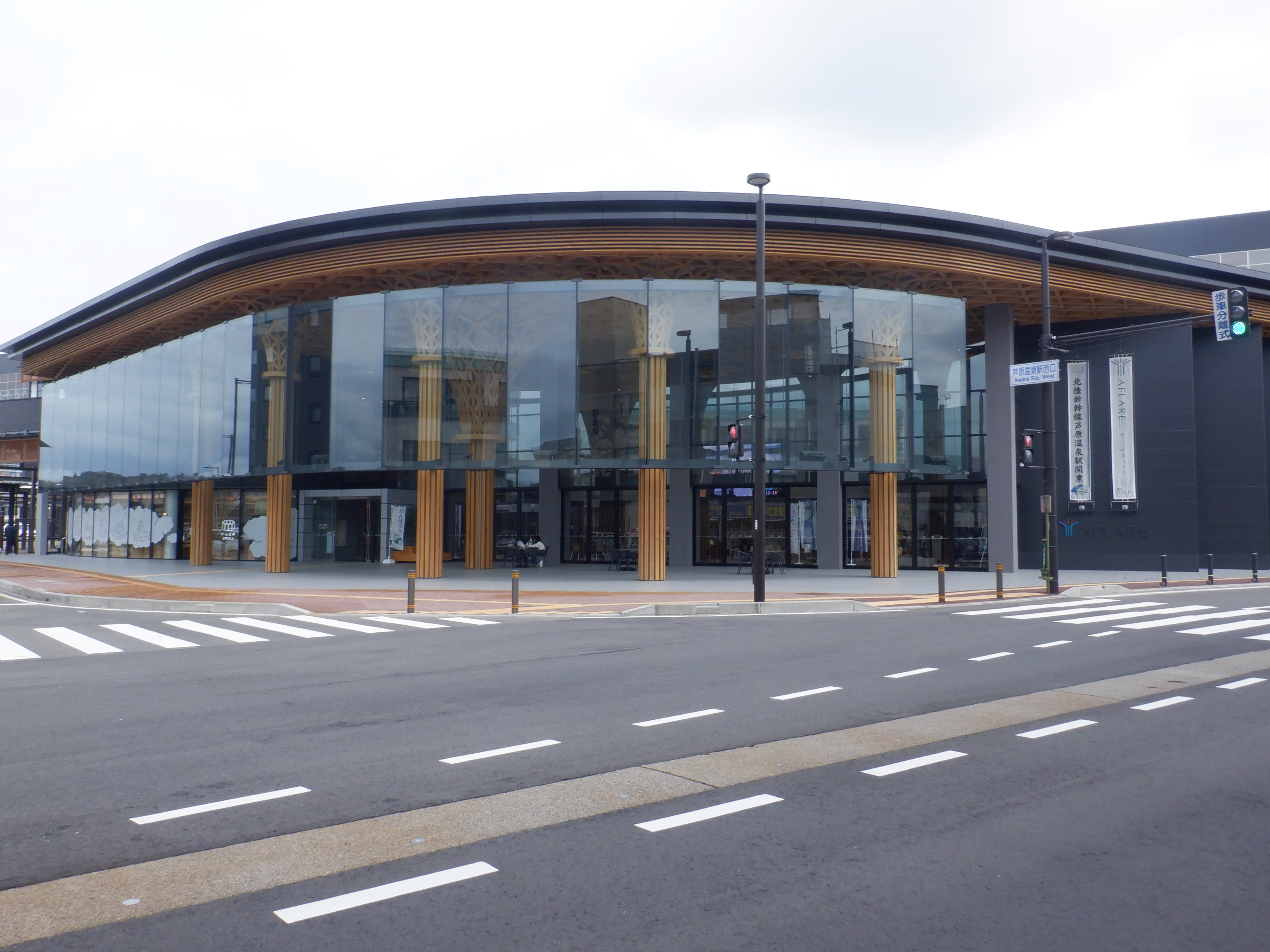 囲いがされていた駅前の飲食店だったところ。新幹線開業を前に閉店し、表を整備して誤解を与えない形になったようです。