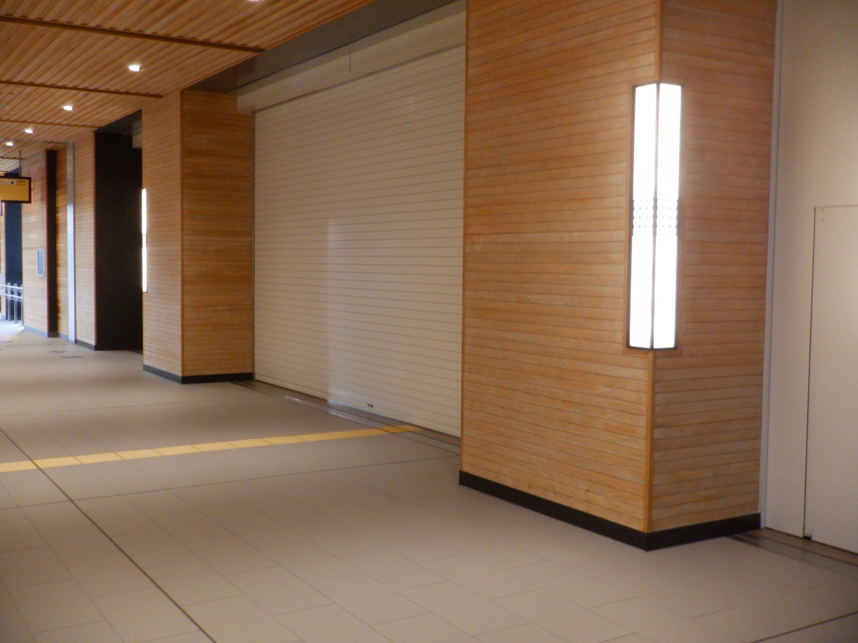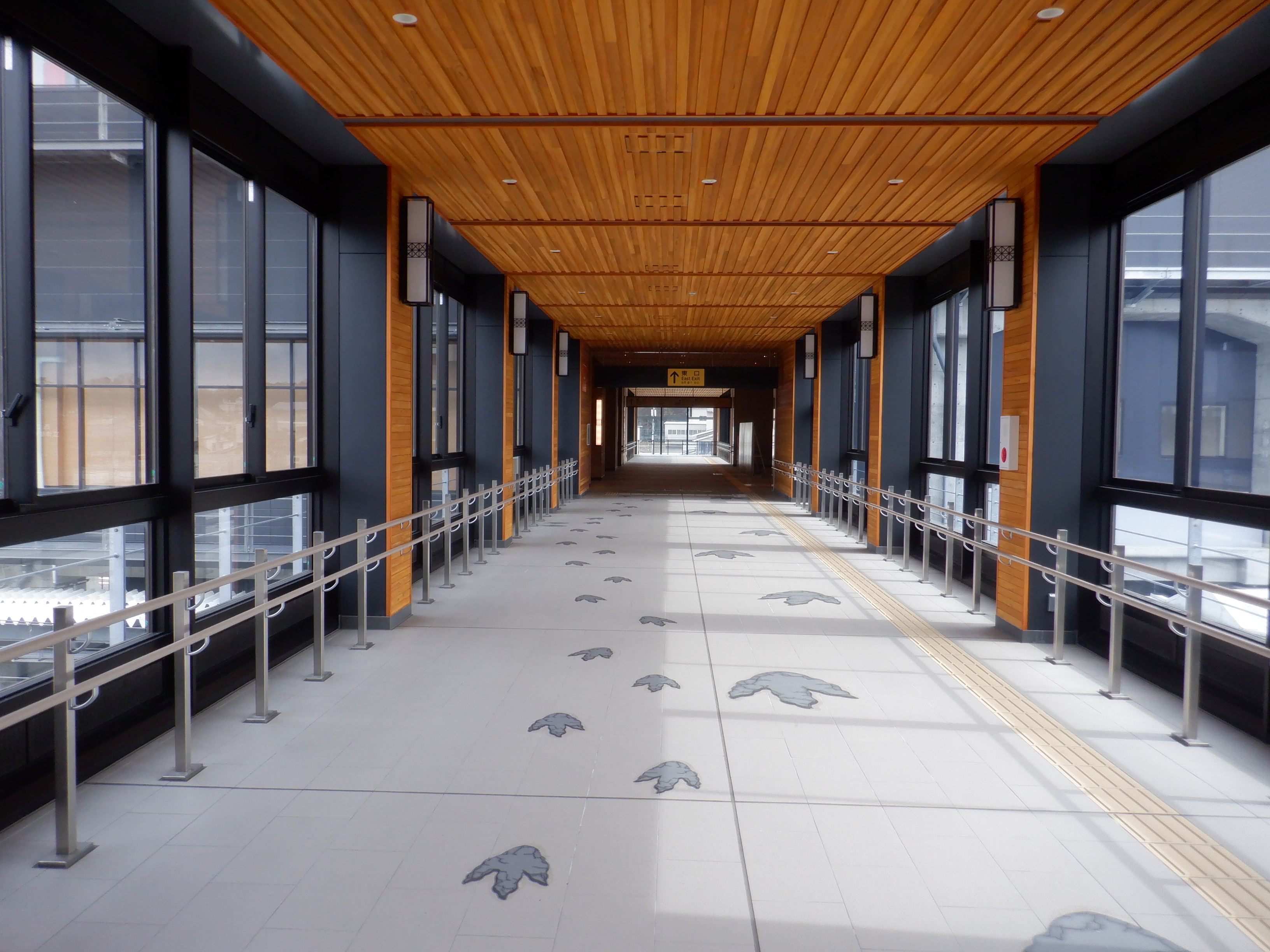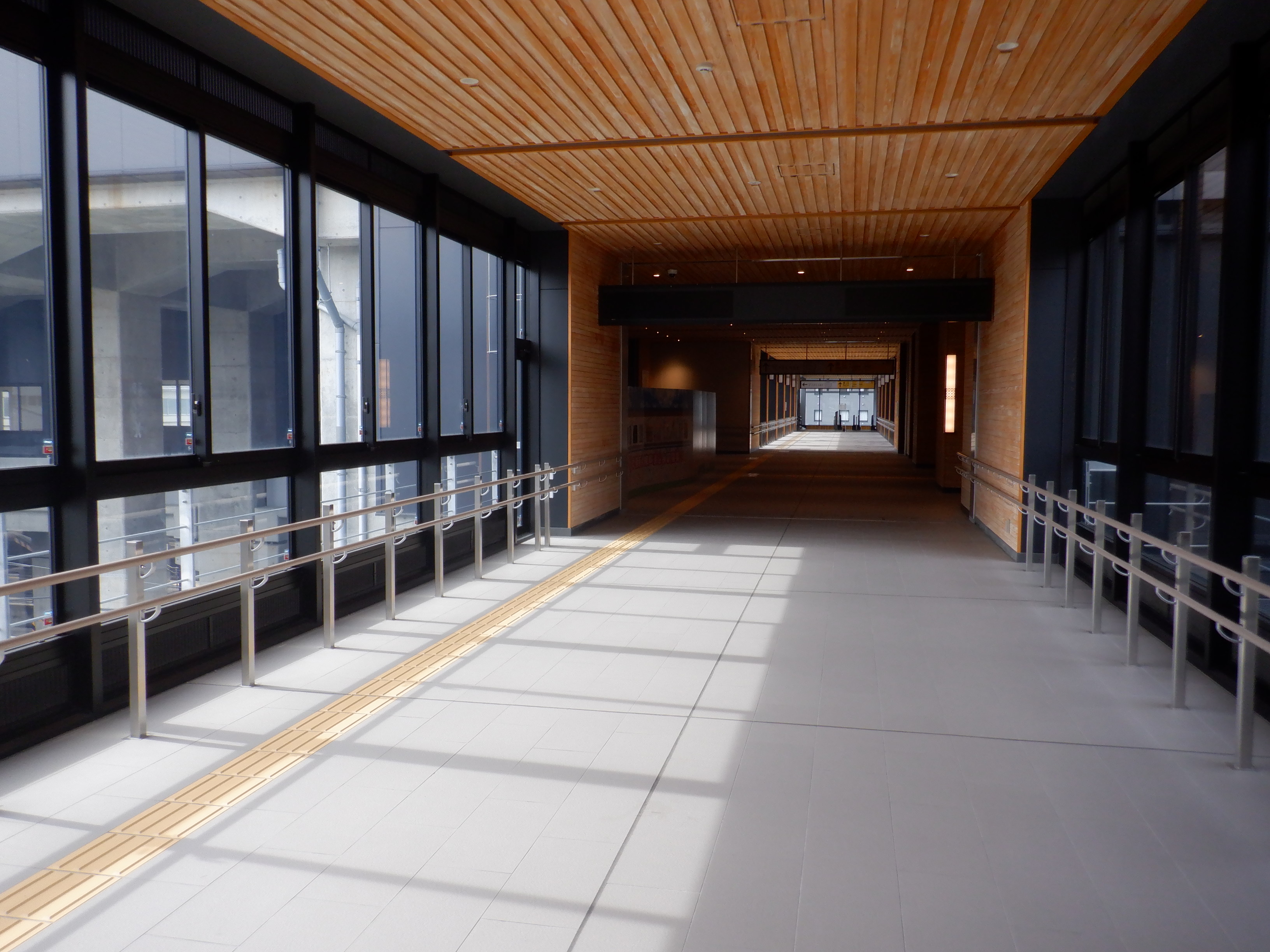 自由通路を通ります。新幹線のりばには「鉄道・運輸機構」の表示があります。