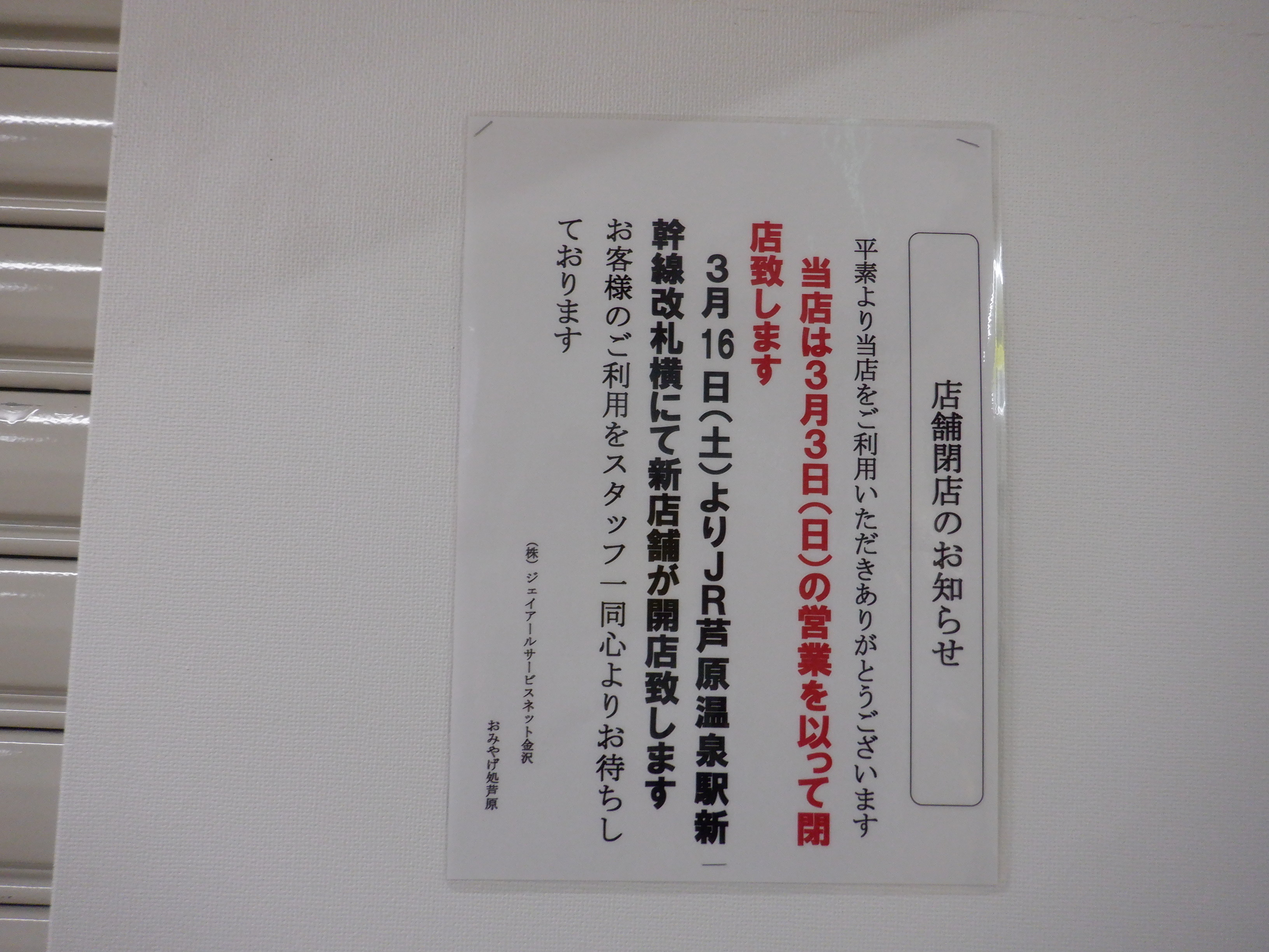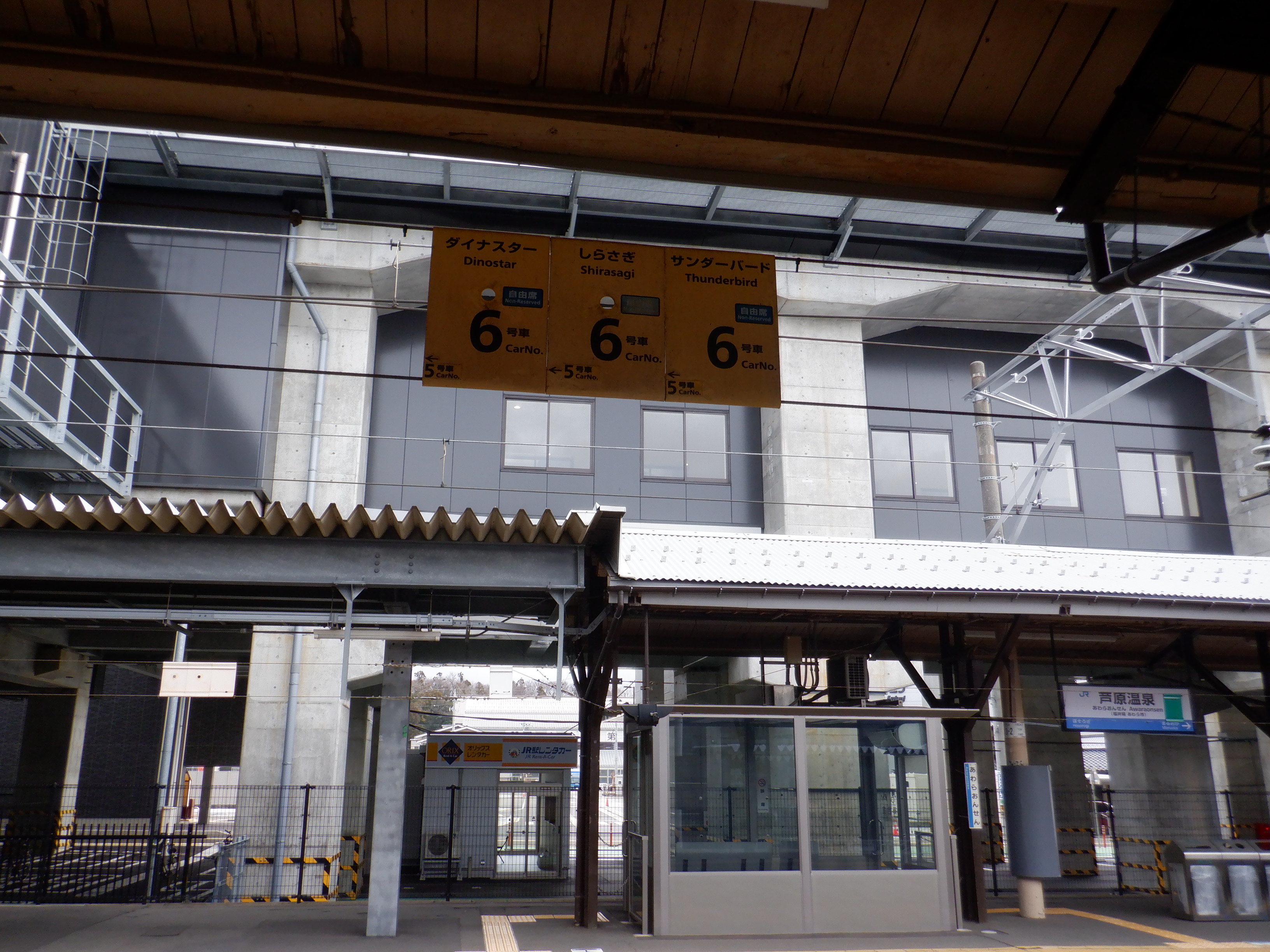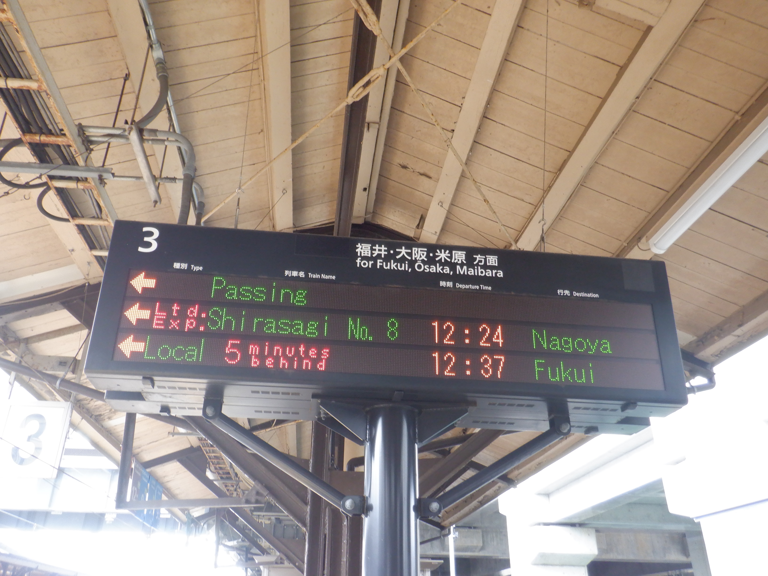 ホームや改札口の発車標の「北陸線」の表示が消されていましたが、これは前回以前もそうだったようです。その他、移管に向けた準備が進んでいます。