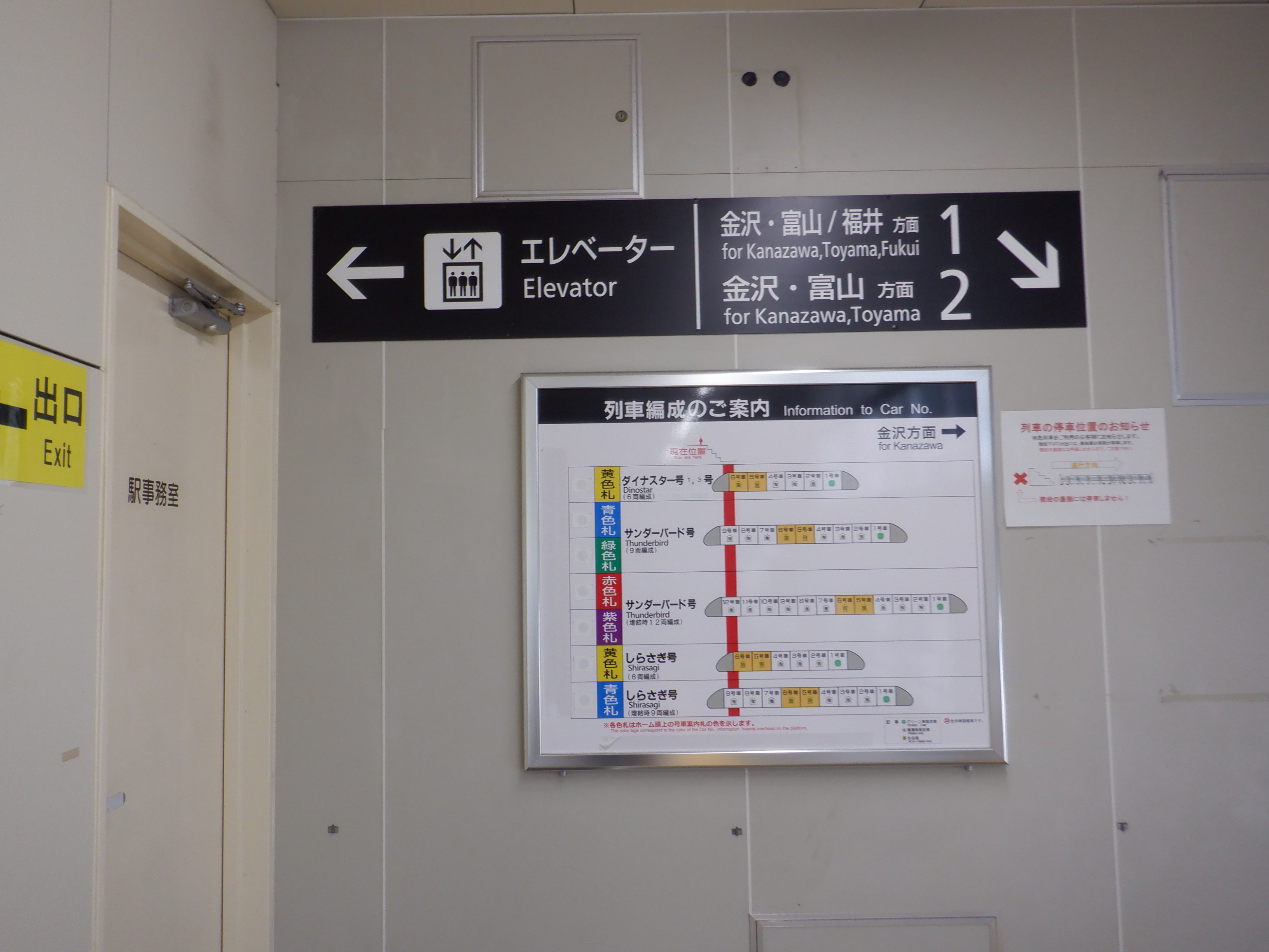 改札口から入ったところの案内も「北陸線」が隠されています。