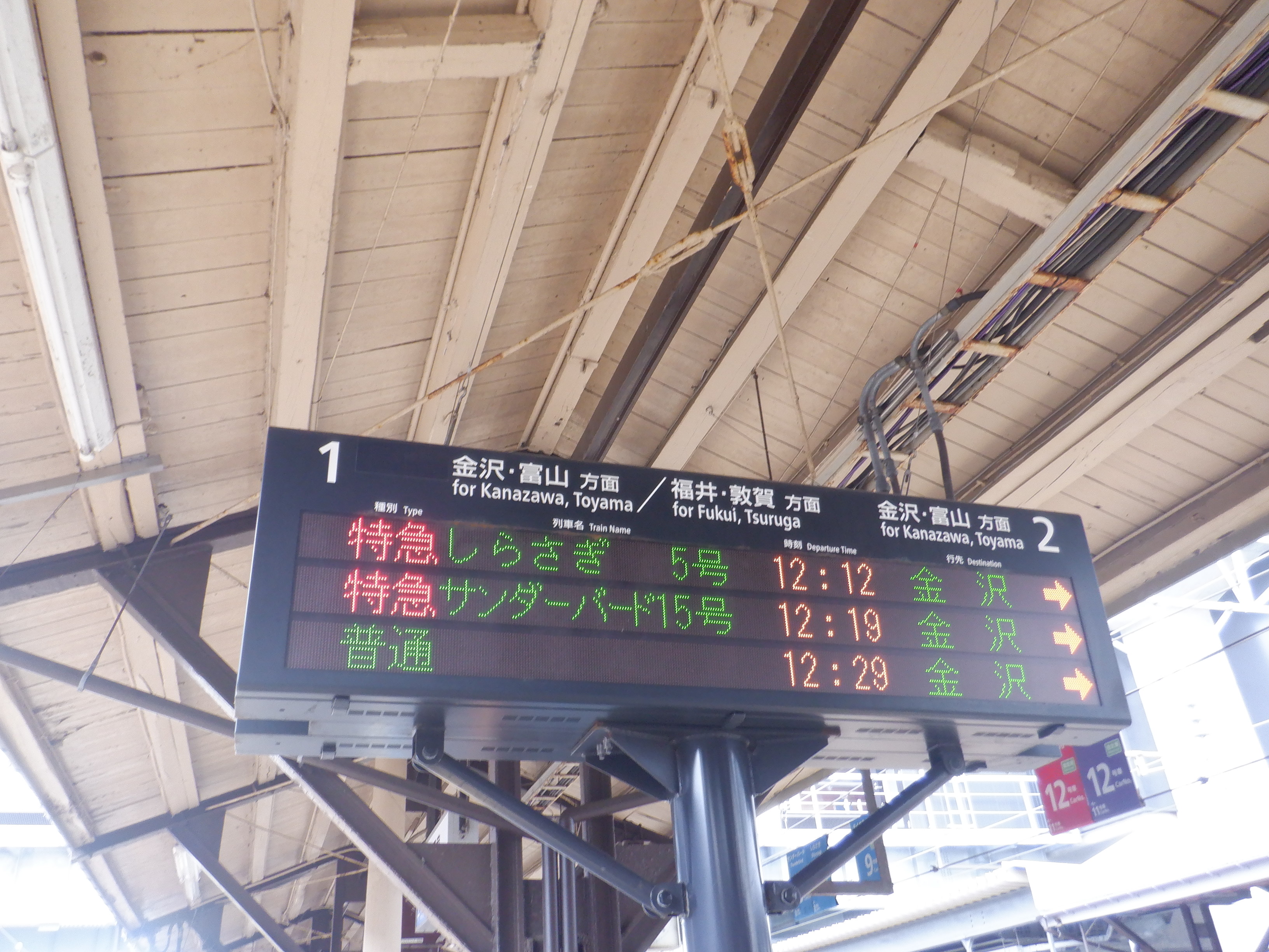 1・2番のりば発車標も「北陸線」が隠されています。(前回気づかずに片方だけ撮っていました)