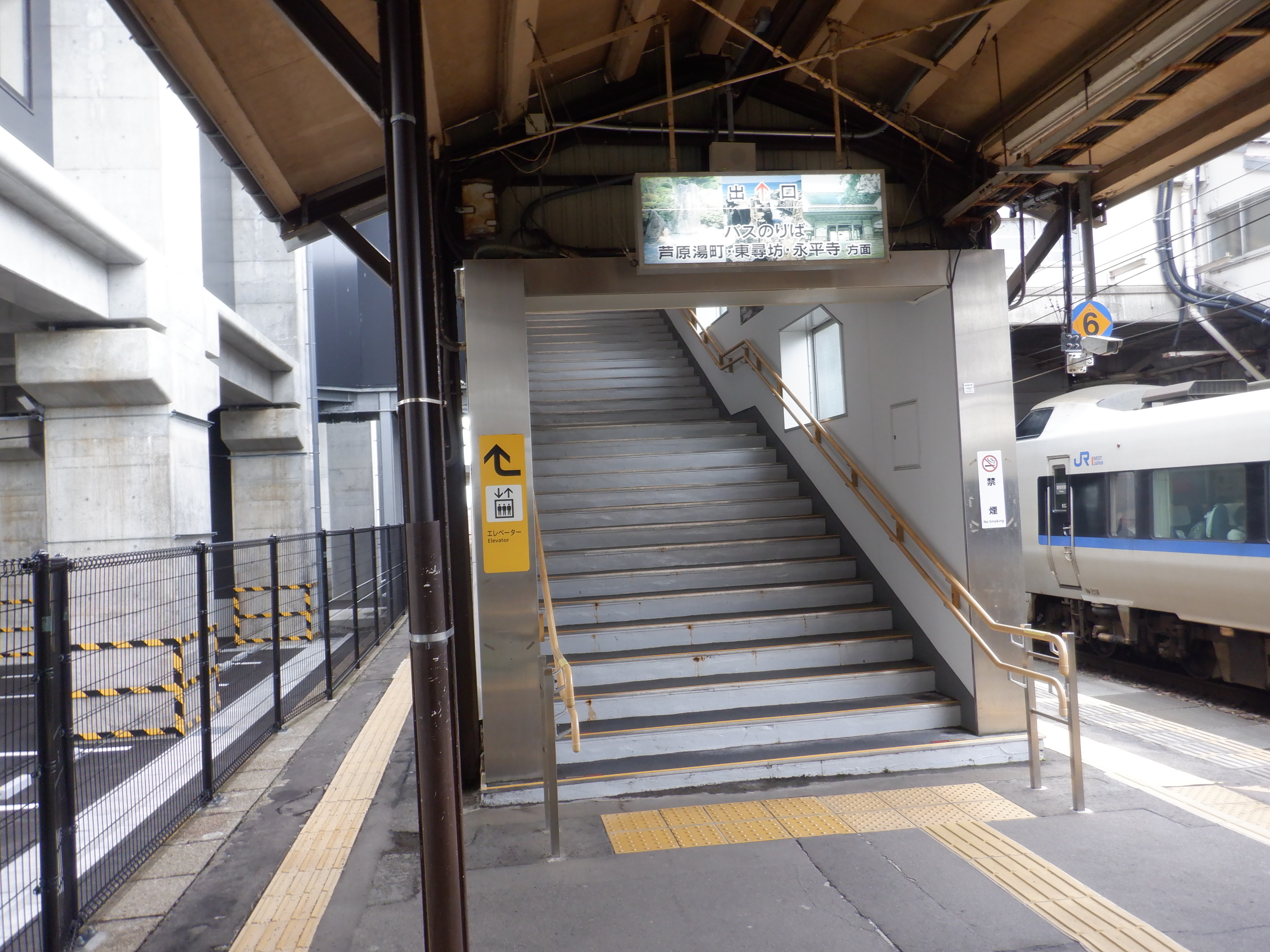 1・2番のりば/3番のりばとも階段へ下りていくところの特急列車の乗車位置案内は撤去されました。また、看板の方面の内容が変わりました。