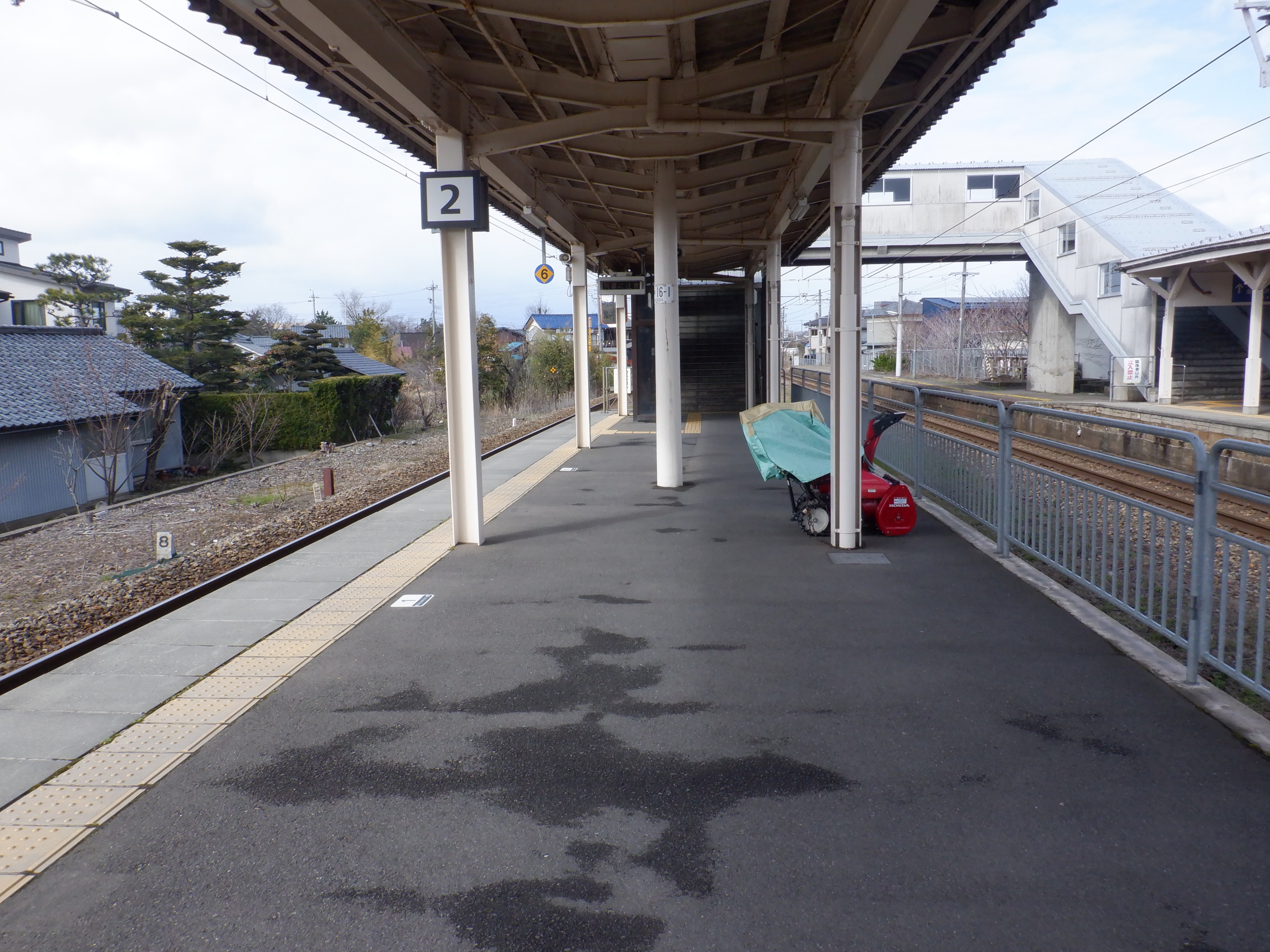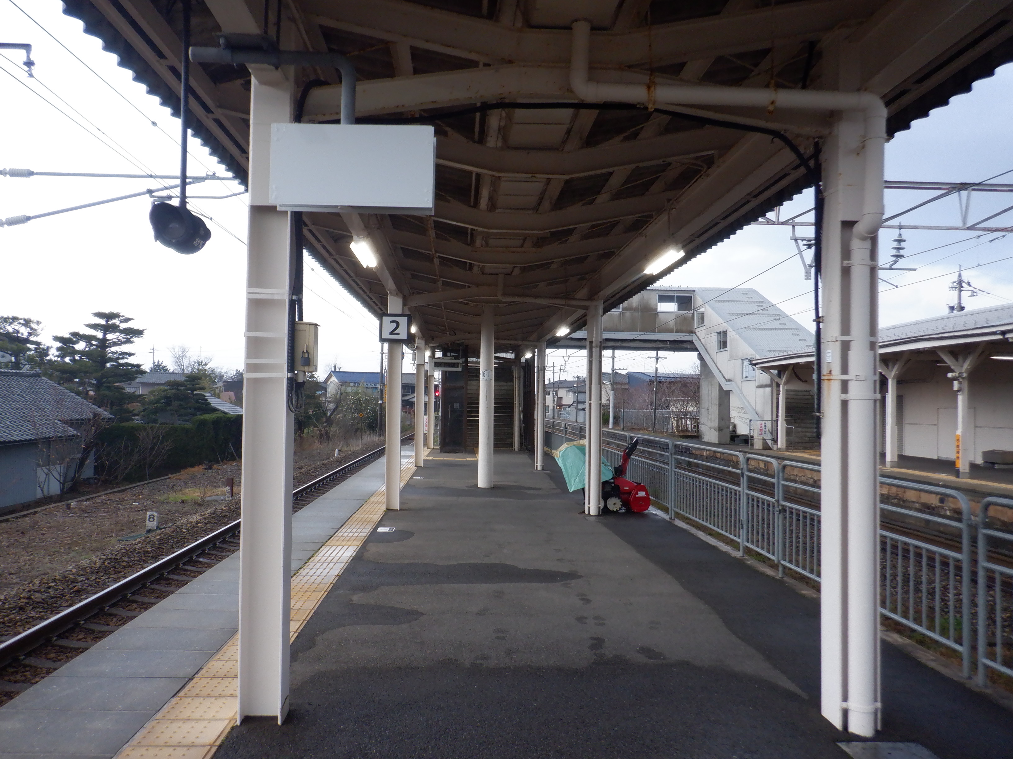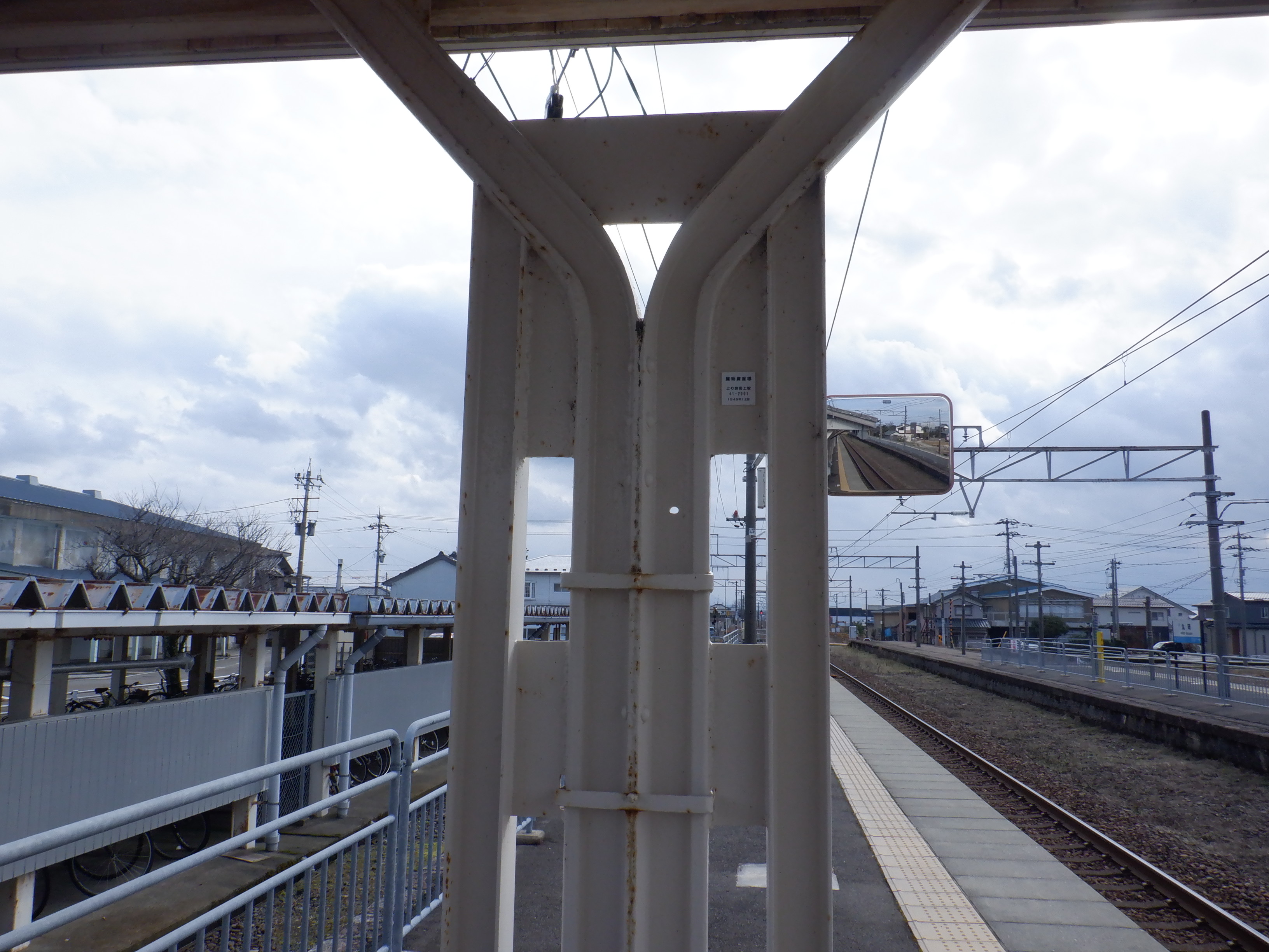 3月になりました。各駅名標ともハピラインふくいの駅名標か白い板の上にシールでJRの駅名標が貼られています。第一種駅名標のJRロゴはこの時点でも残っていました。