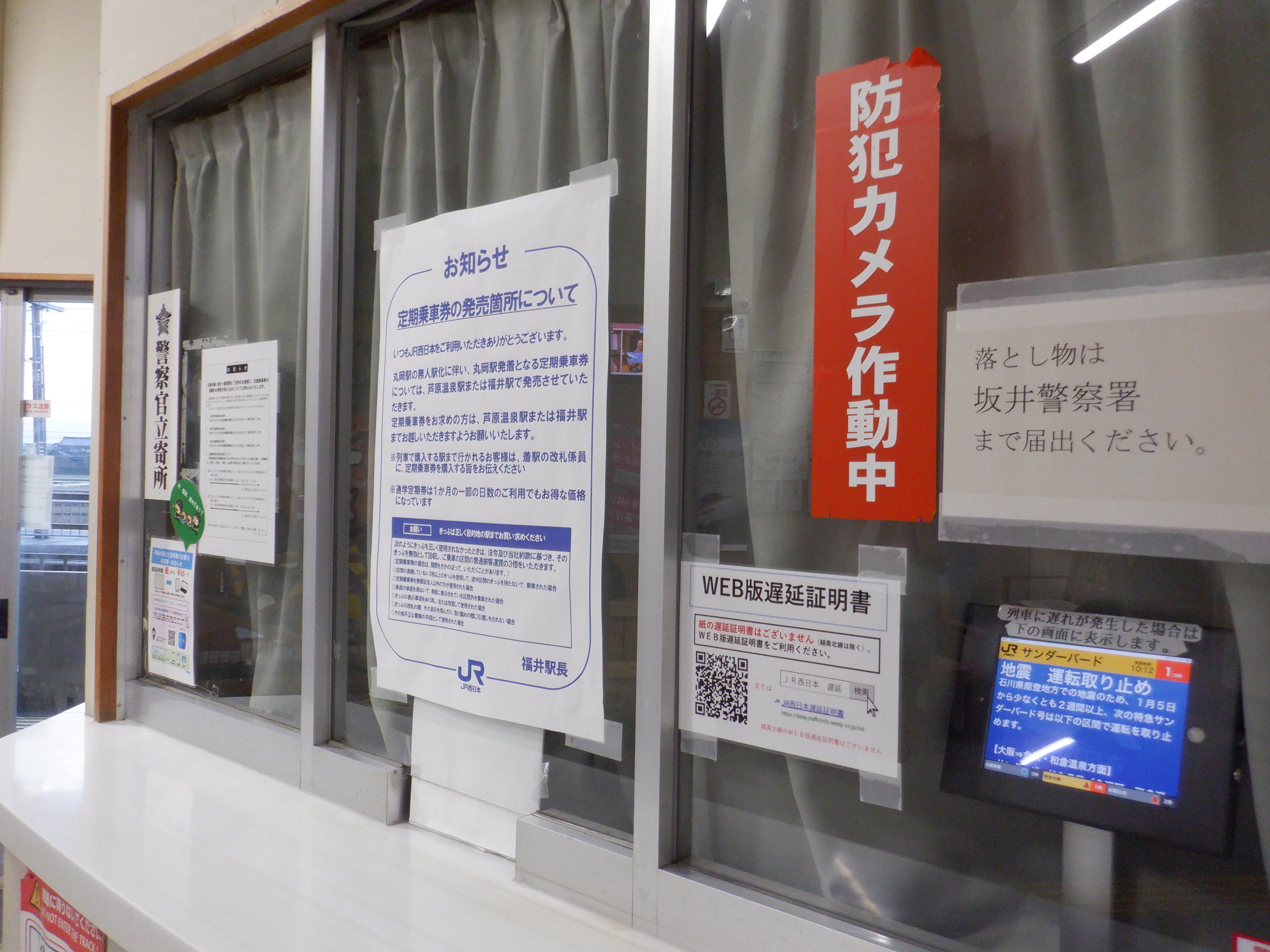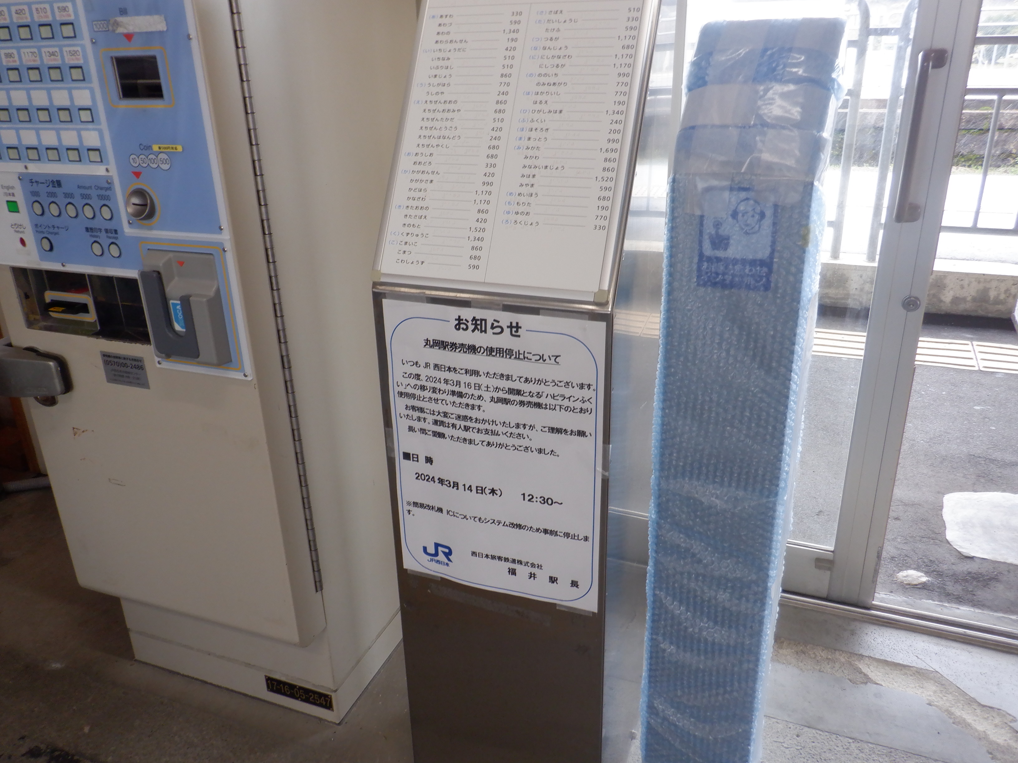 丸岡駅の2024年になってから移管までの5回分です。第一種駅名標のJRロゴが直前まで残っていたため、それの撤去時期を見るために他駅より多く訪れることになってしまいました。
