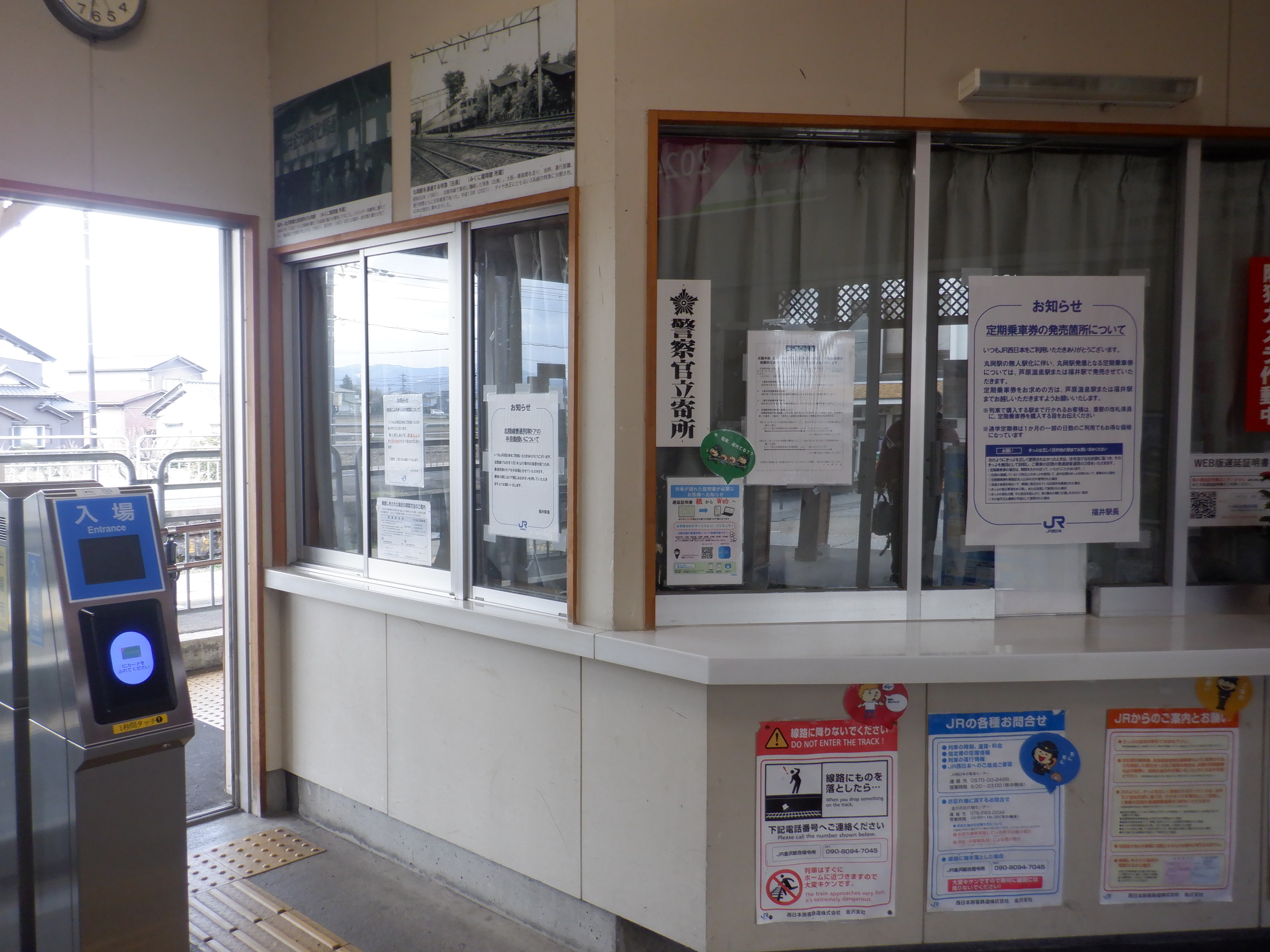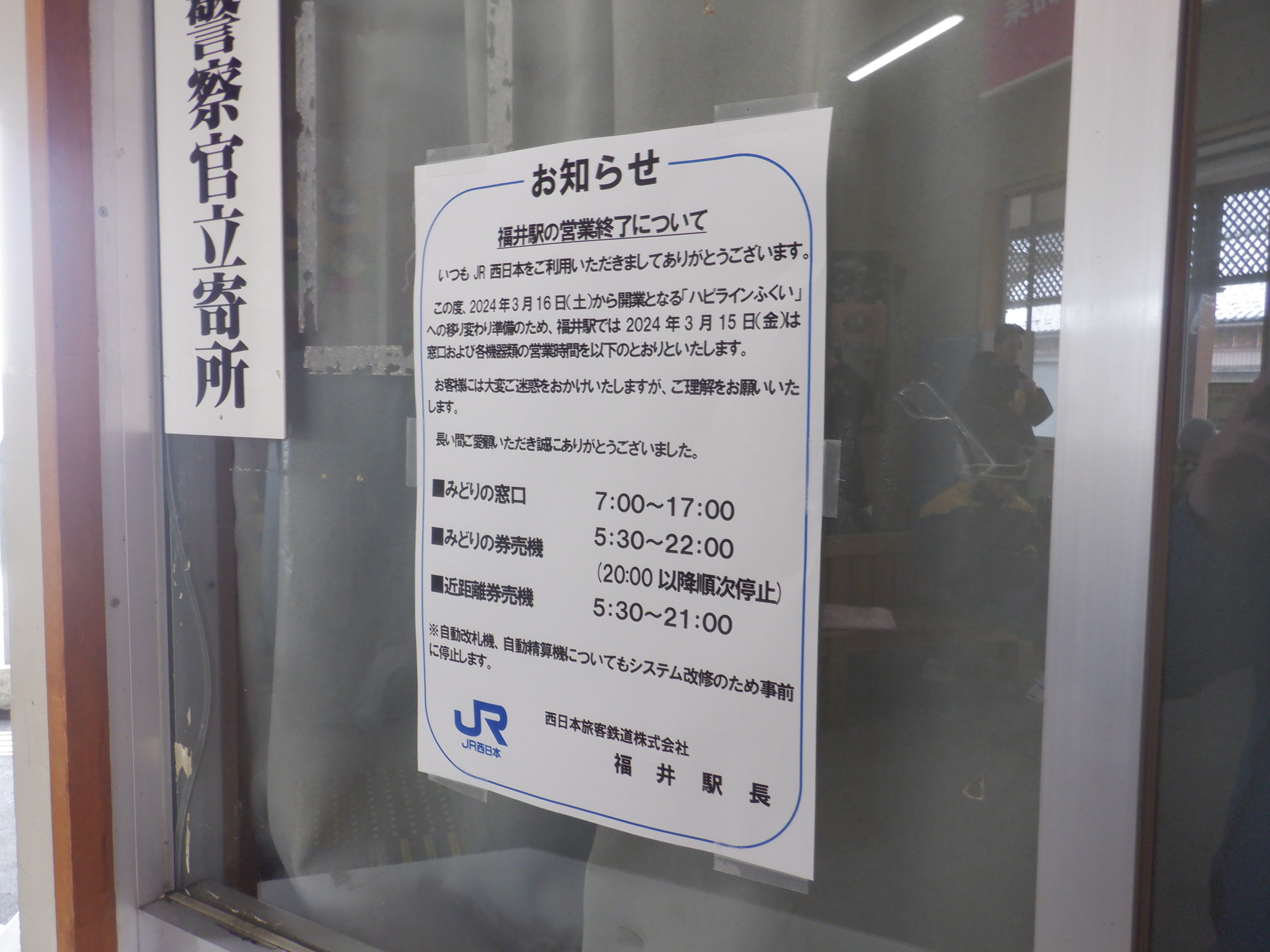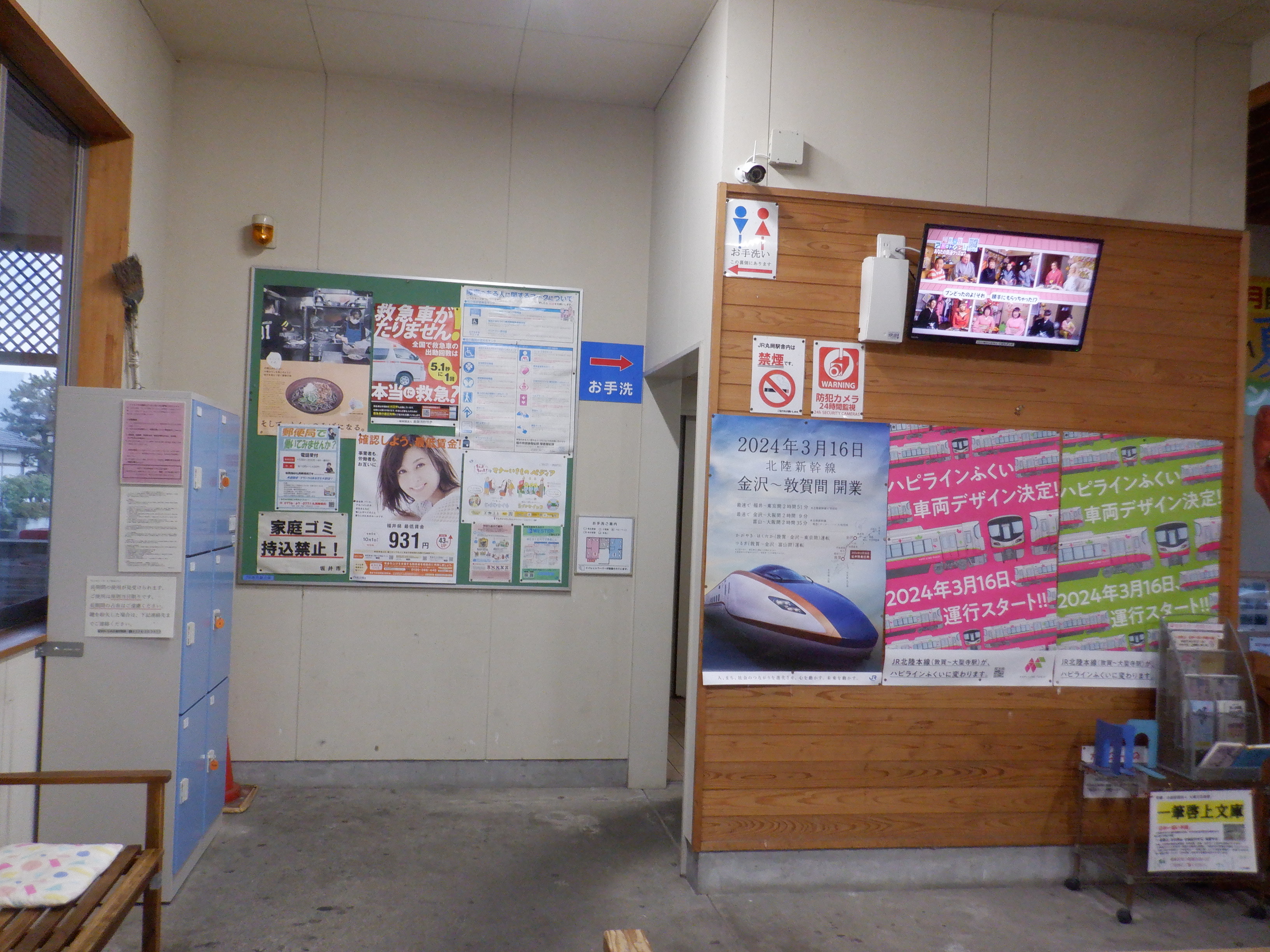 駅名標については1番のりばにある駅舎に付いているものがこの時点でハピラインふくいの駅名標にシールでJRのものが貼られているように見えます。駅舎の第一種駅名標はやはりJRロゴが残っていました。