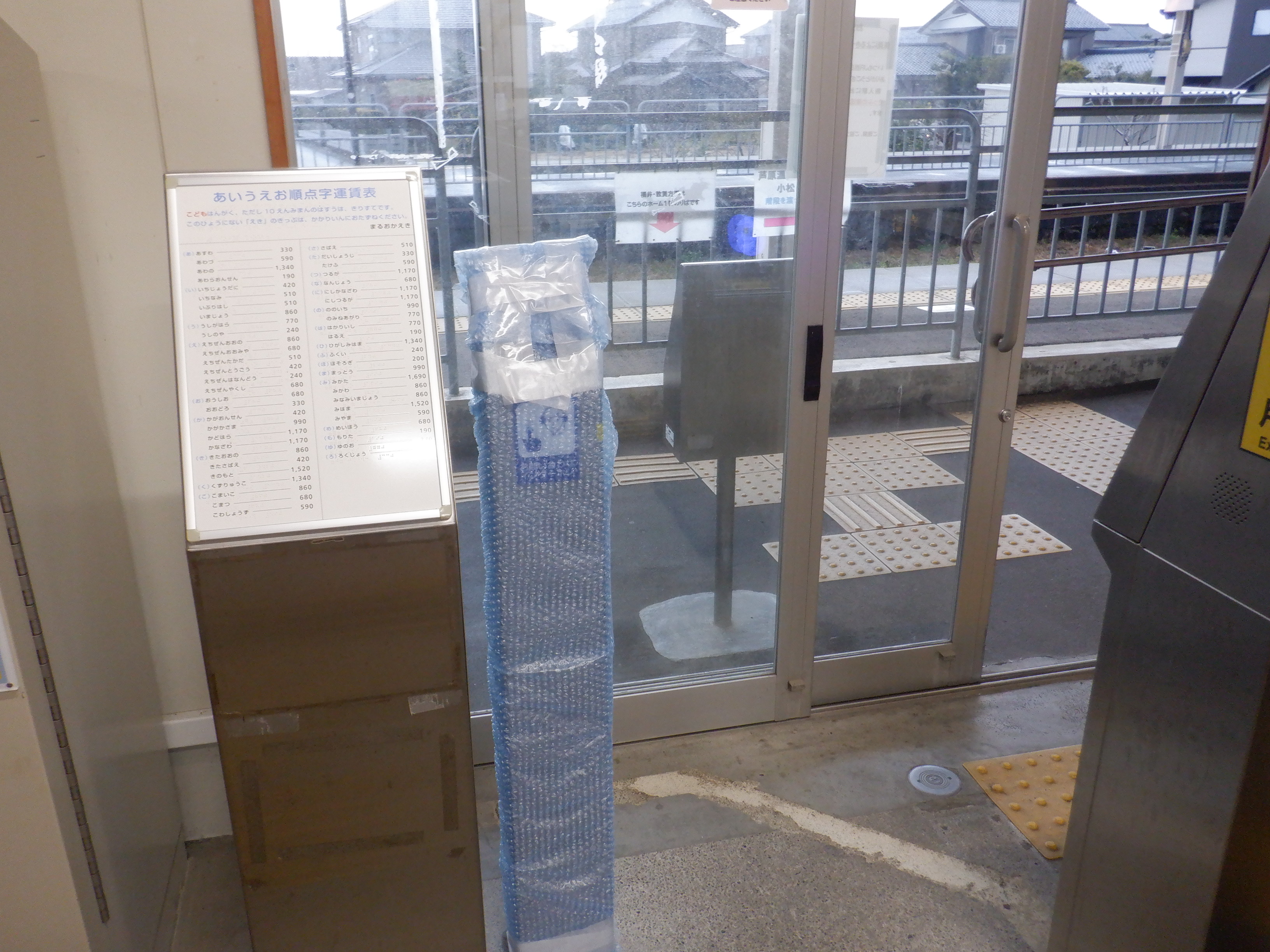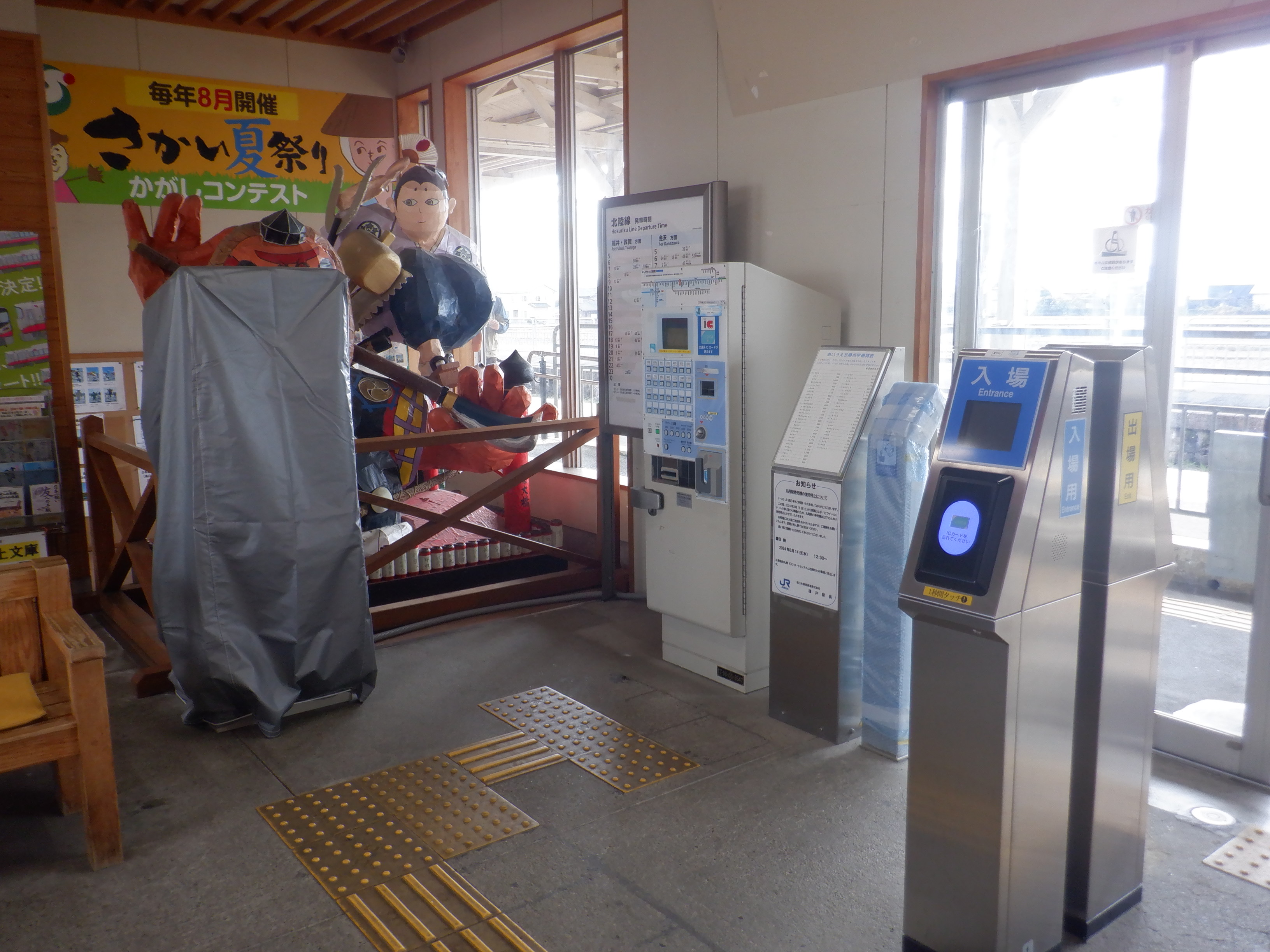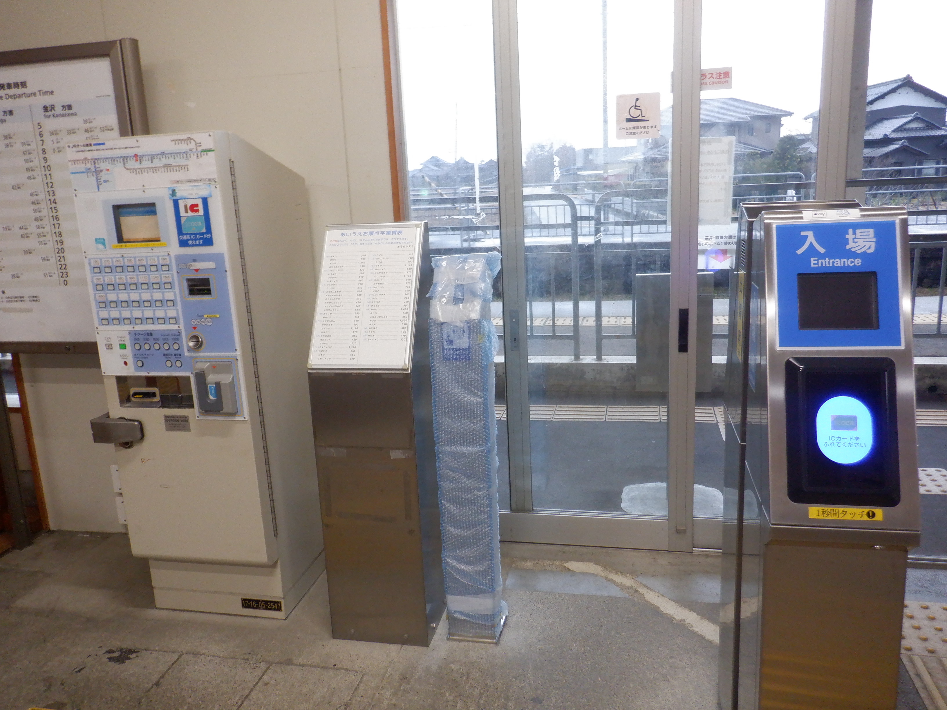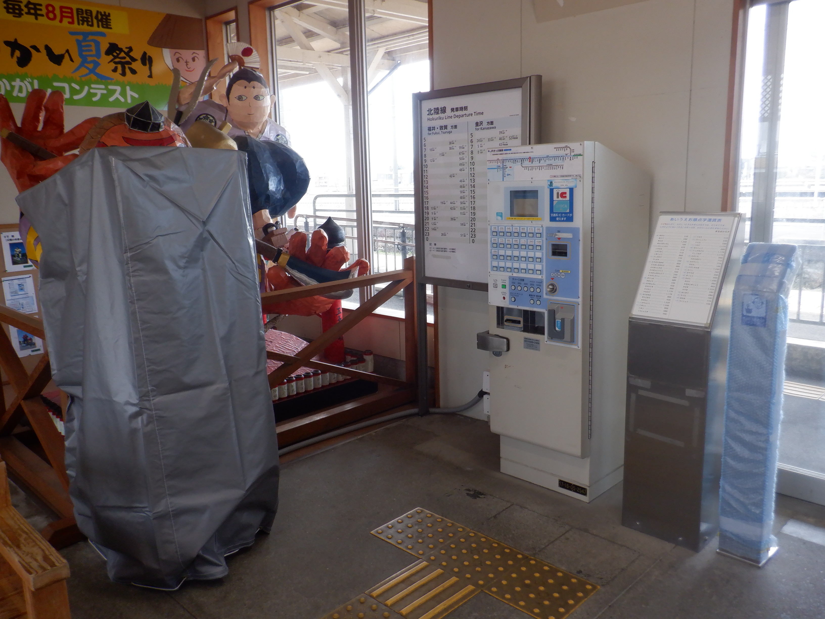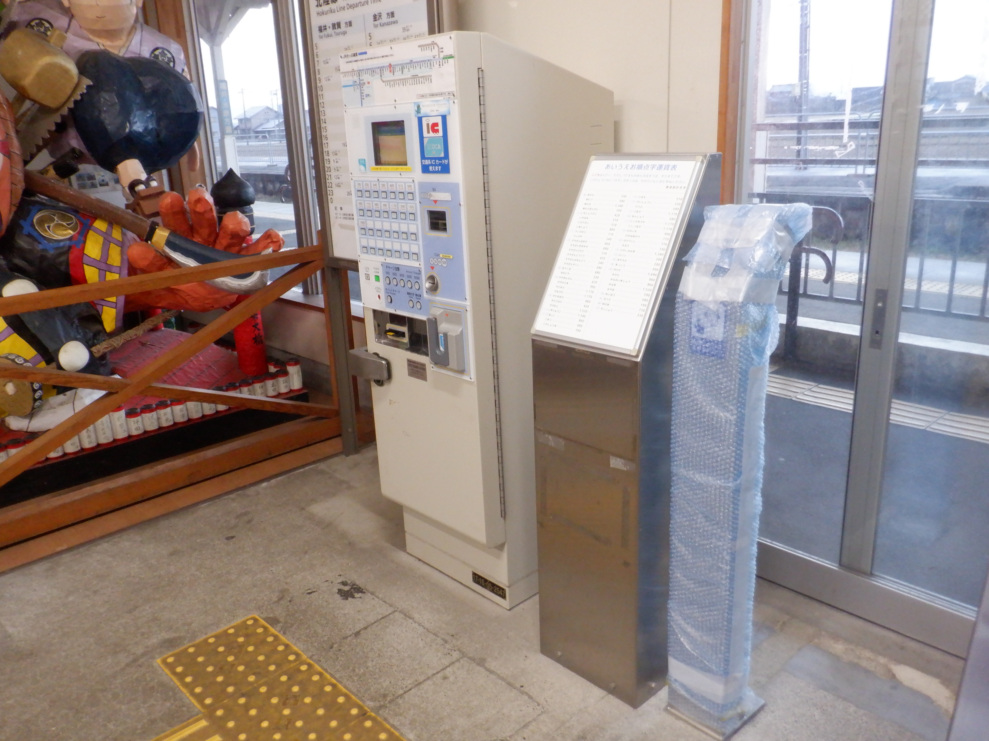 移管後に供用される券売機がカバーを被った状態で設置されていました。