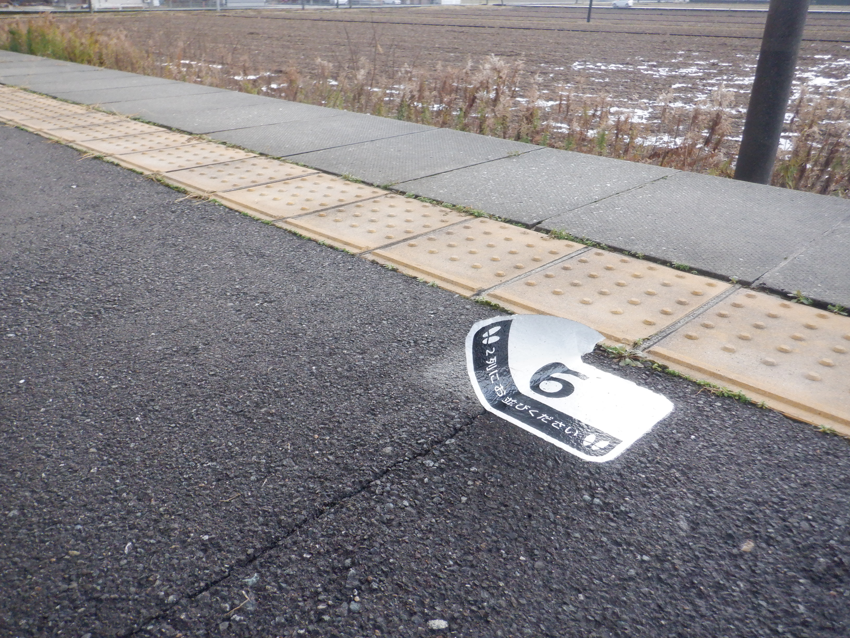 先日取れかけていた乗車位置案内6(6両編成用なので不使用)ですが、取れかけていた部分だけ取れていました。