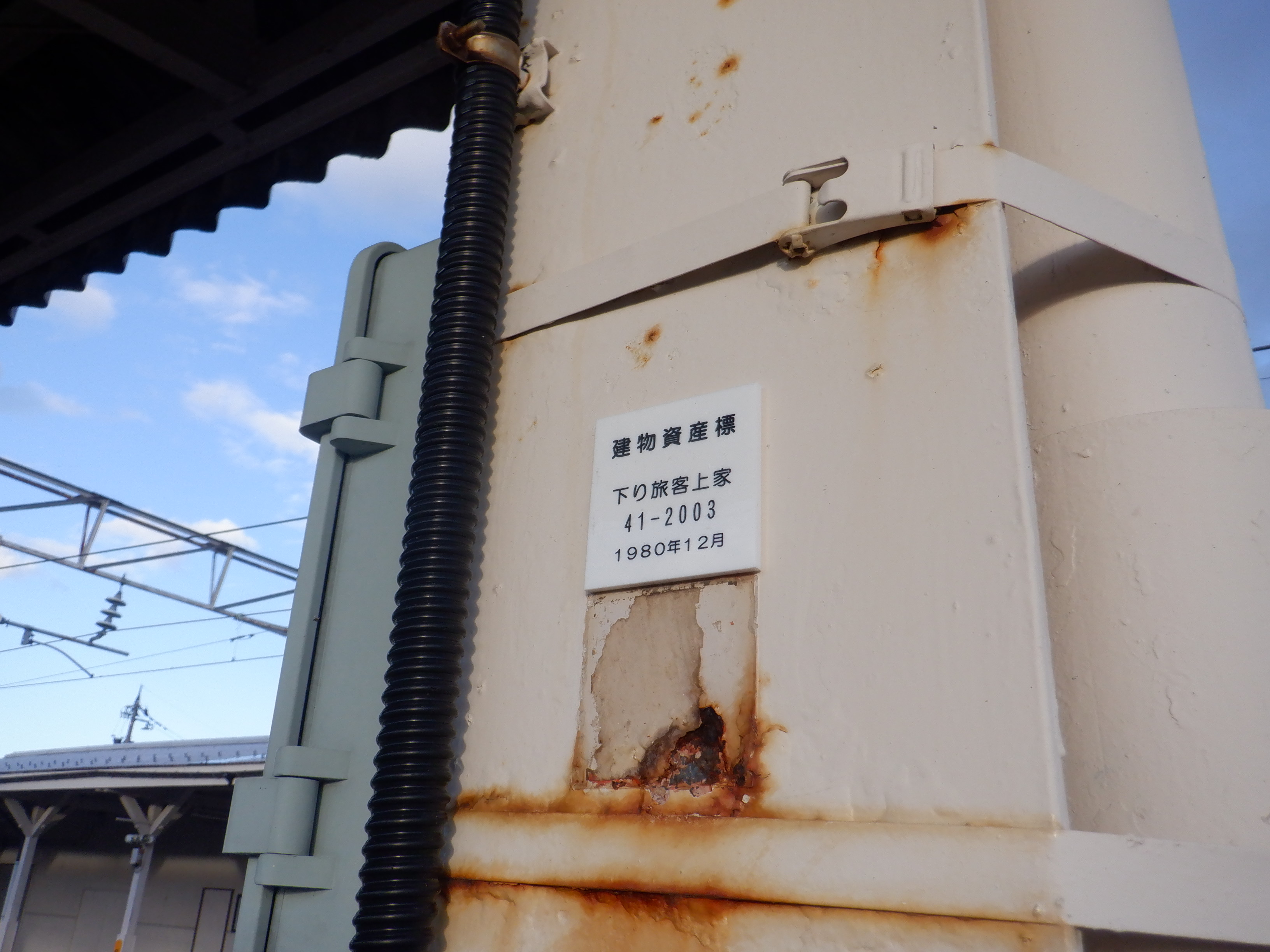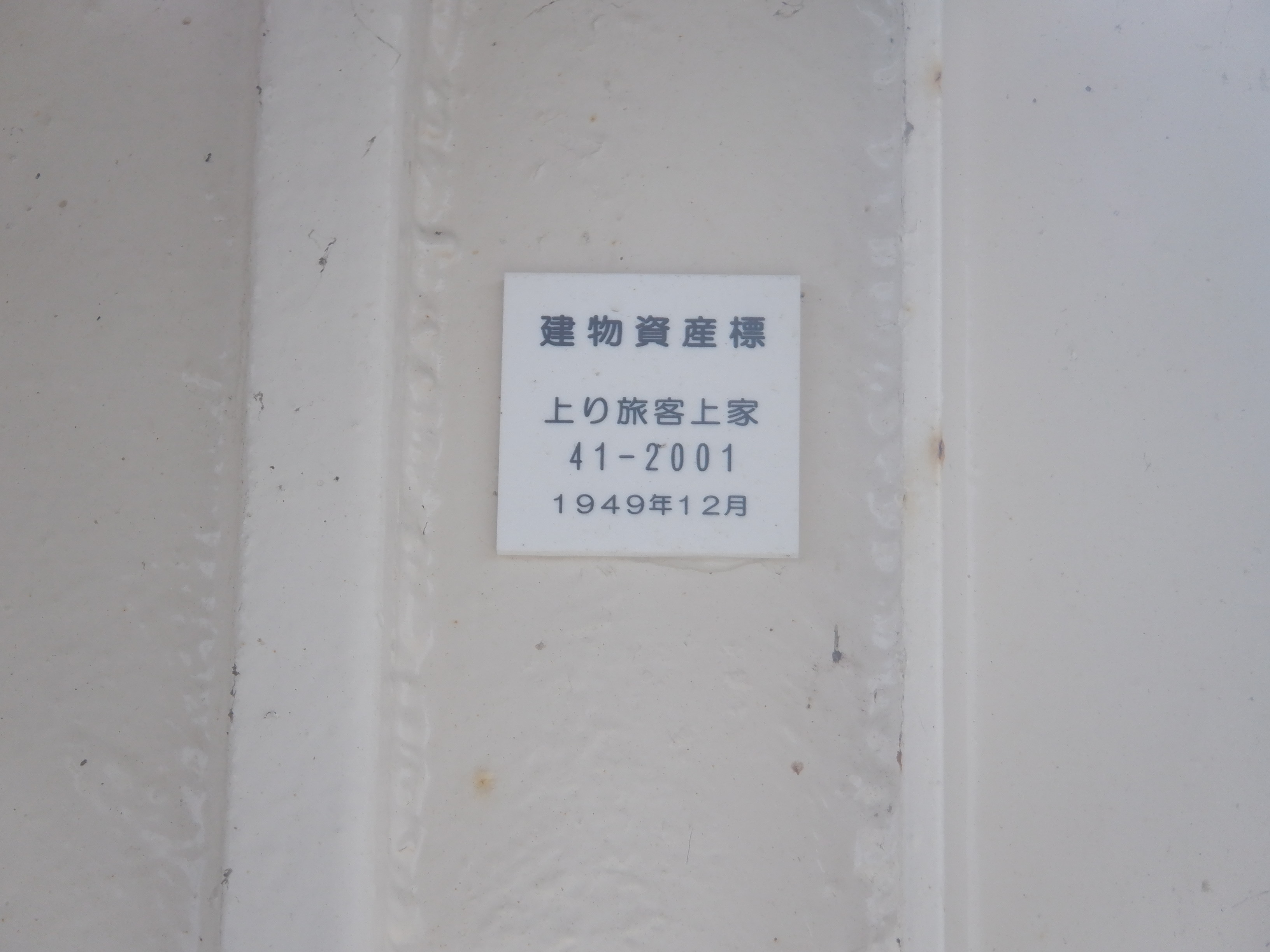1番のりば春江駅側の上屋の資産標。1940年代のものでした。