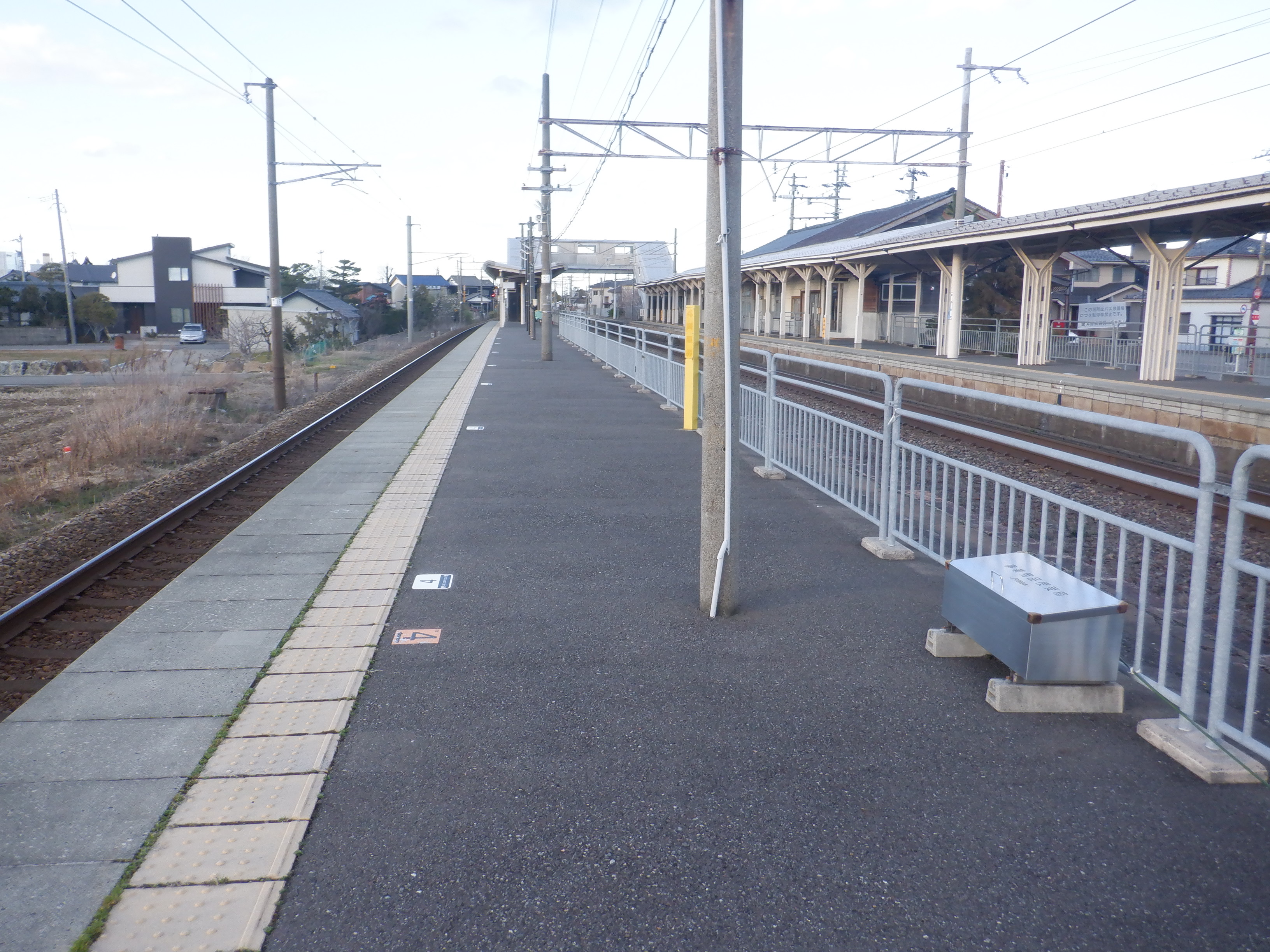 1番のりば春江駅側も下にハピラインふくいの駅名標らしきものが見えます。