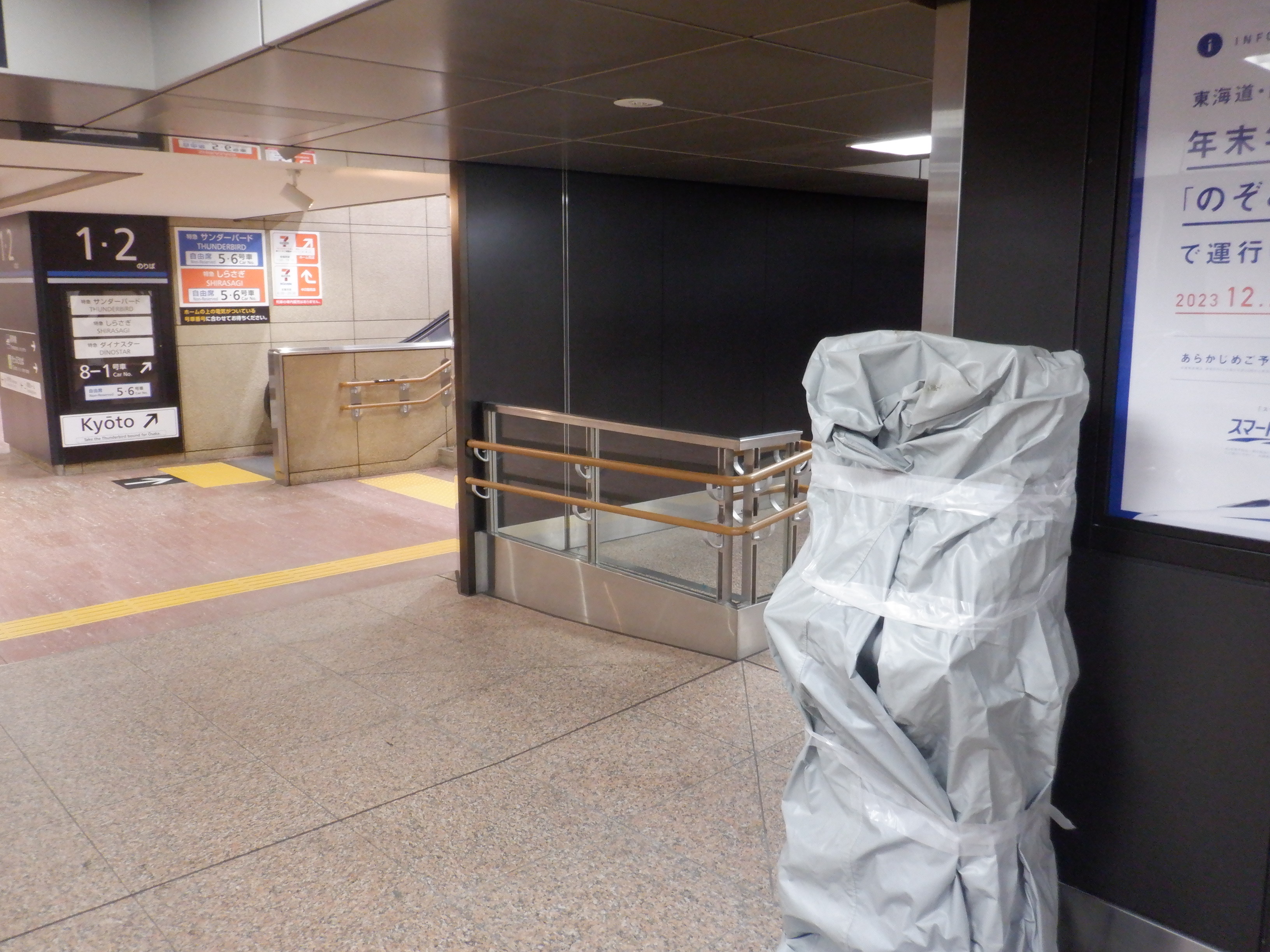 あんと改札口閉鎖の案内と券売機があったところ。