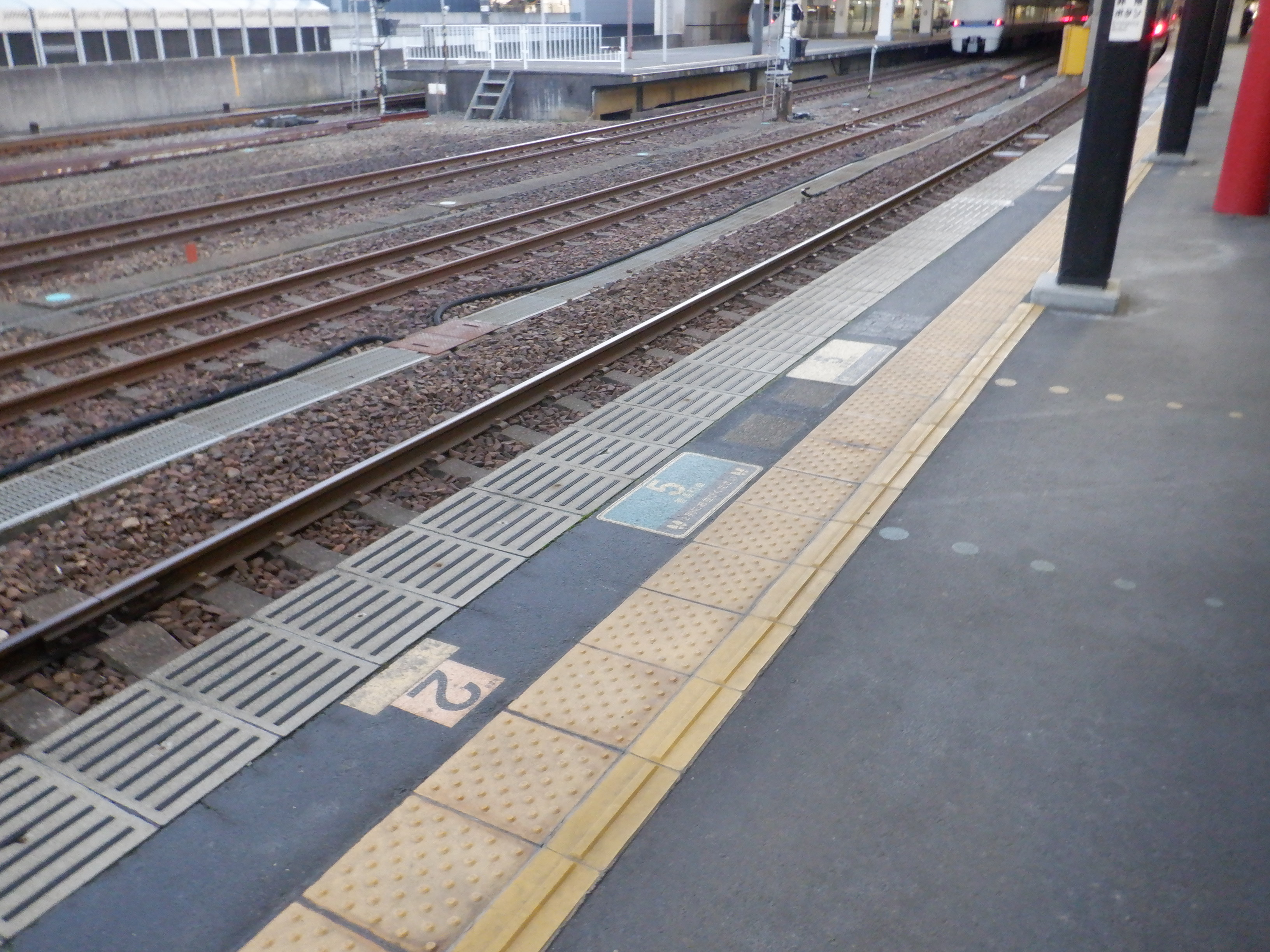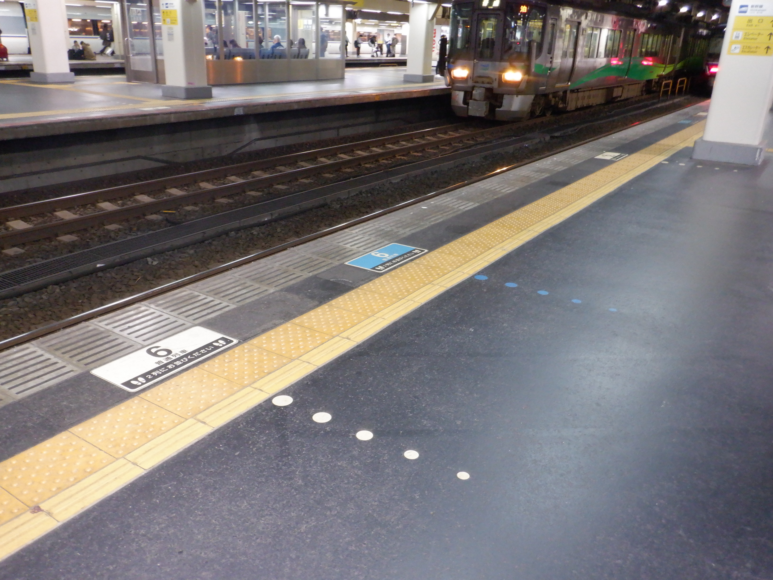6番のりば中程の普通列車乗車位置案内。
