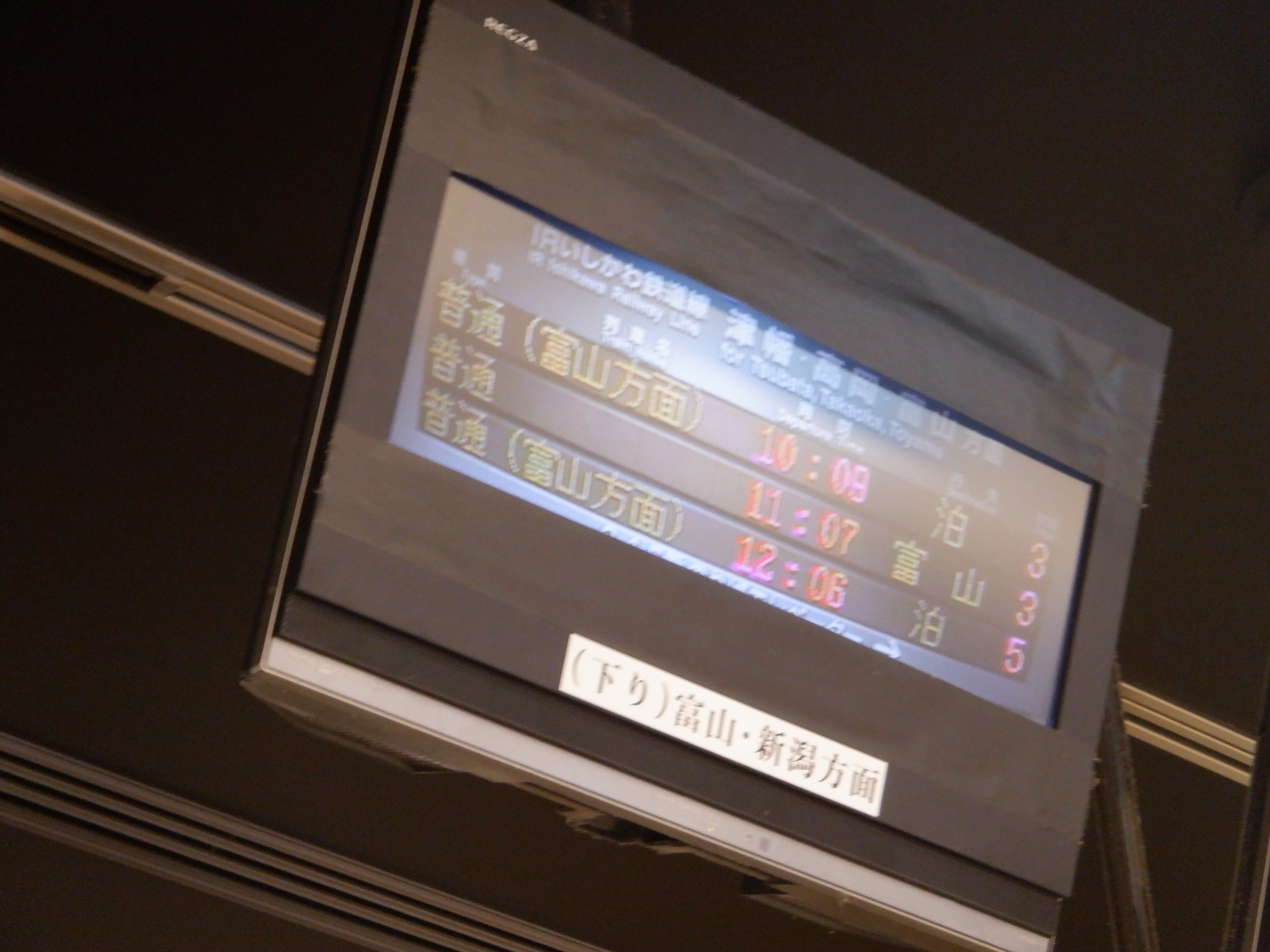 あんと改札口入口の発車標。改札口の発車標をテレビカメラで中継したものが映されていました。