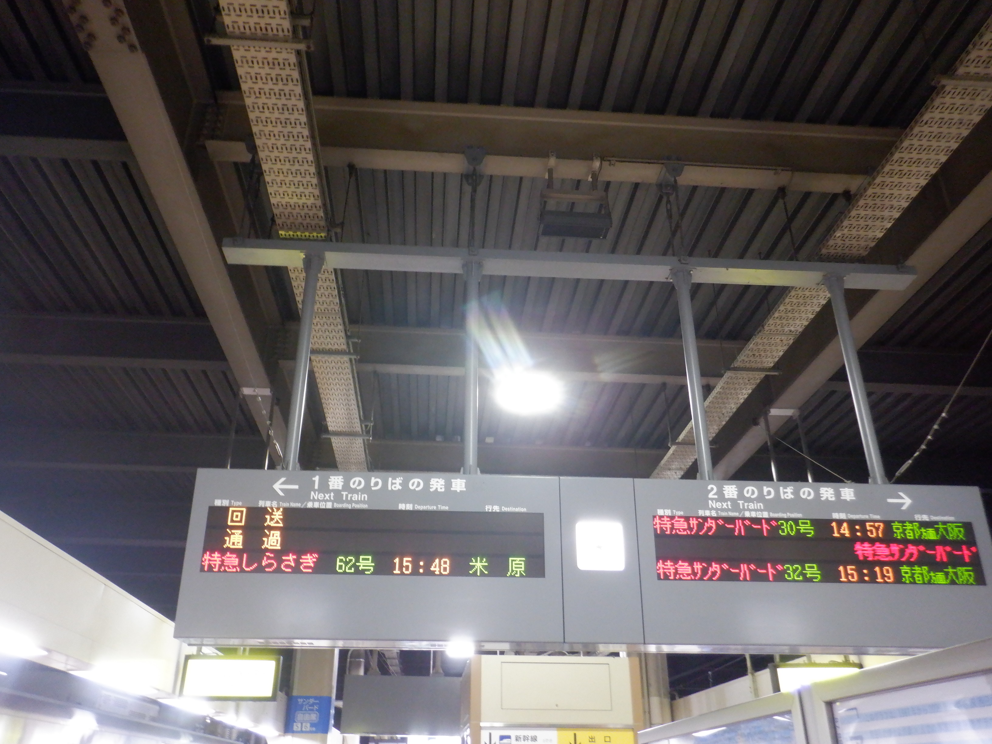 6・7番のりば入口のサンダーバードの案内。