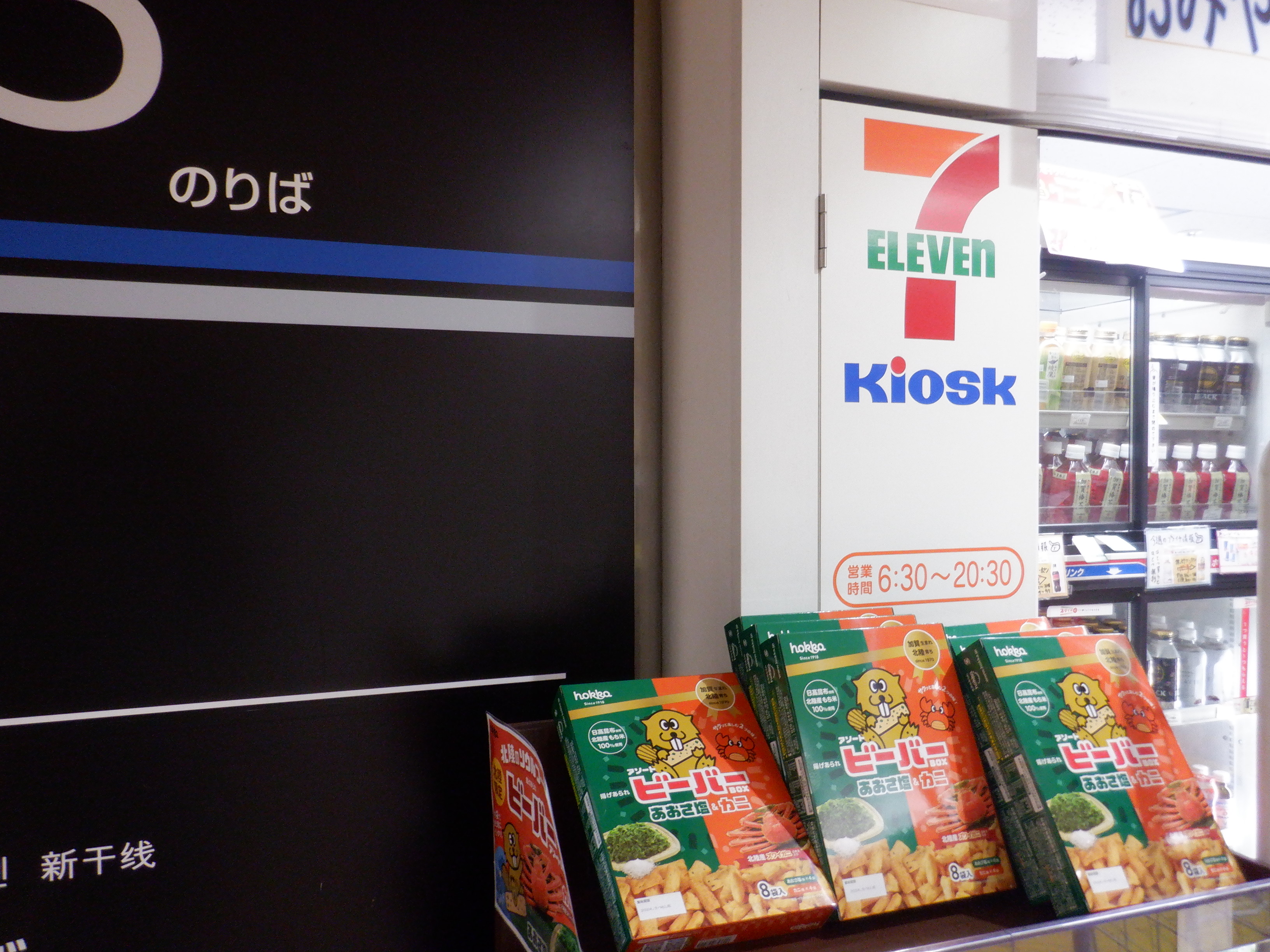 中二階のセブンイレブンの前の特急列車に車内販売がない旨の案内は撤去されていました。
