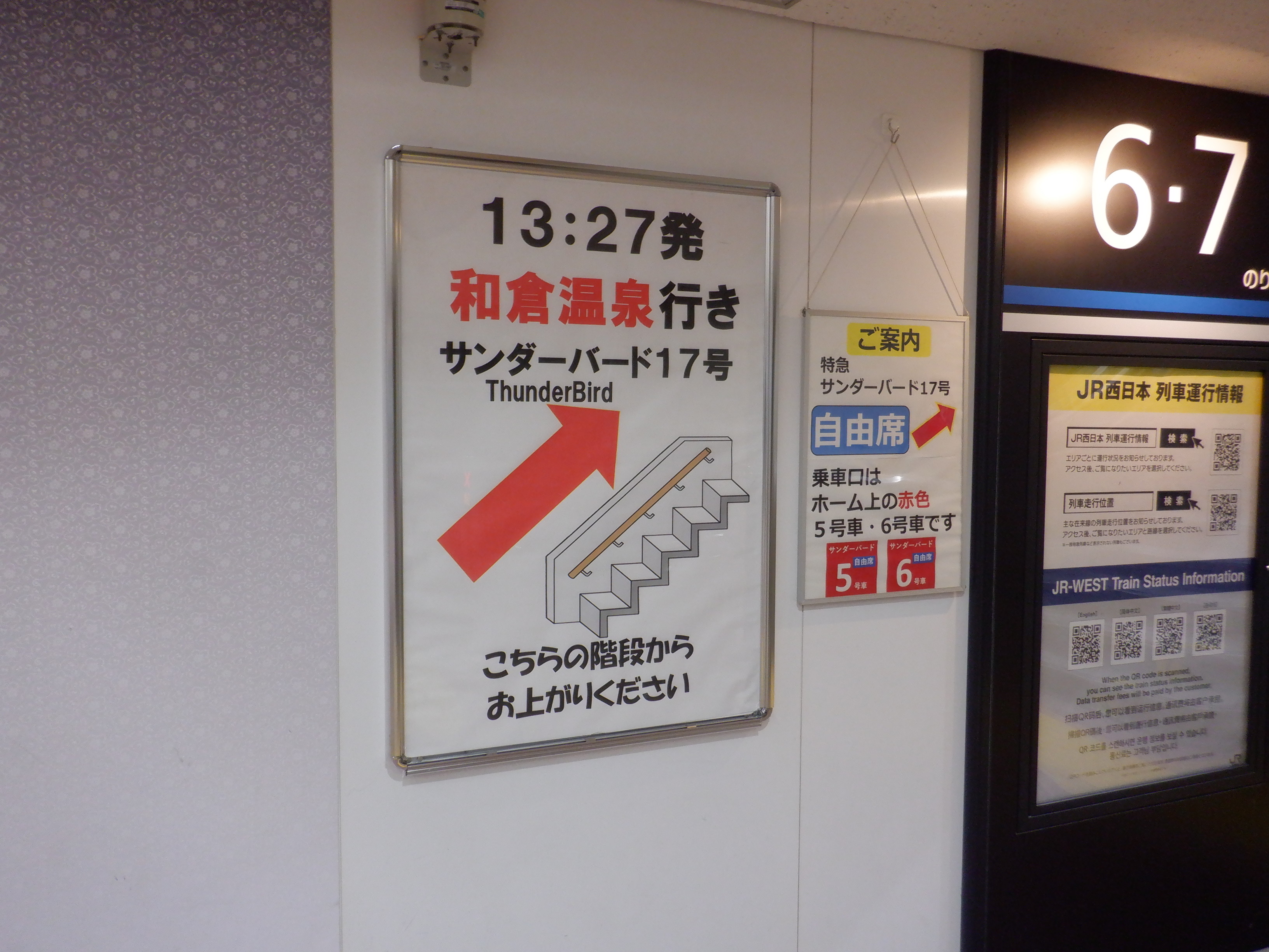7番のりば入口のサンダーバード17号和倉温泉行きは裏返しになっていました。小さい方の自由席の案内は外されていました。