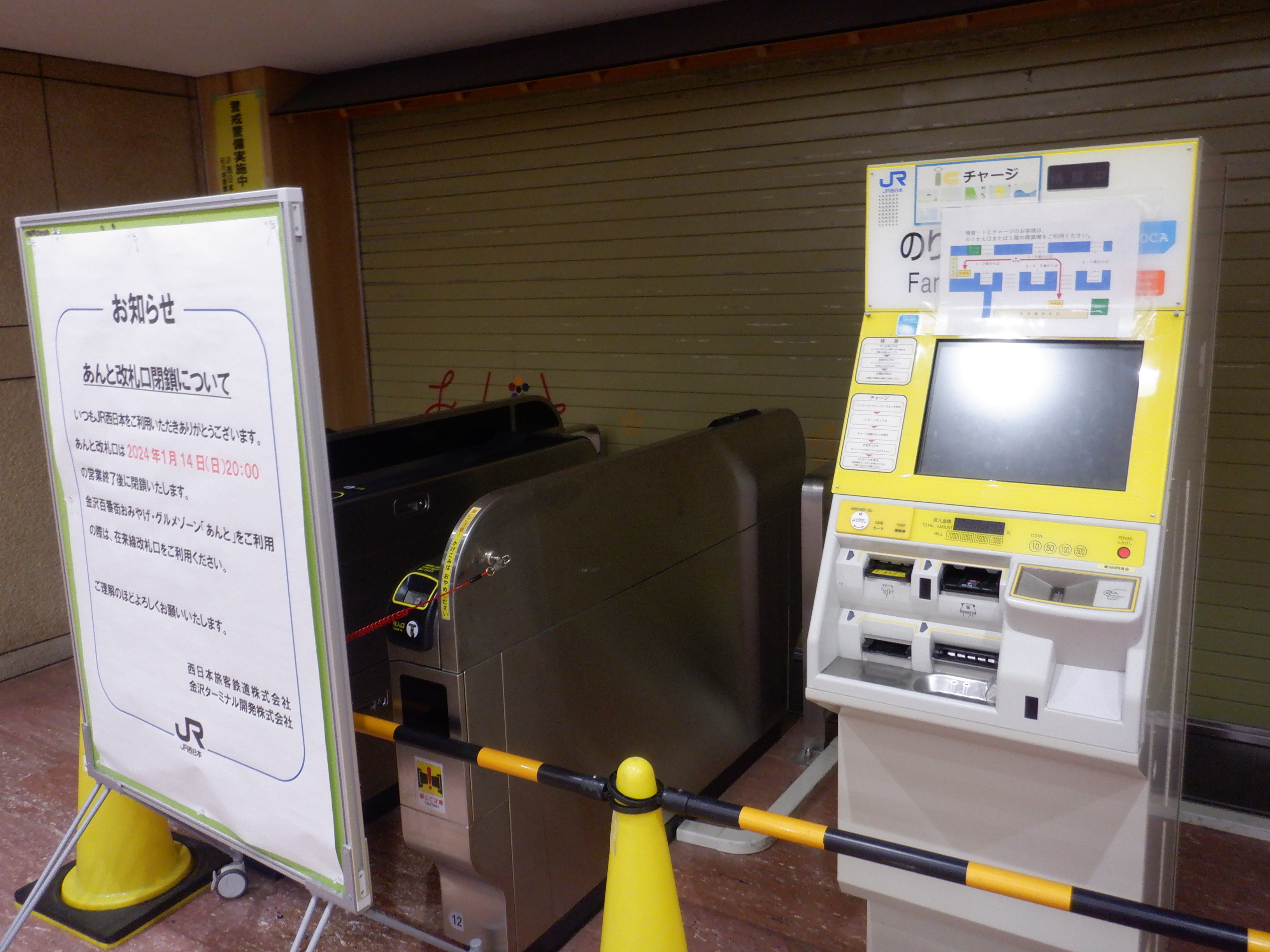 1月14日であんと改札が閉鎖されました。この日は既にあんと側から見ると閉鎖後の工事が終わっていました。改札内は自動改札機・精算機は残っていました。