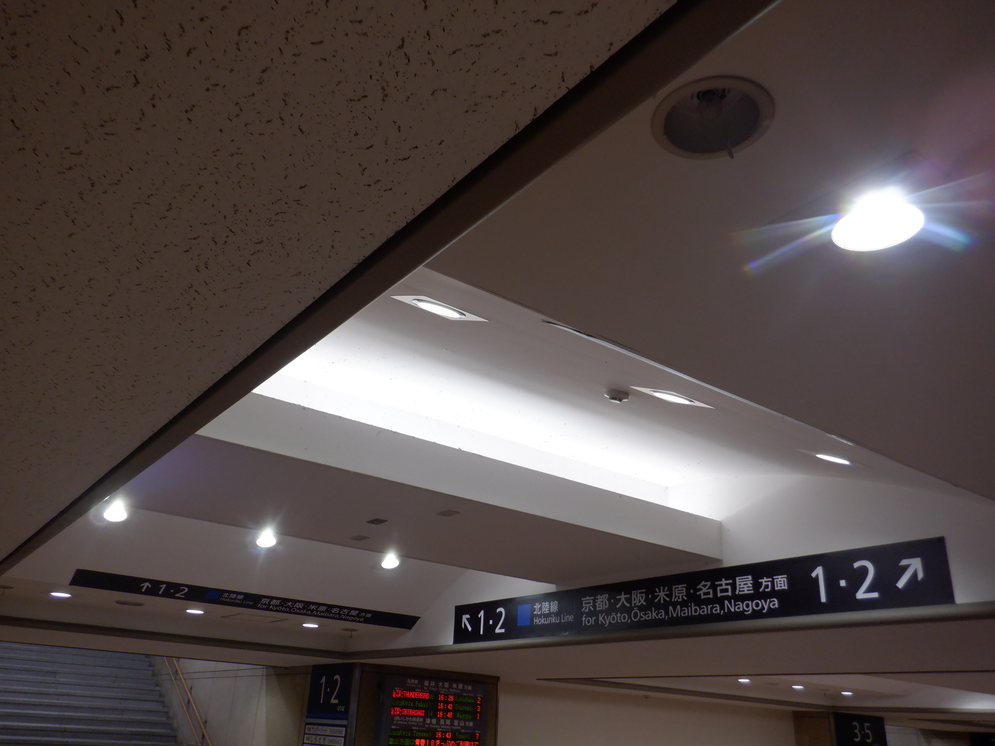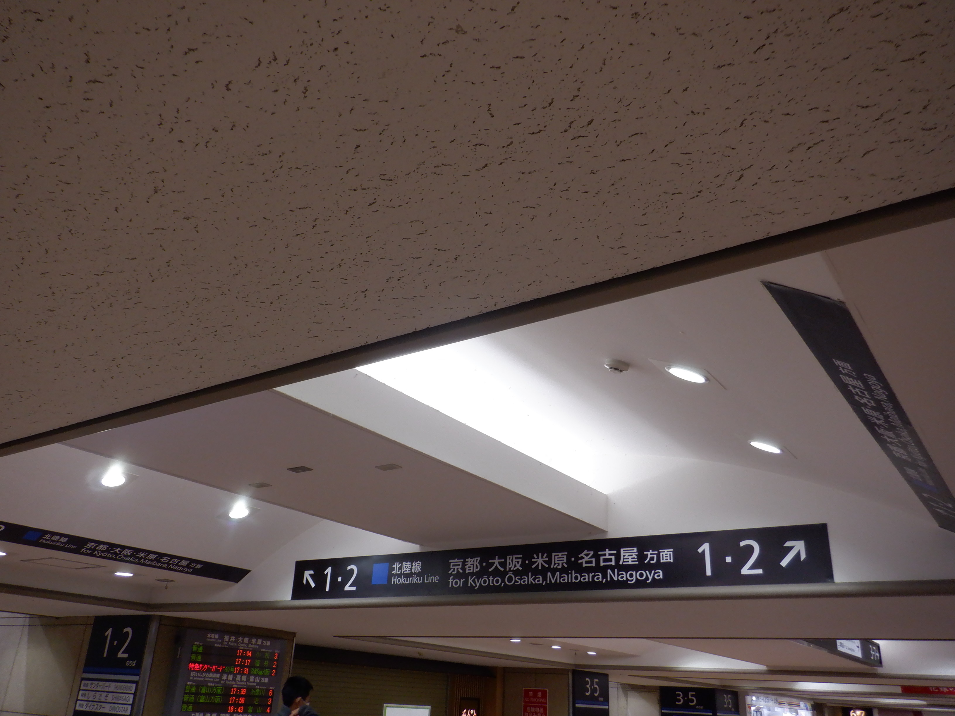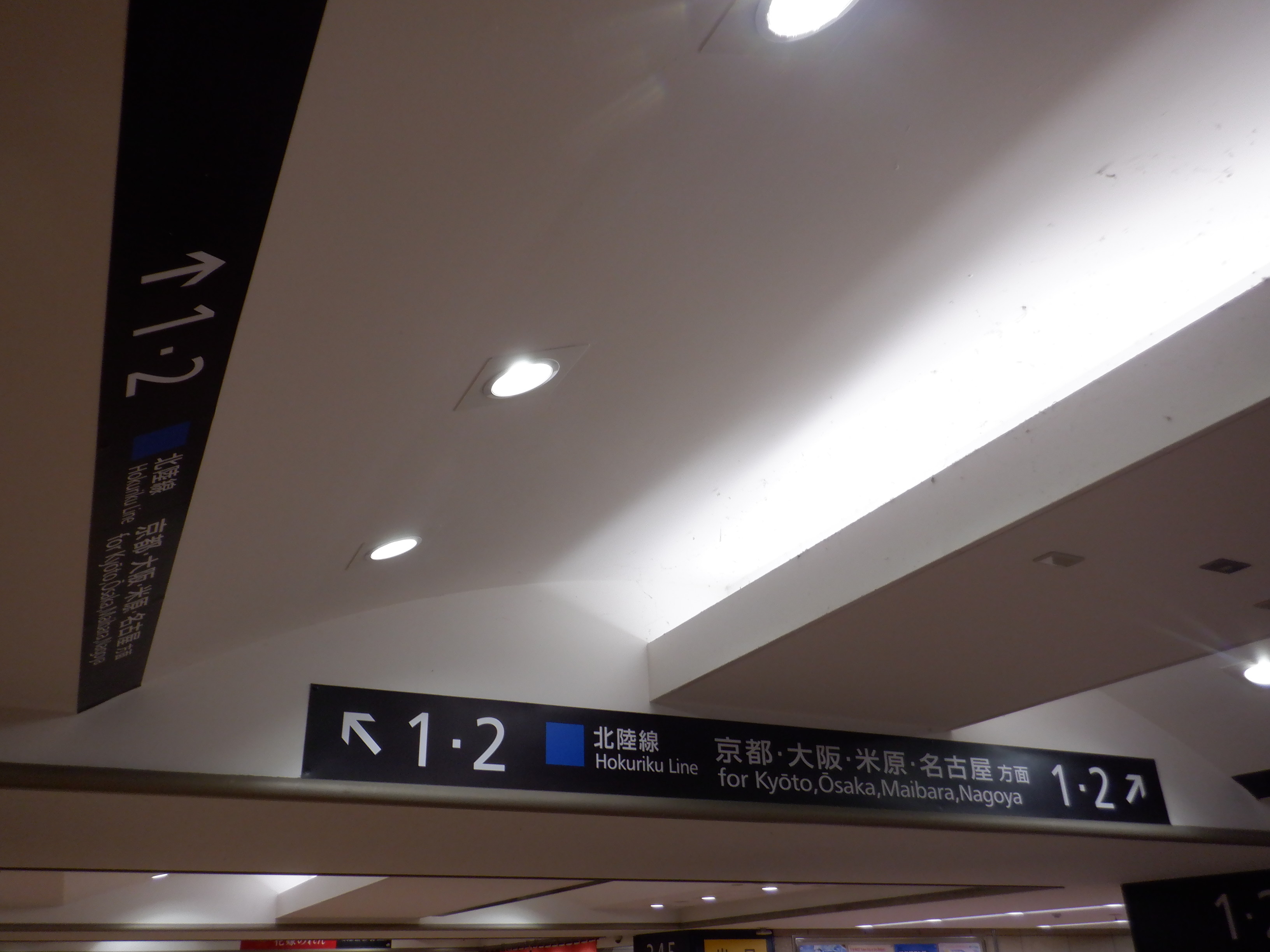 1・2番のりばへ上がって行くところの天井の案内。